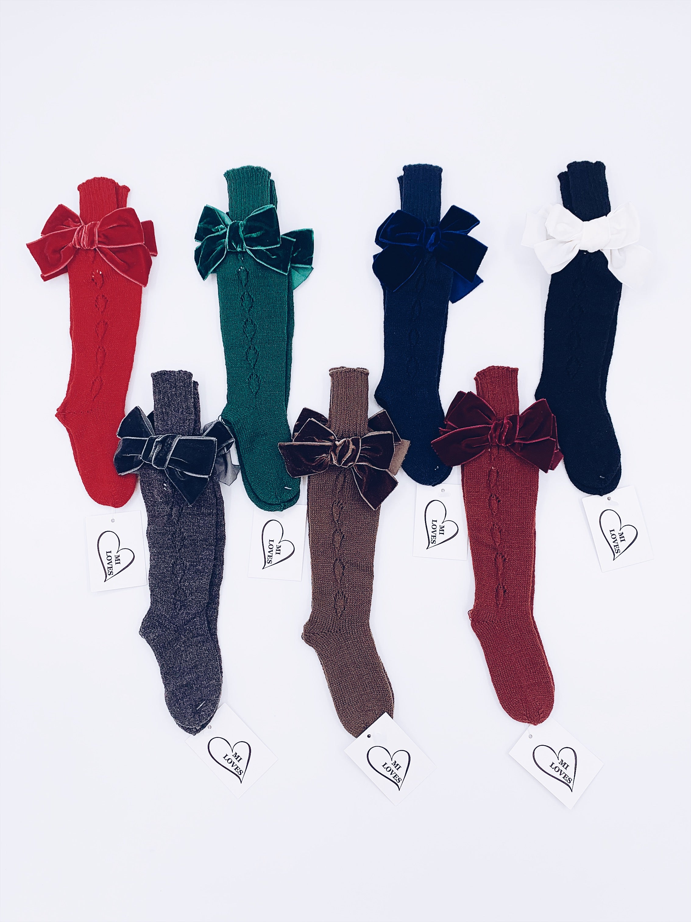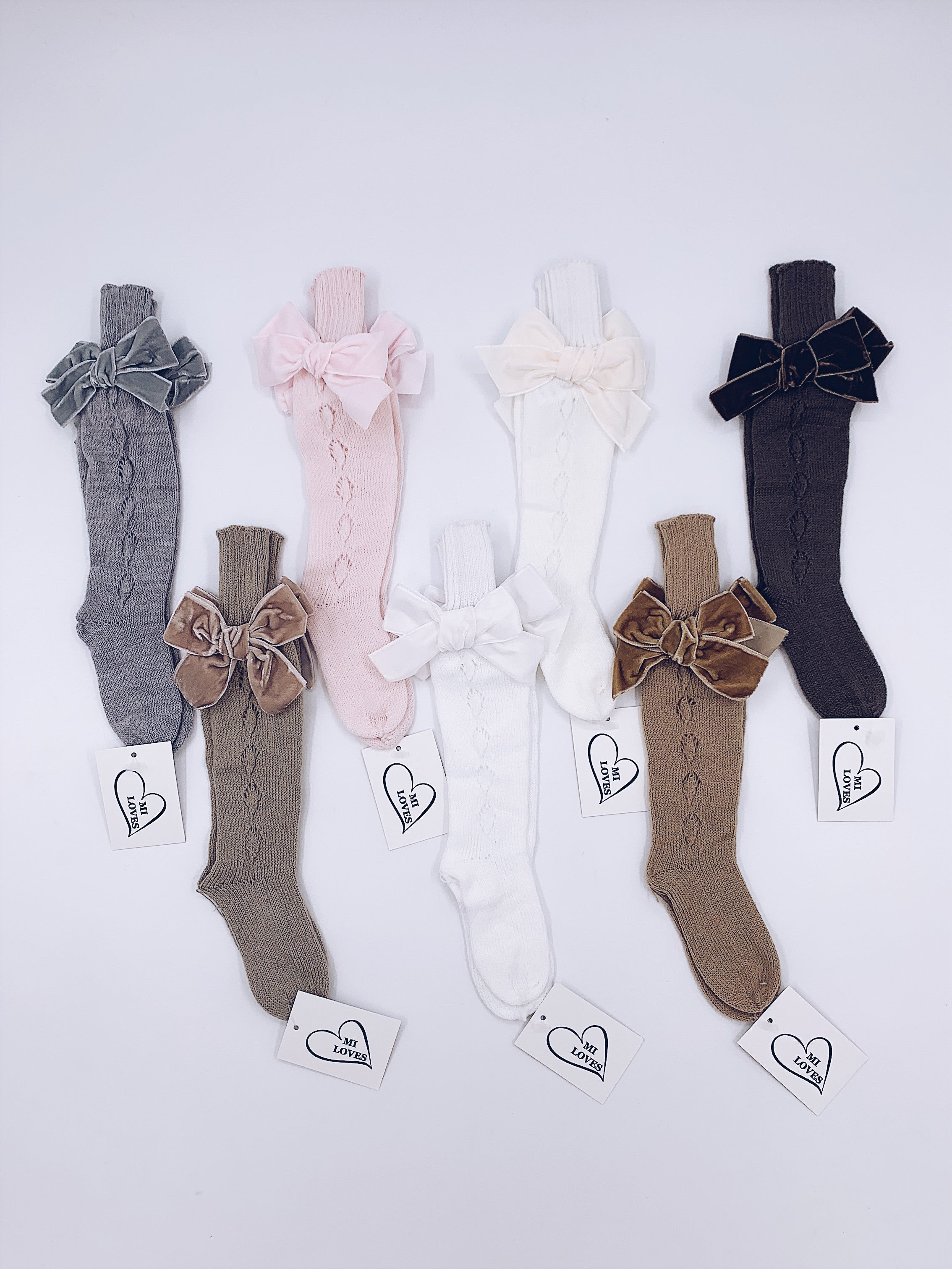 MI LOVES SIGNATURE KNITTED HIGH KNEE SOCKS WITH VELVET BOWS