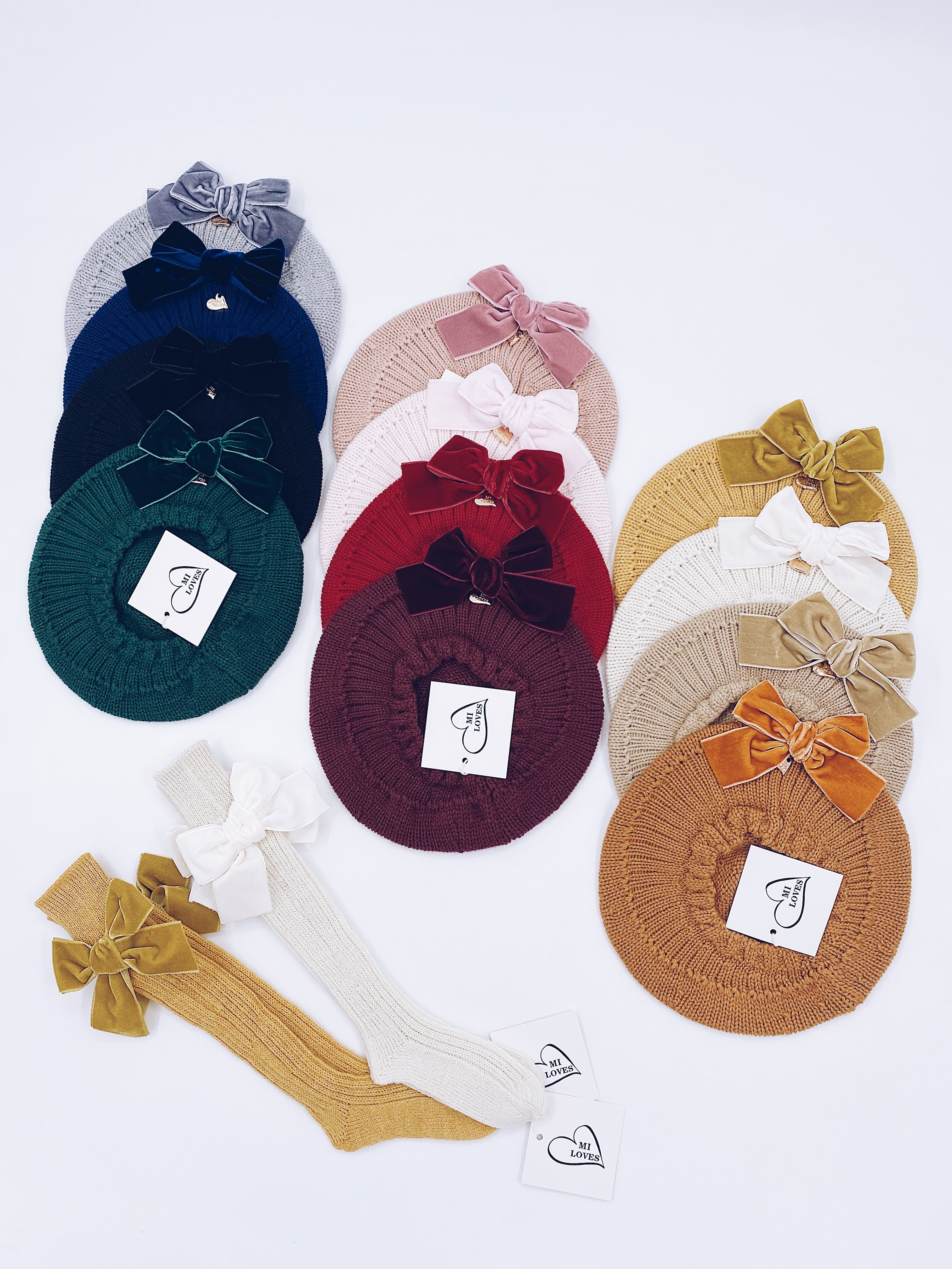 MI LOVES SIGNATURE Knitted beret with velvet bow