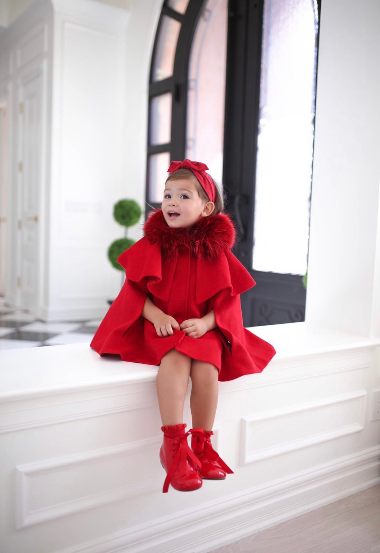 Red MI LOVES SIGNATURE LUXURIOUS CASHMERE CAPE WITH RACOON FUR TRIM