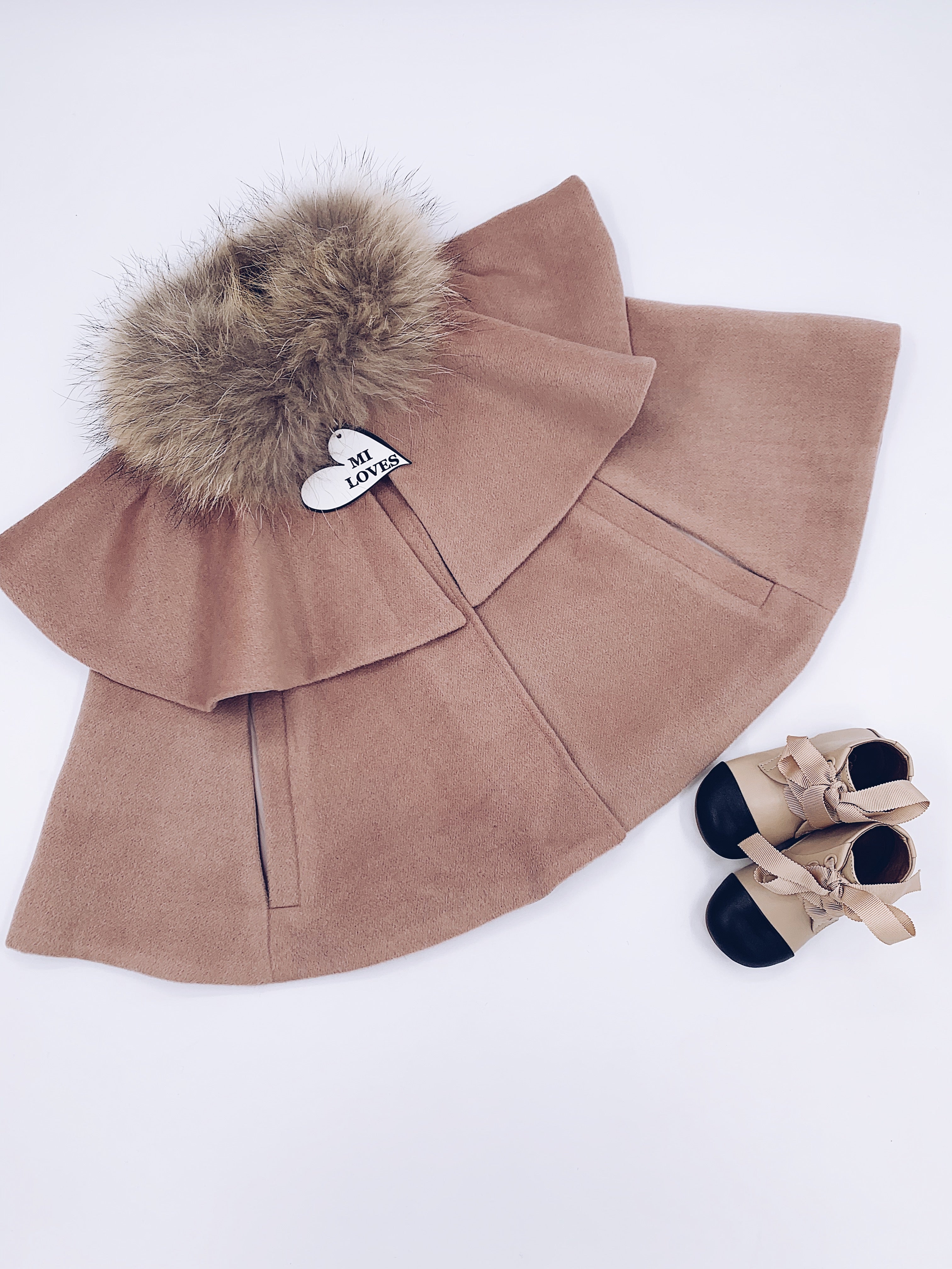 CAPPUCCINO MI LOVES SIGNATURE LUXURIOUS CASHMERE CAPE WITH RACOON FUR TRIM!!