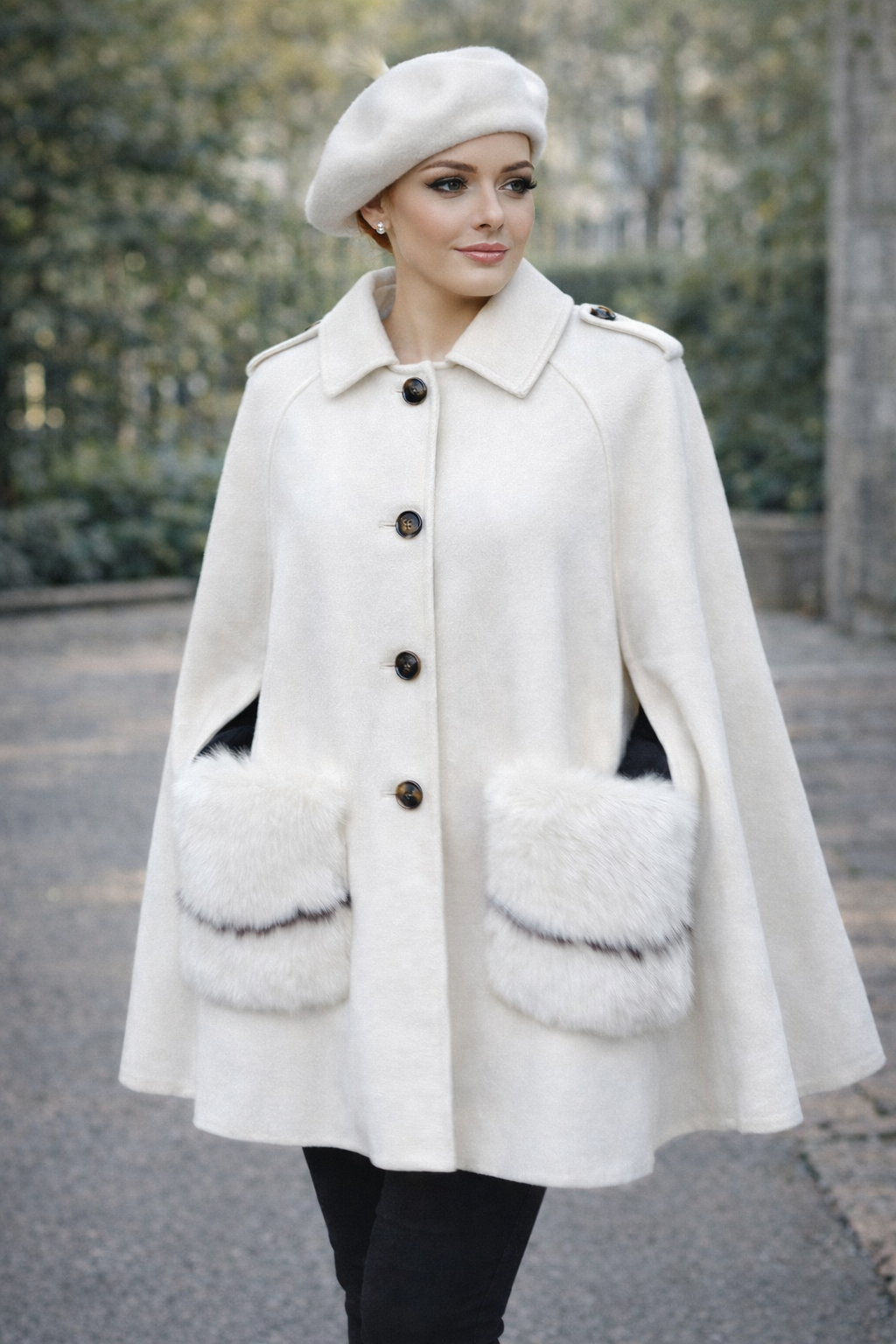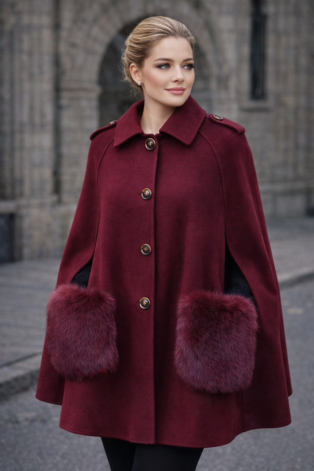 Adult Luxurious Cashmere cape with Fox fur details part of MI LOVES SIGNATURE ELITE COLLECTION