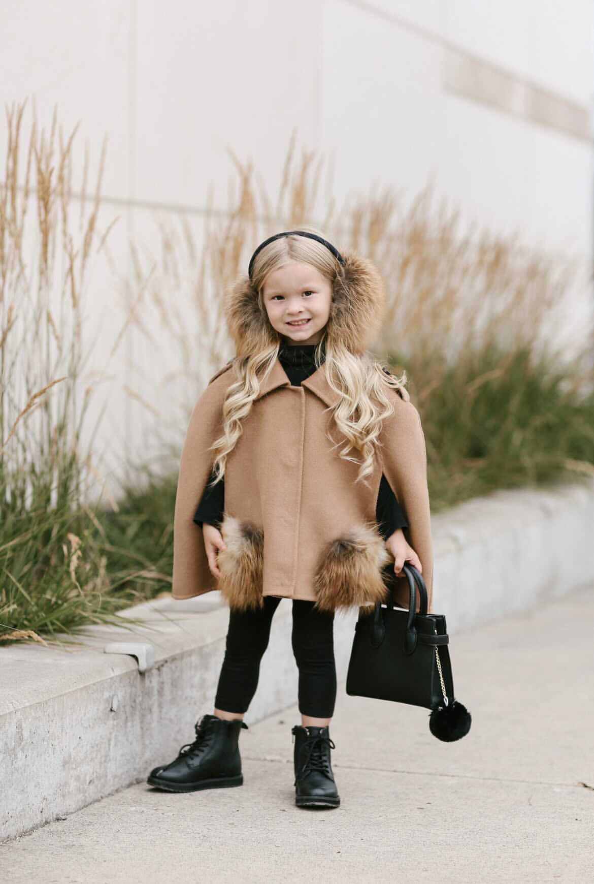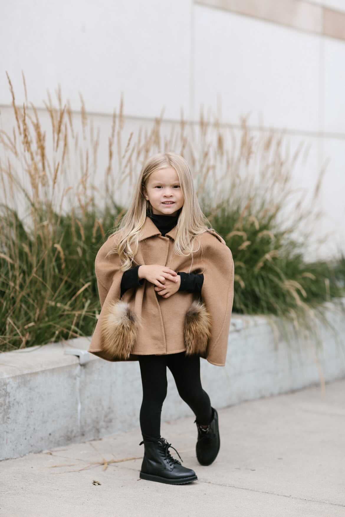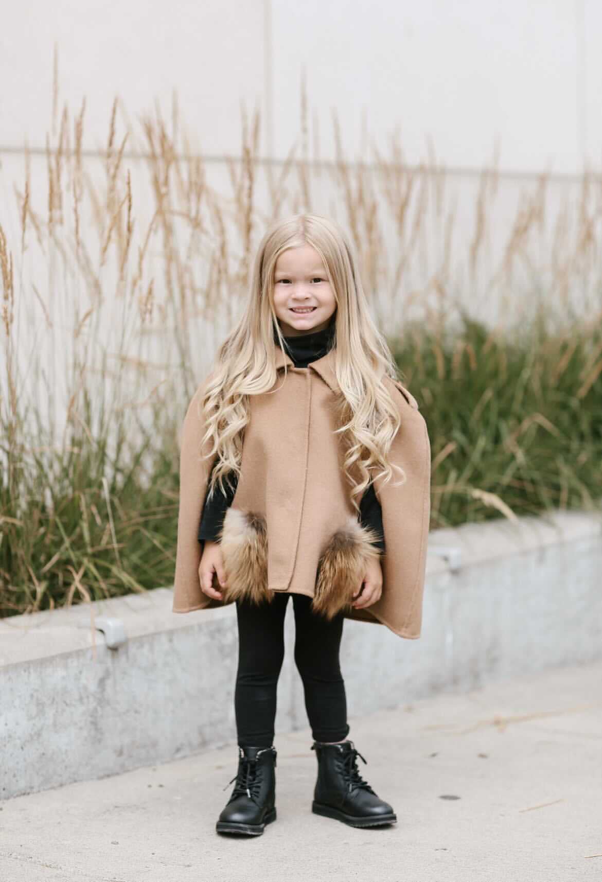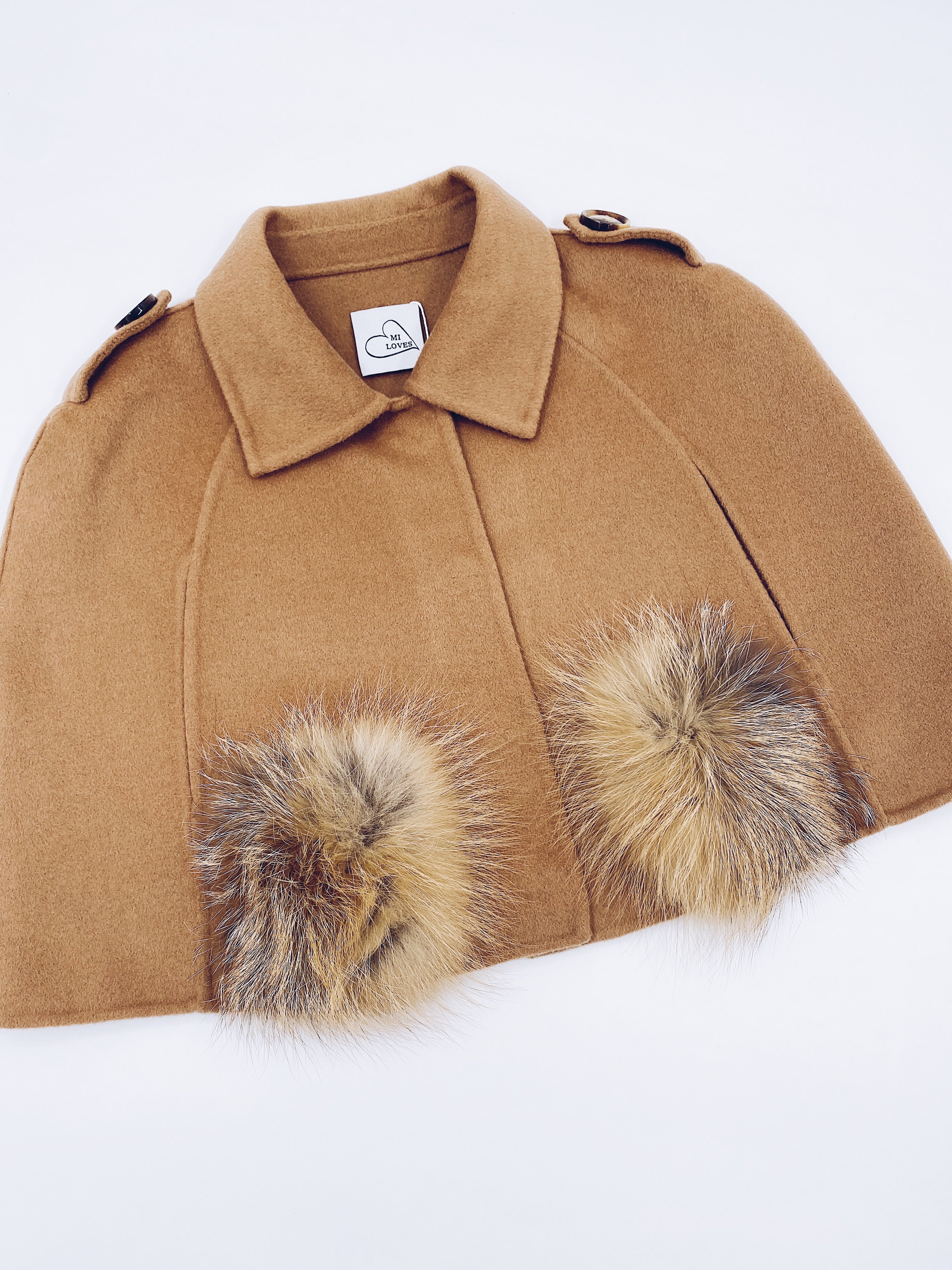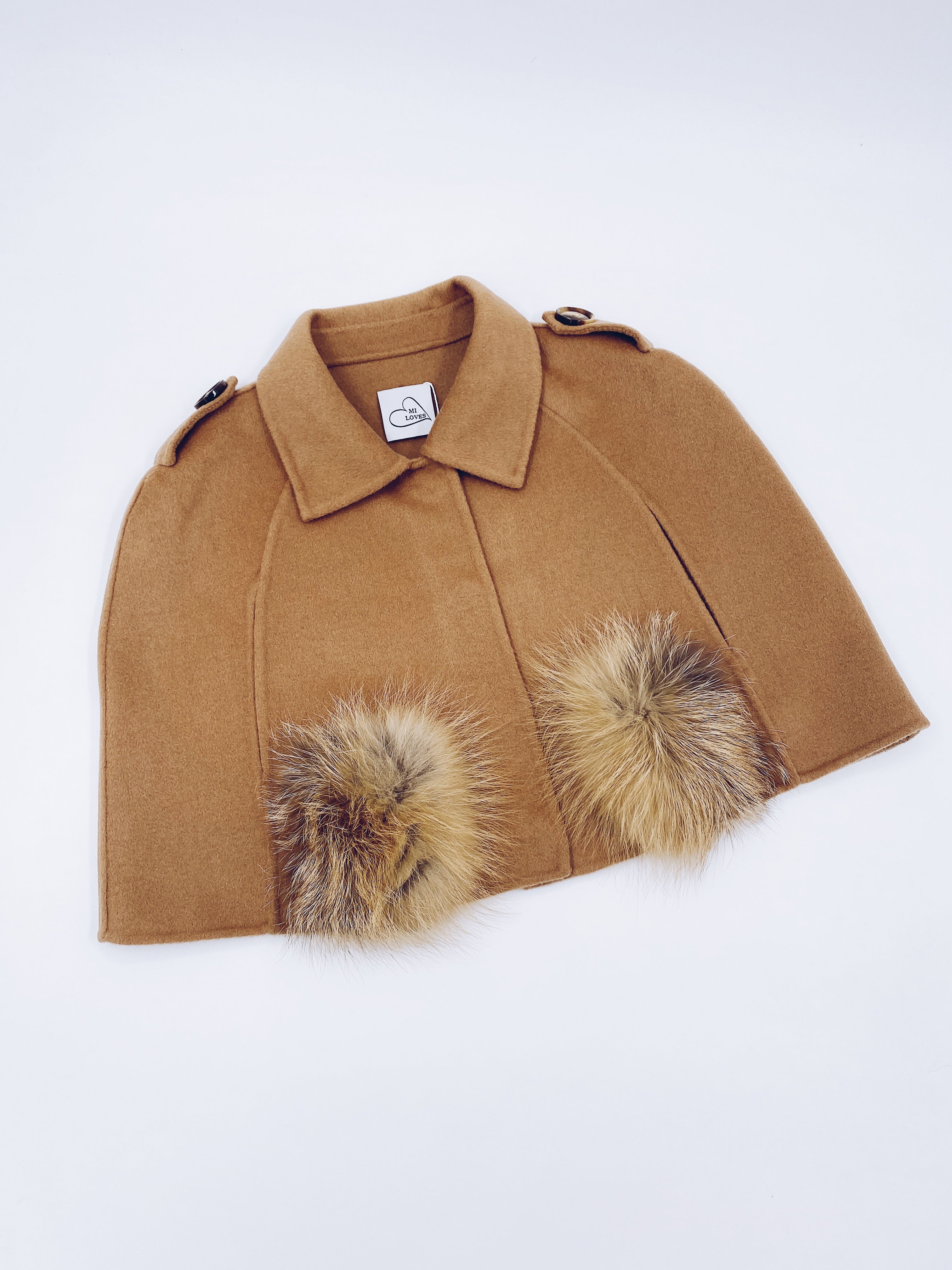 MI LOVES SIGNATURE Cashmere kids cape with Luxurious Natural Fox fur pockets.