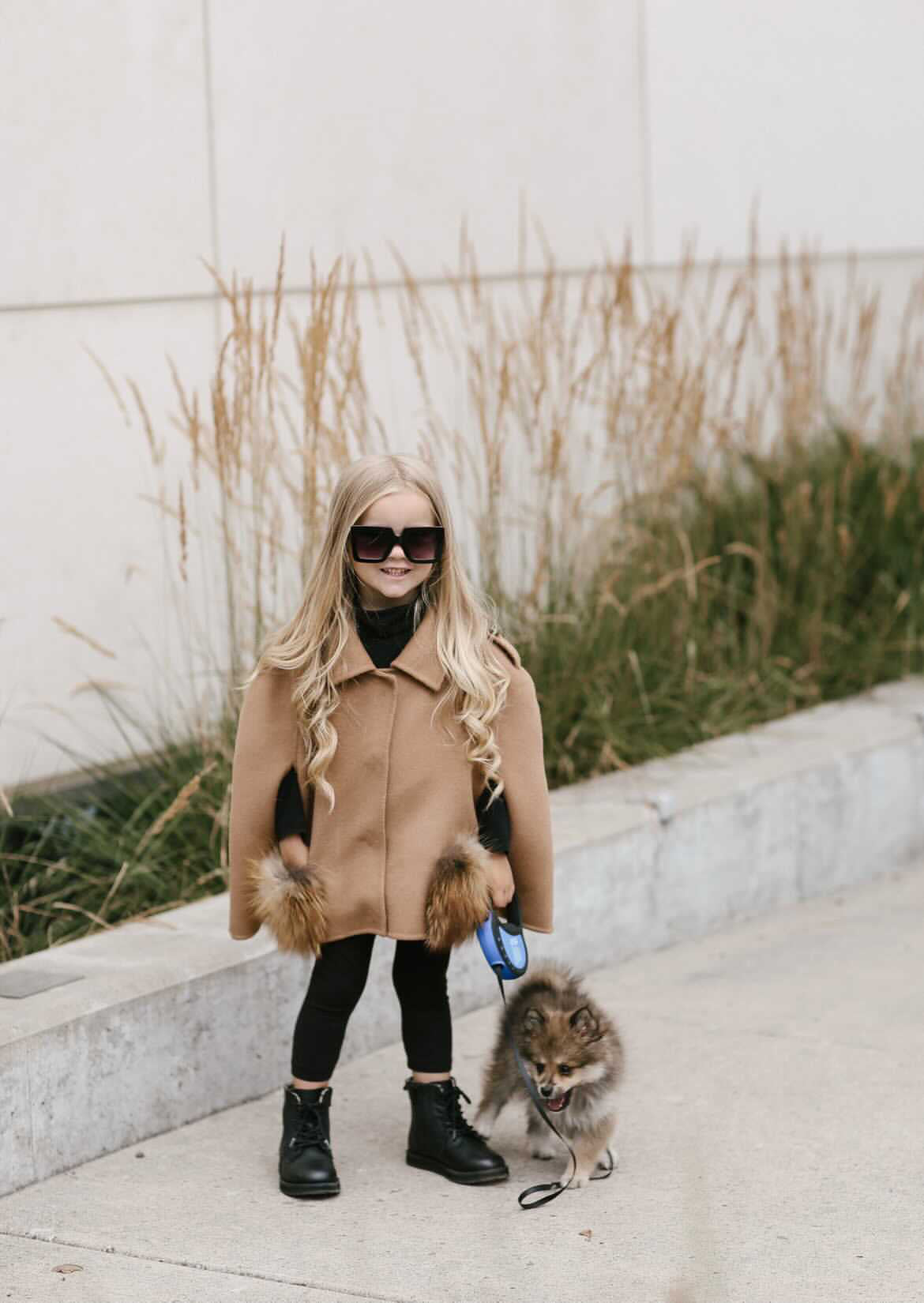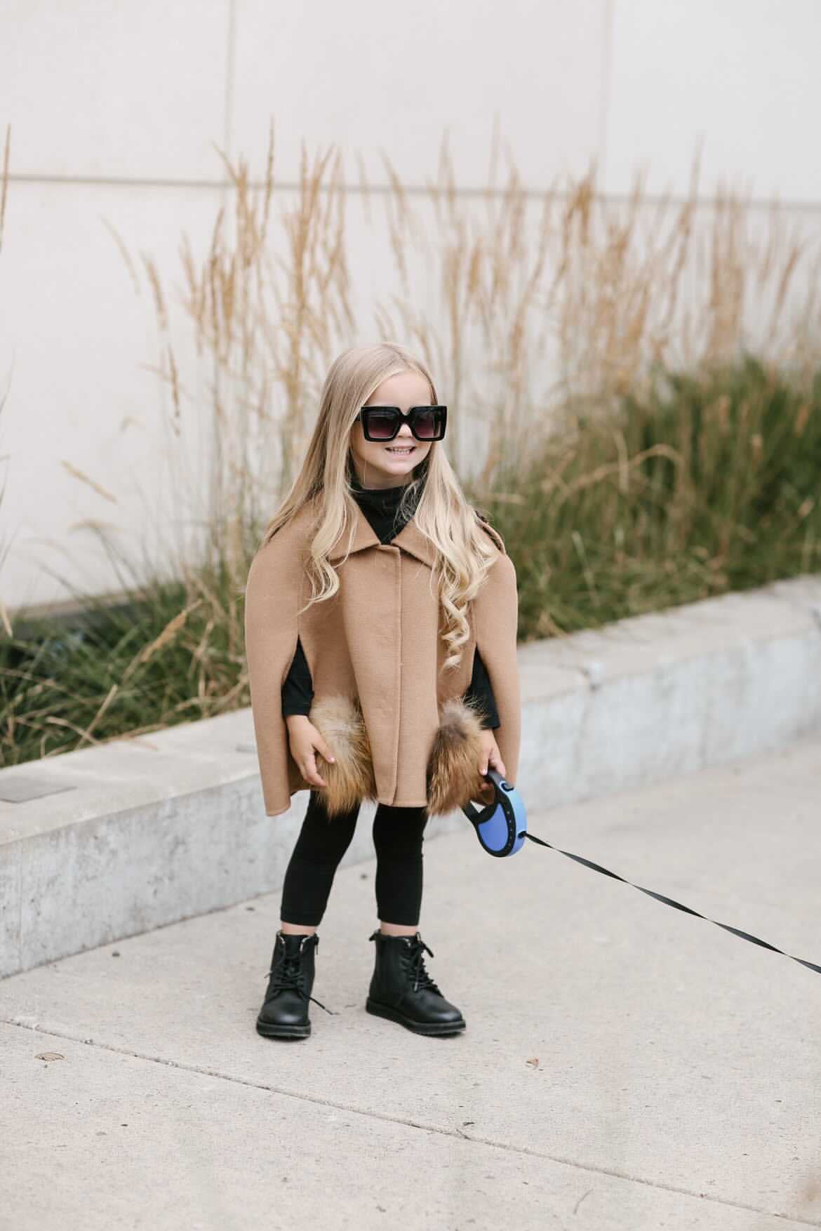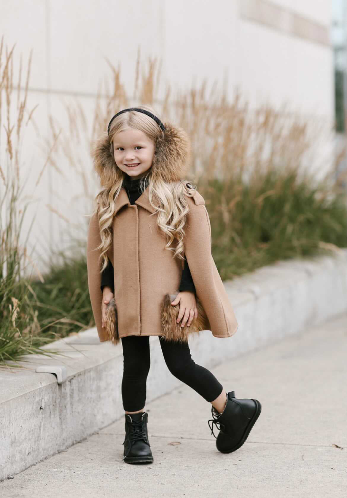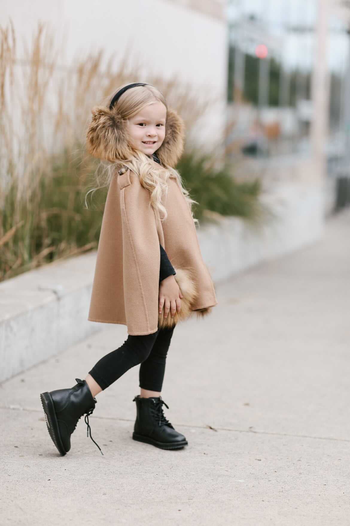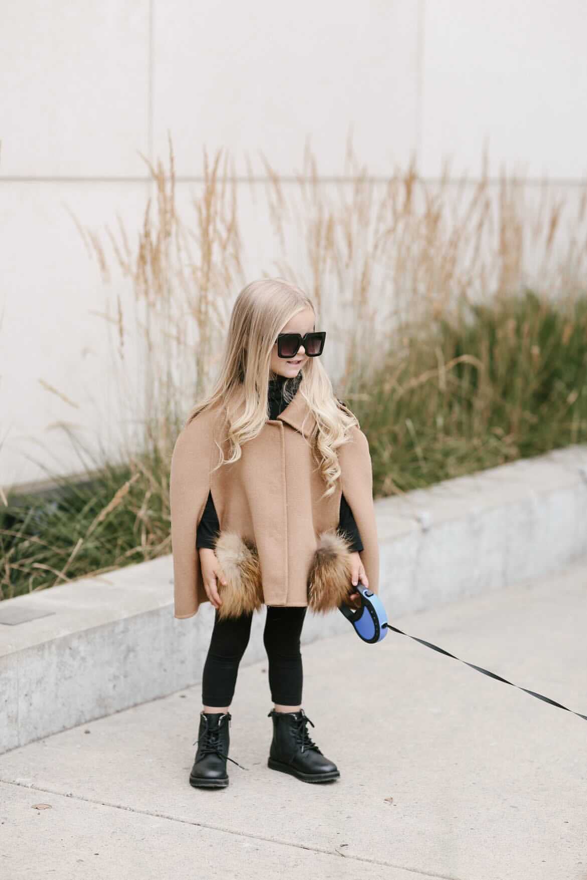 MI LOVES SIGNATURE Cashmere kids cape with Luxurious Natural Fox fur pockets.