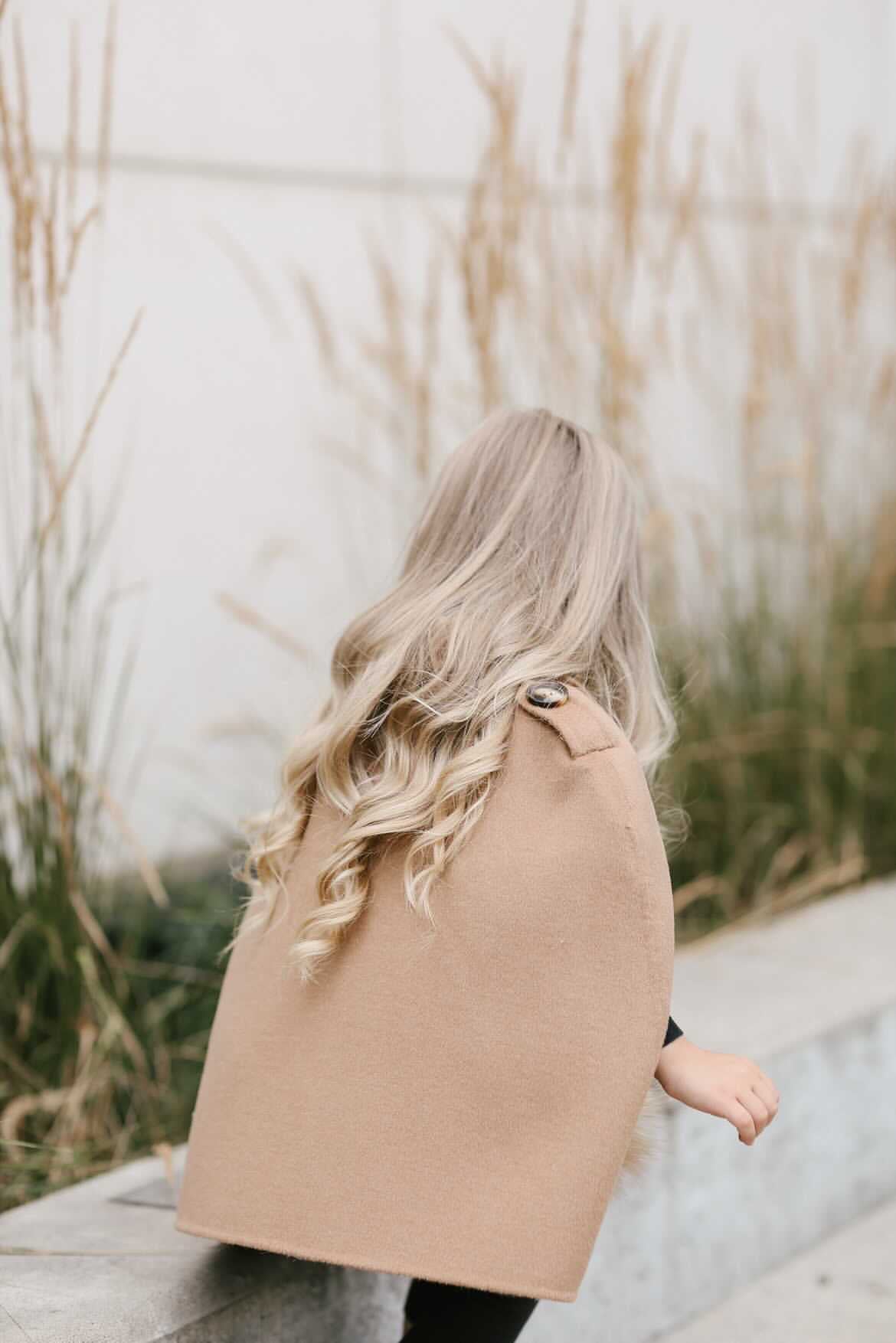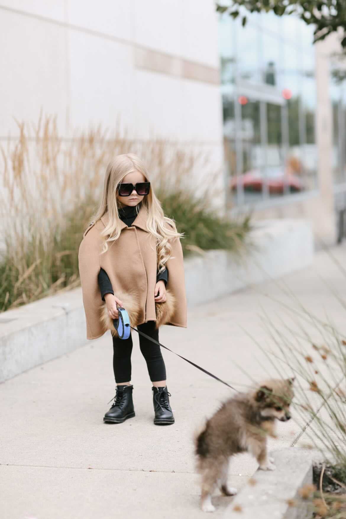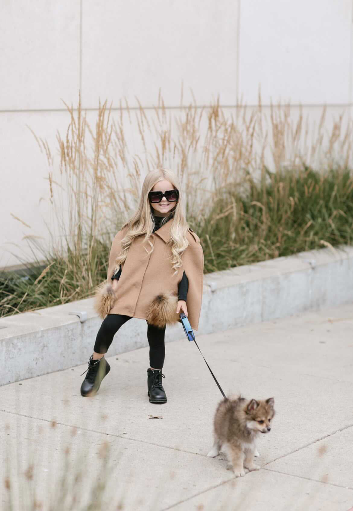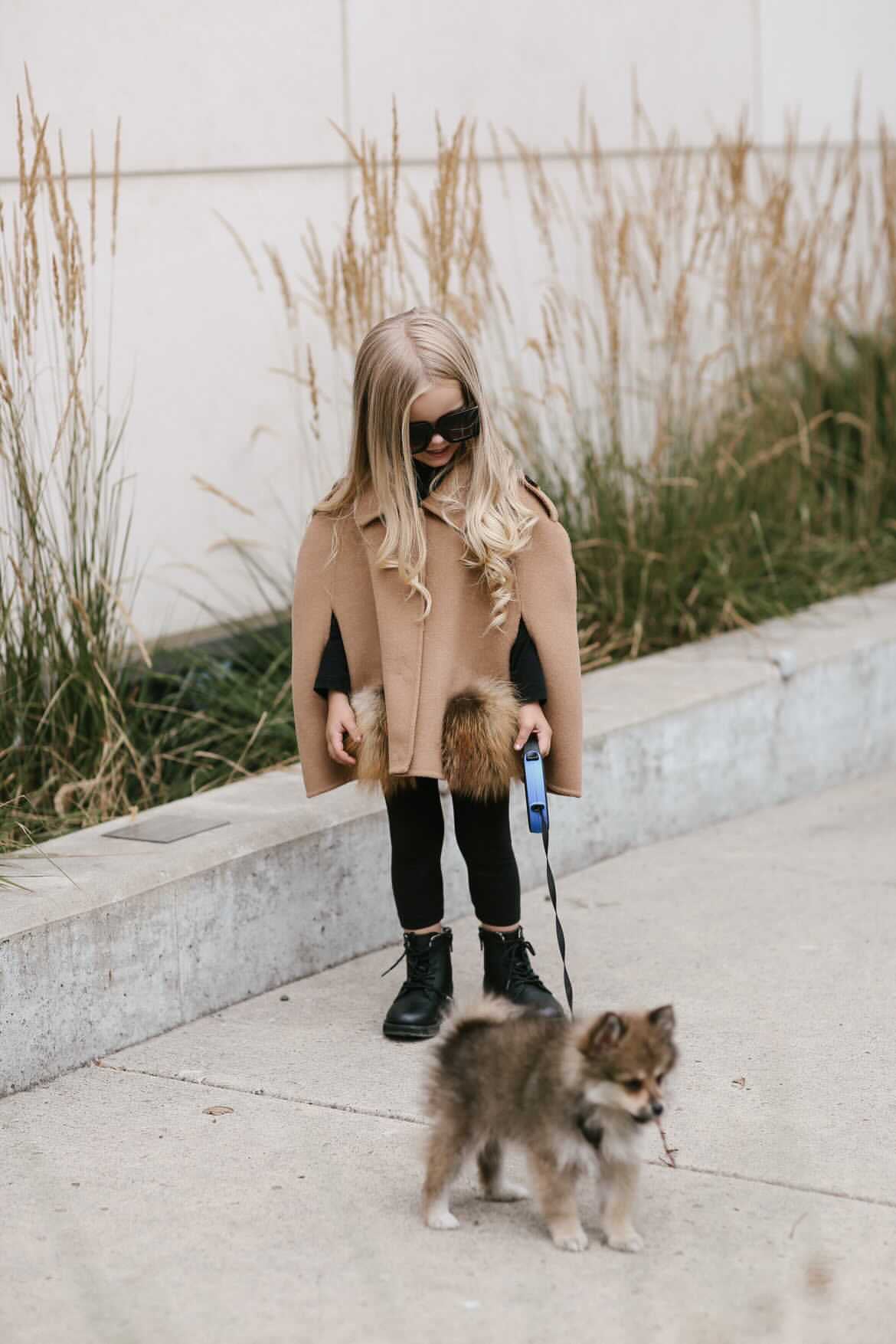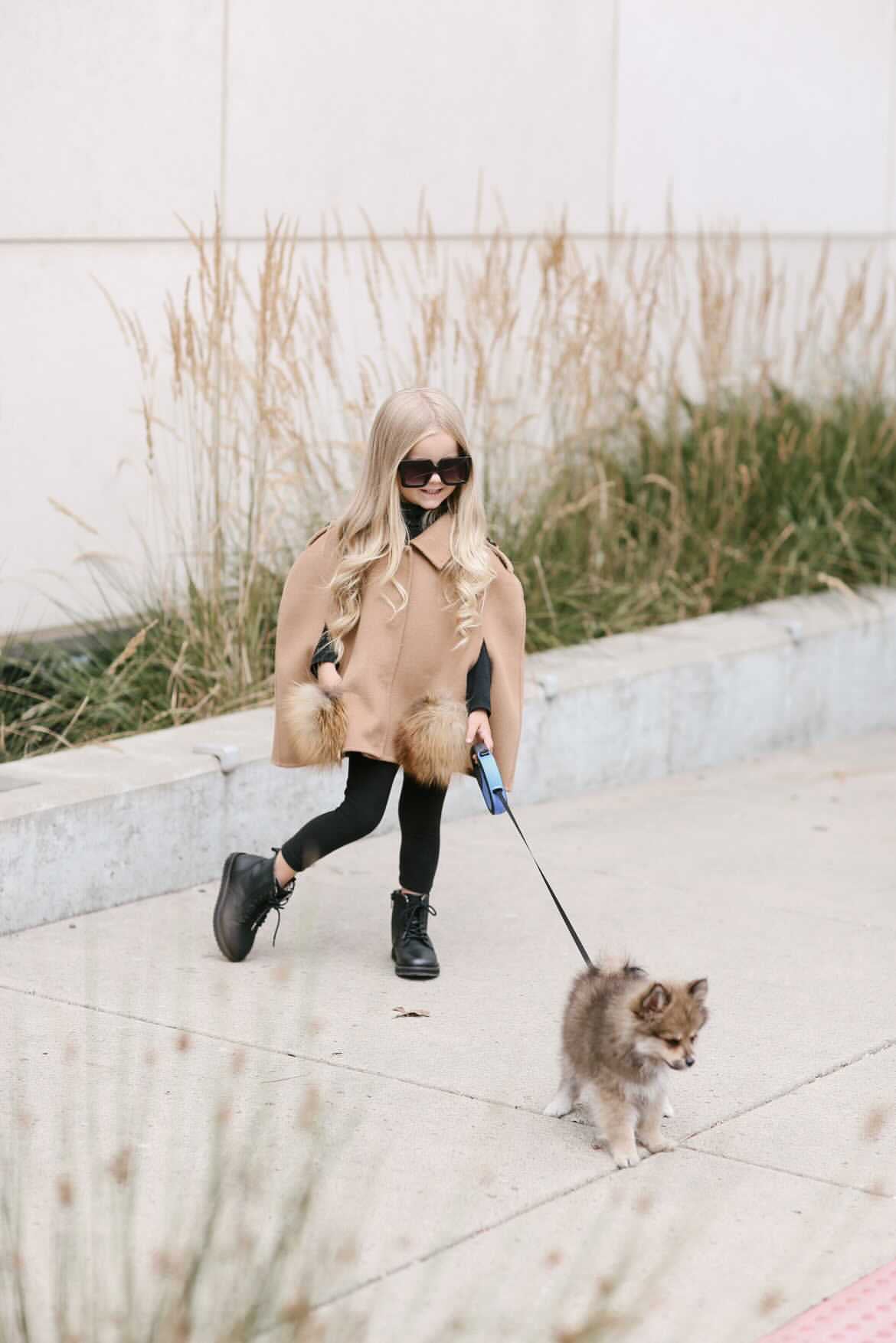 MI LOVES SIGNATURE Cashmere kids cape with Luxurious Natural Fox fur pockets.