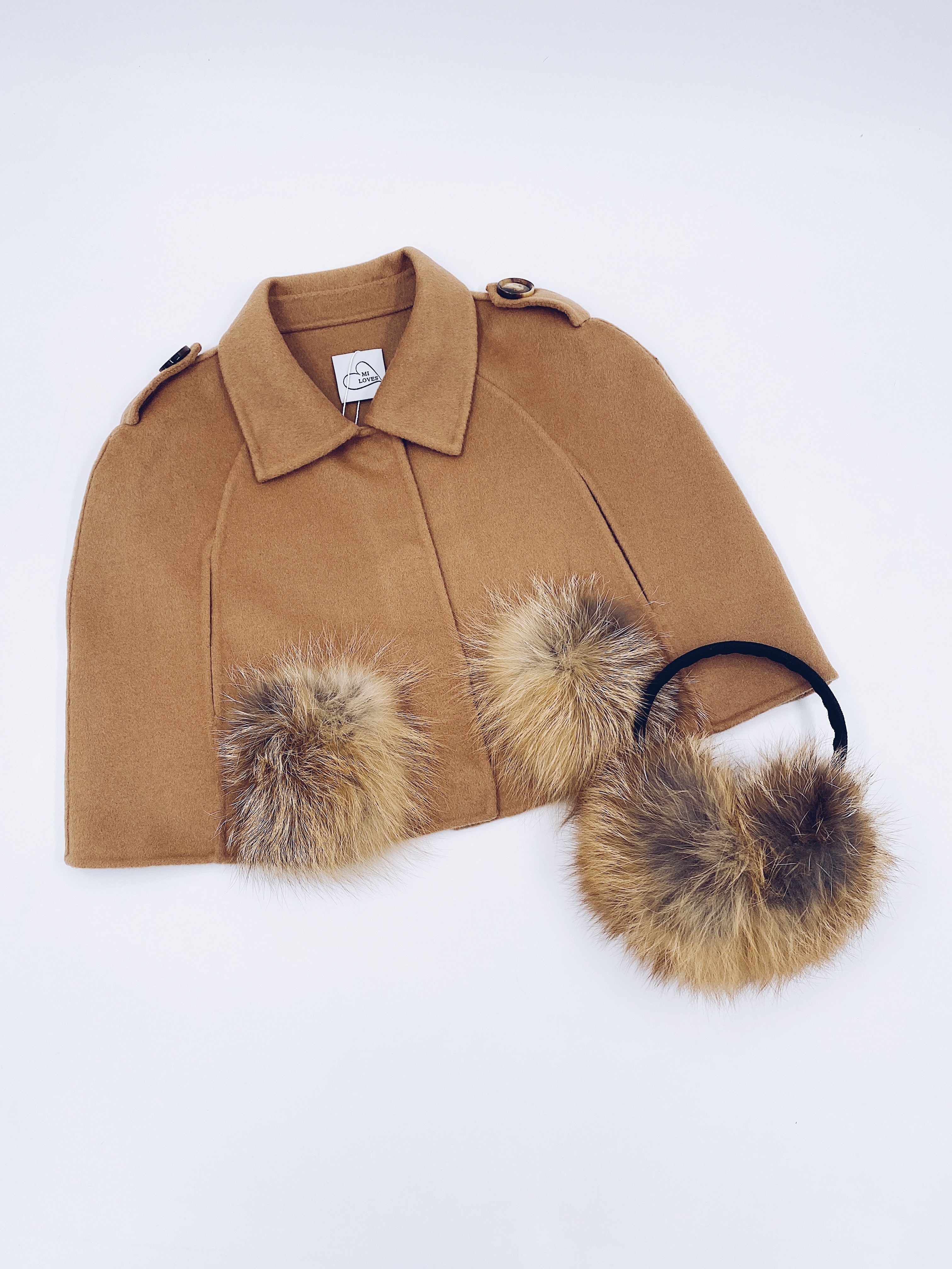 MI LOVES SIGNATURE Cashmere kids cape with Luxurious natural Fox fur pockets ,part of MI LOVES ELITE COLLECTION!!
