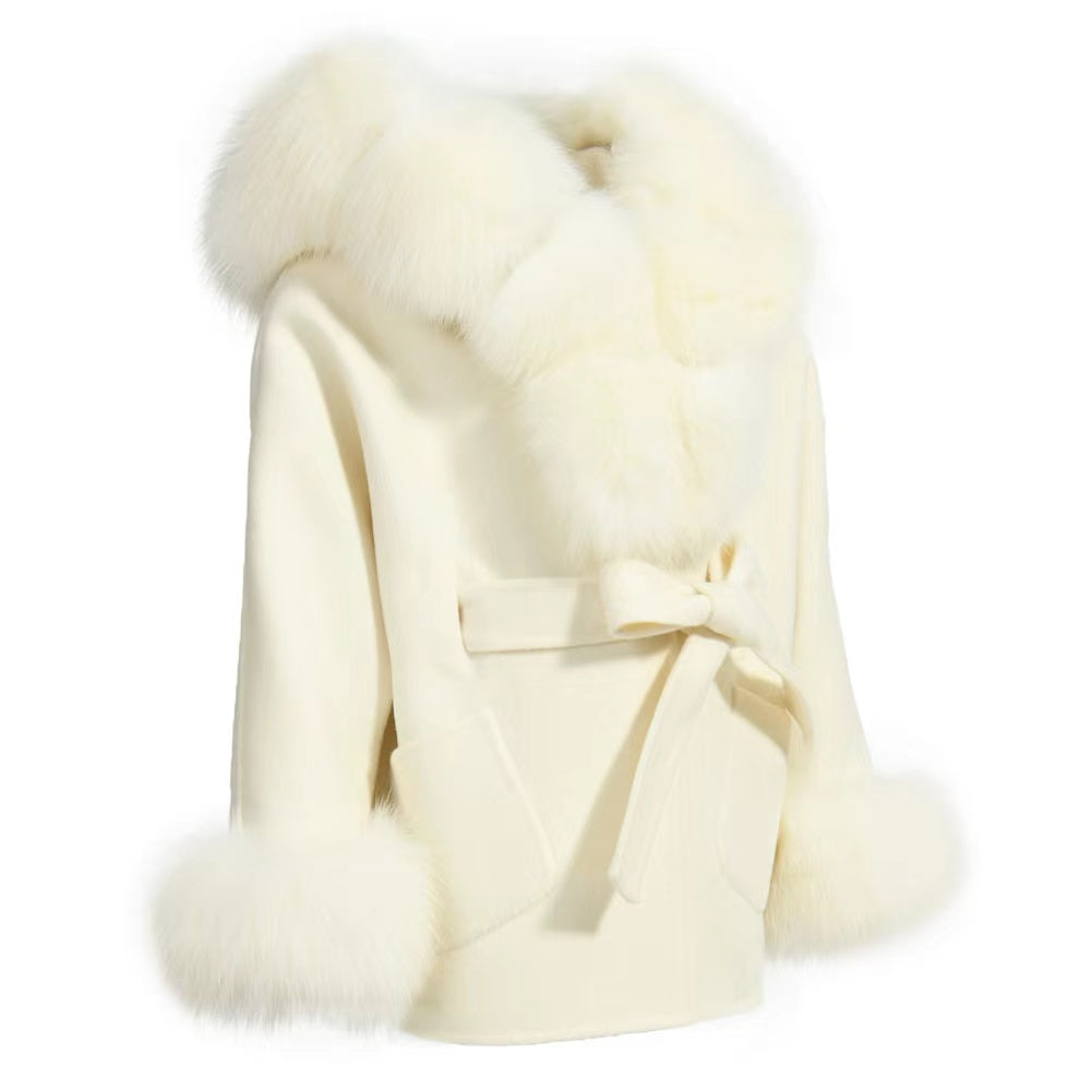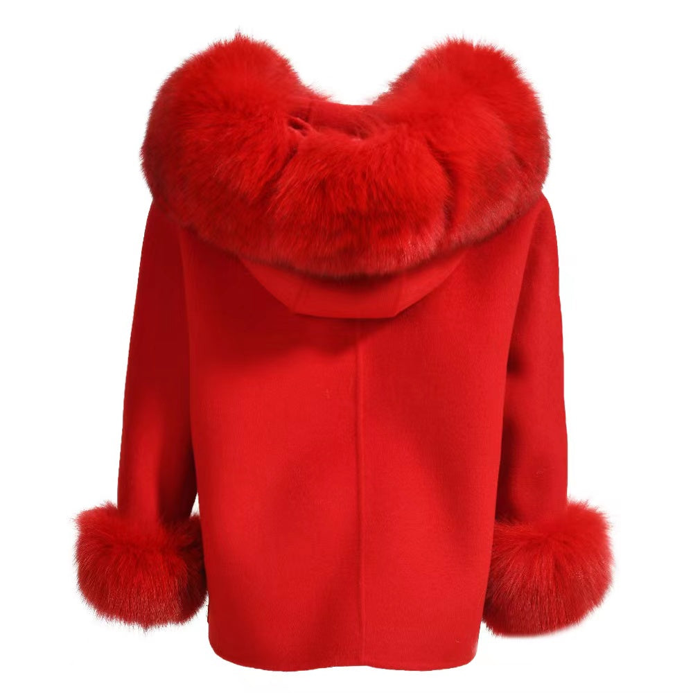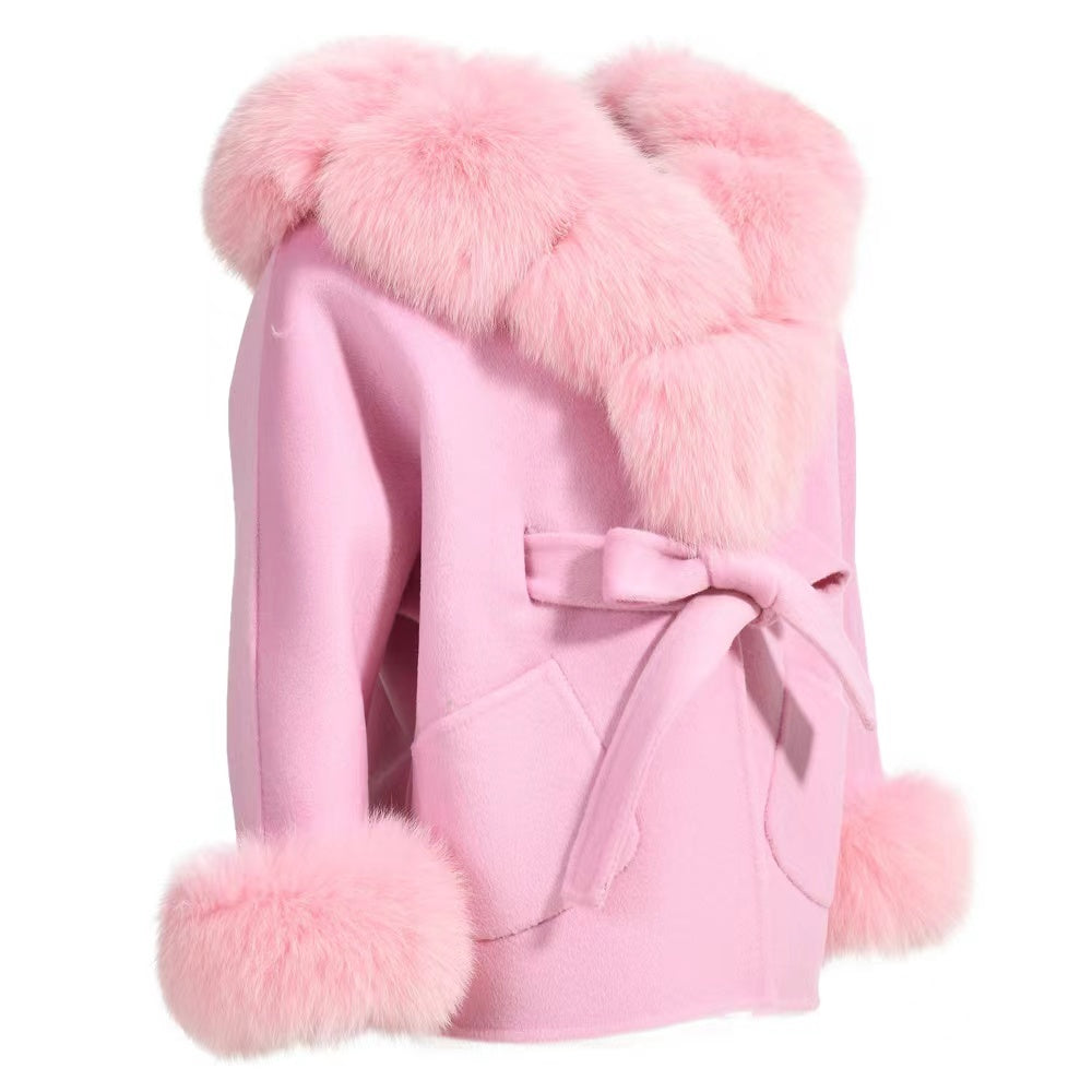 PRE ORDER(Delivery in 2-3 weeks)MI LOVES SIGNATURE Luxurious Anna cashmere Adult coat with Fox fur trim and cuffs.
