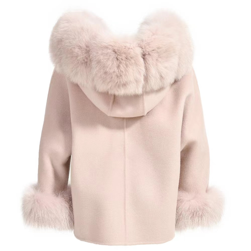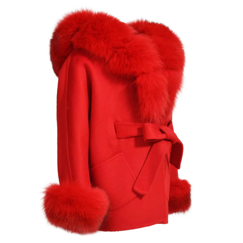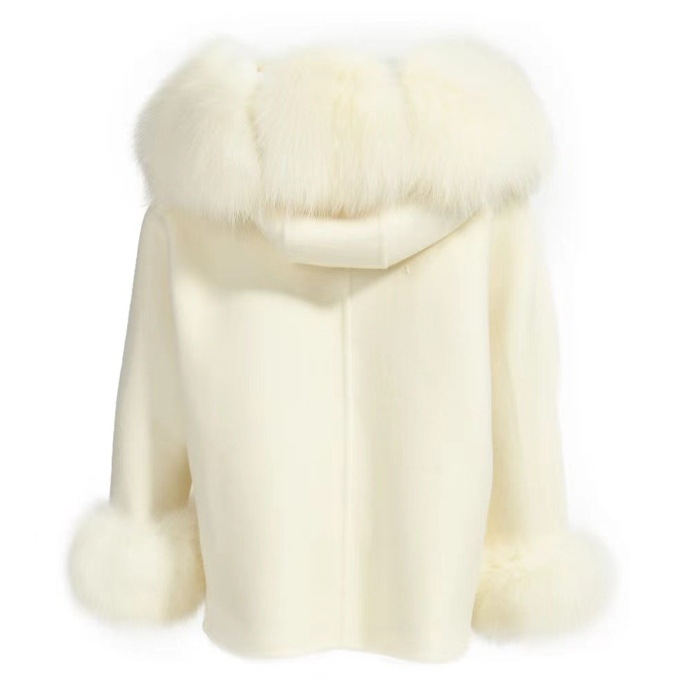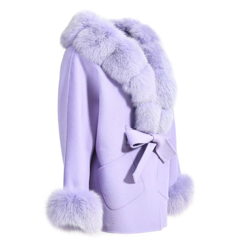 PRE ORDER(Delivery in 2-3 weeks)MI LOVES SIGNATURE Luxurious Anna cashmere Adult coat with Fox fur trim and cuffs.