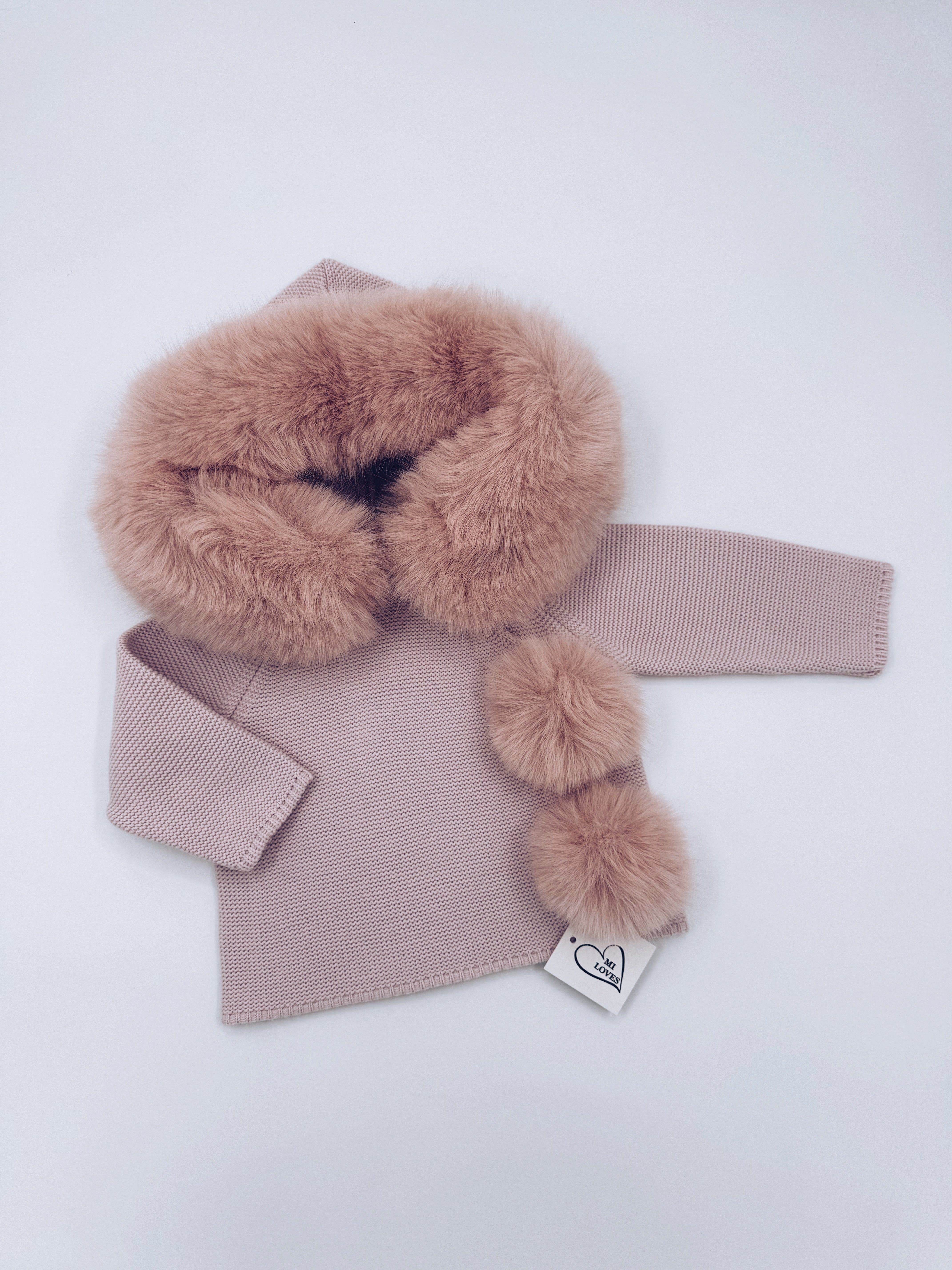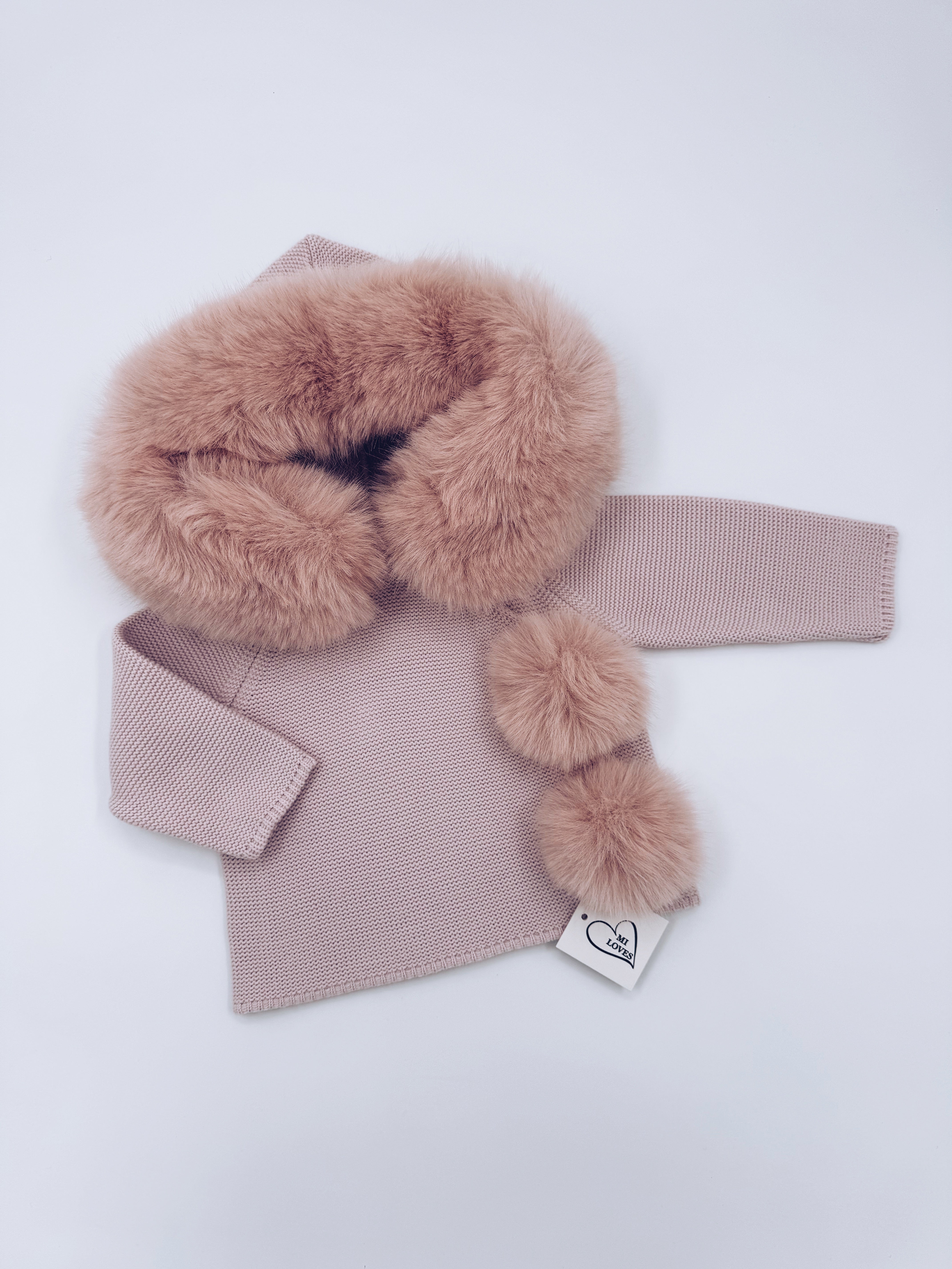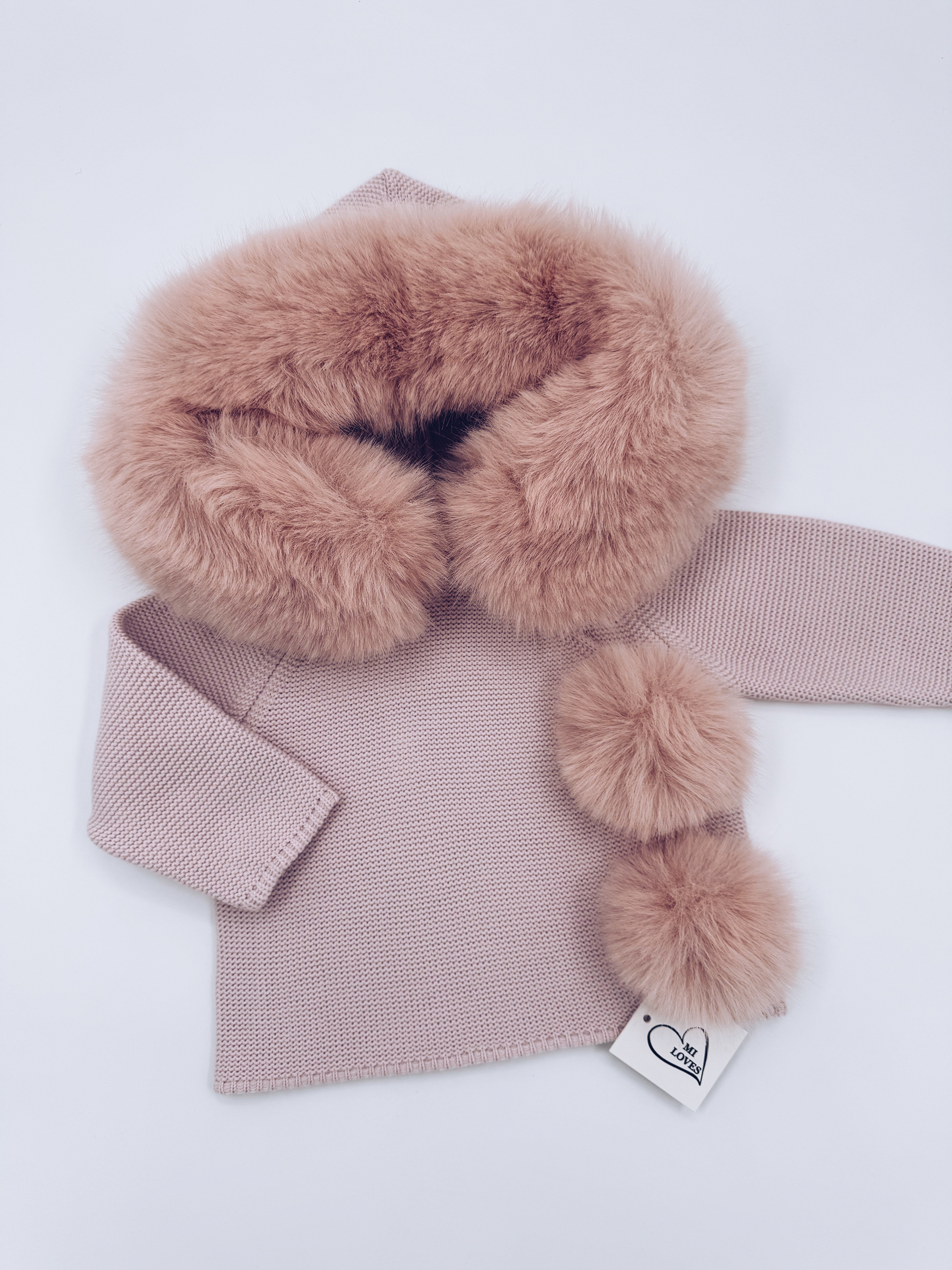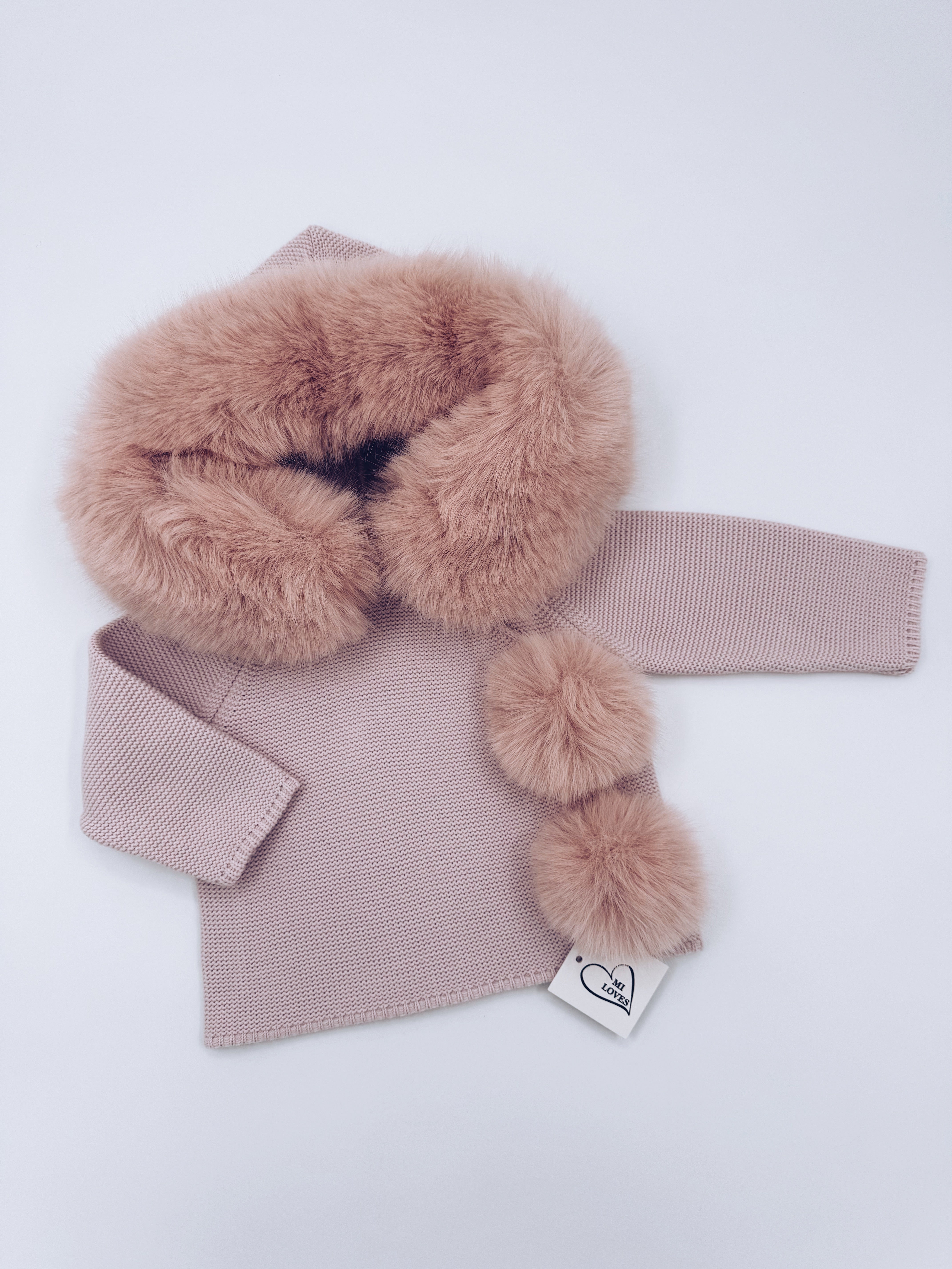 MI LOVES SignatureDusty pink Knitted Cardigan with Synthetic fur trim.