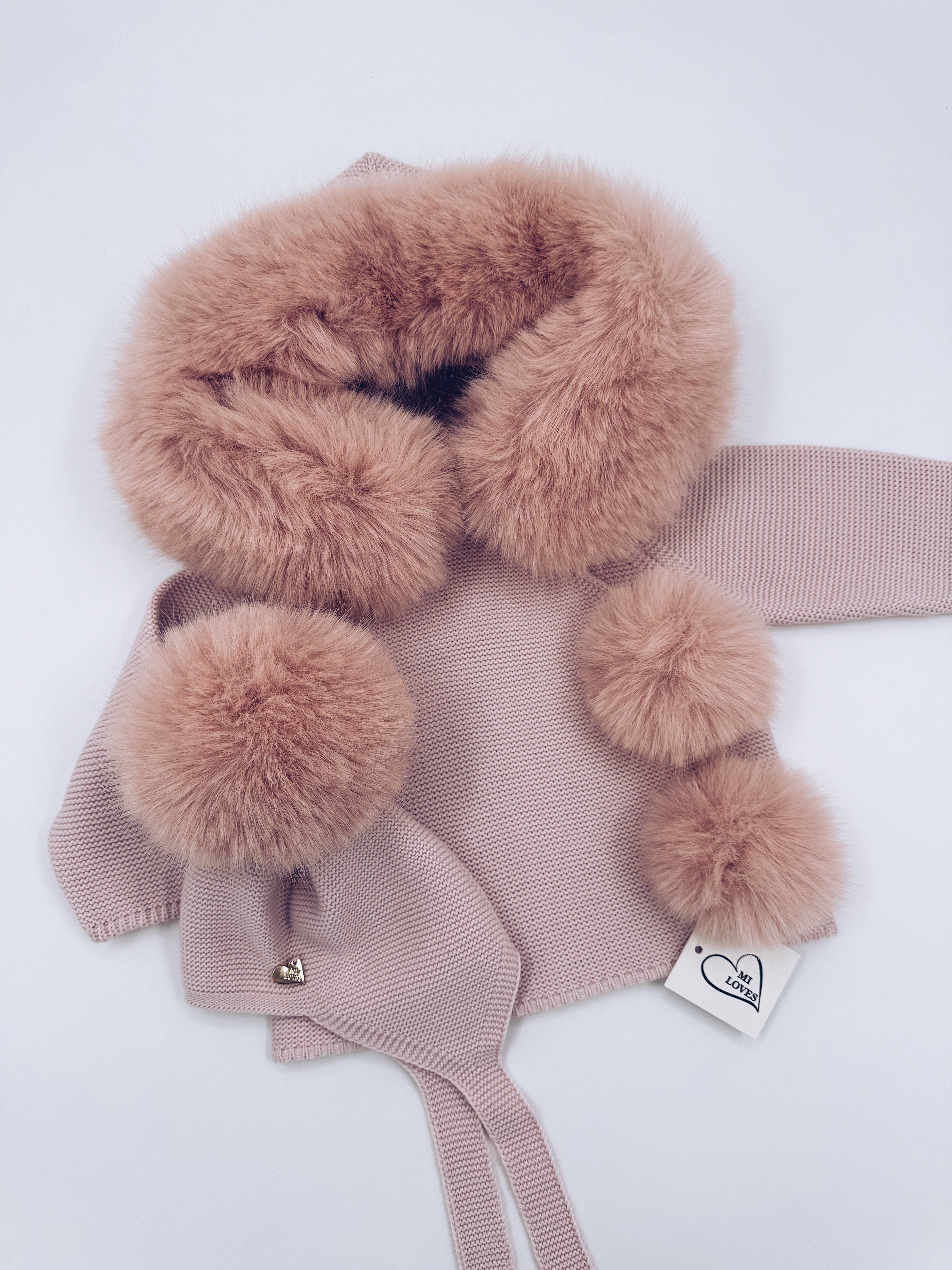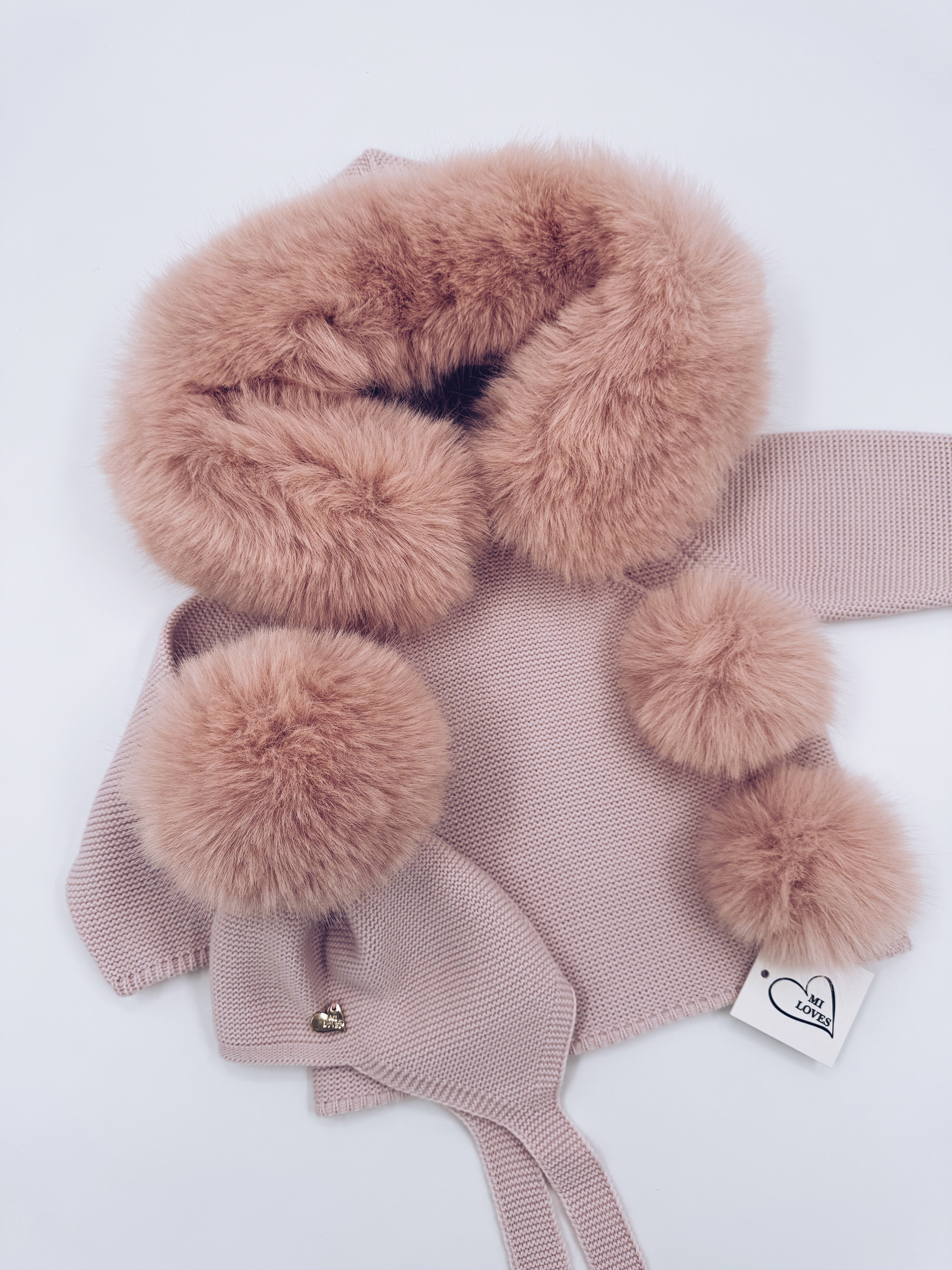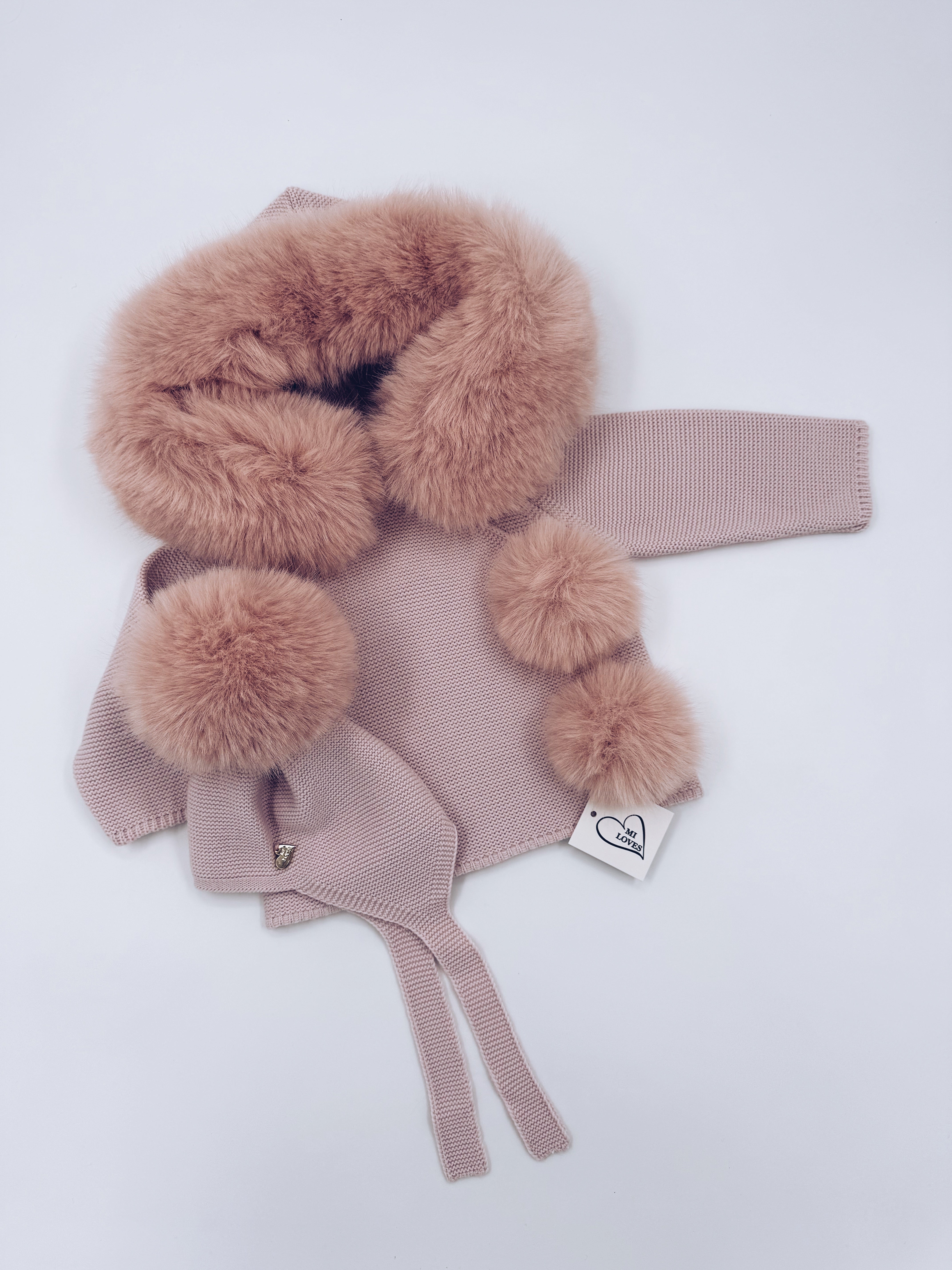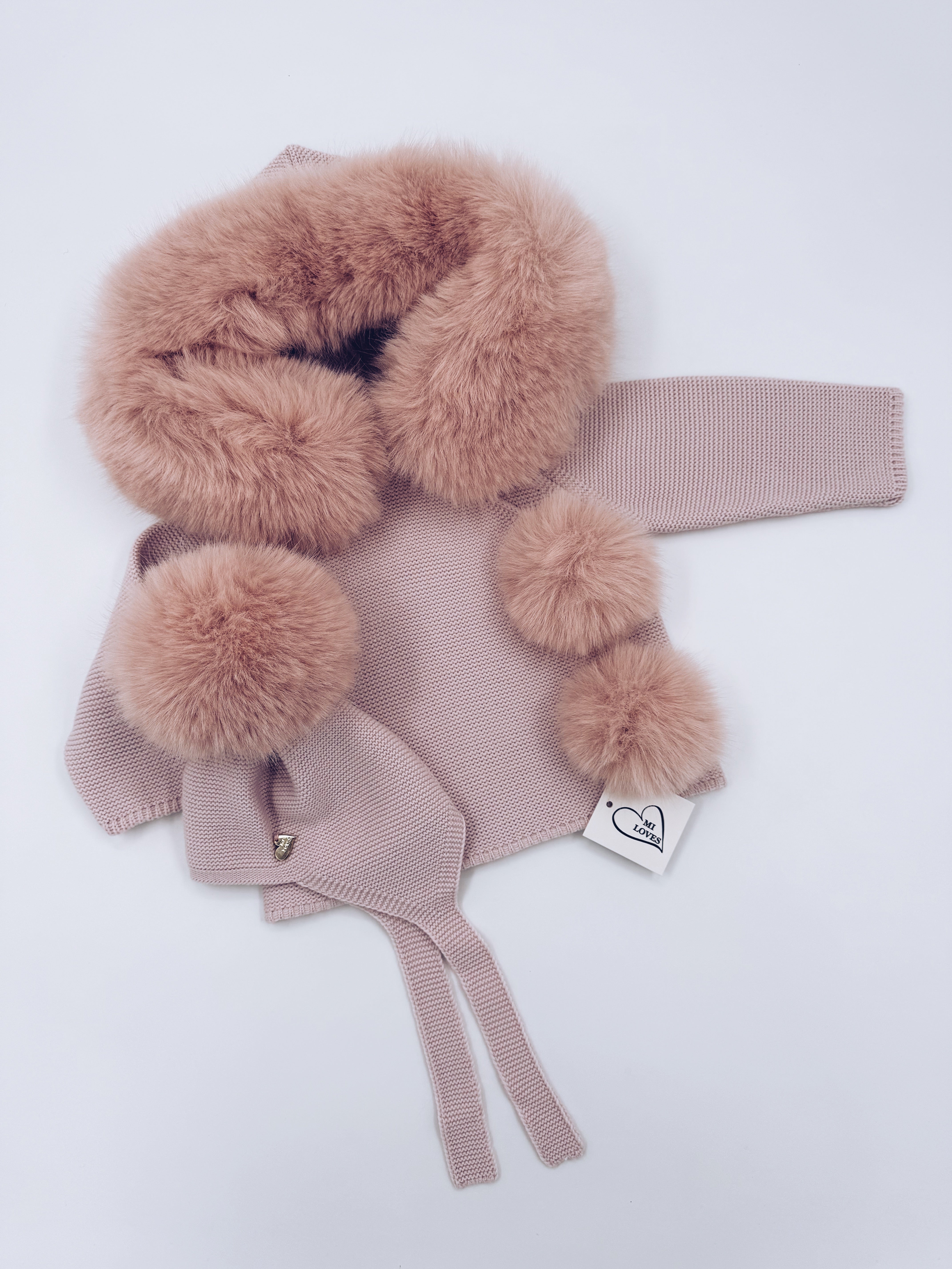 MI LOVES SignatureDusty pink Knitted Cardigan with Synthetic fur trim.