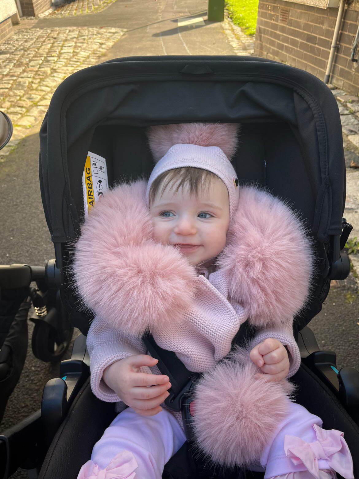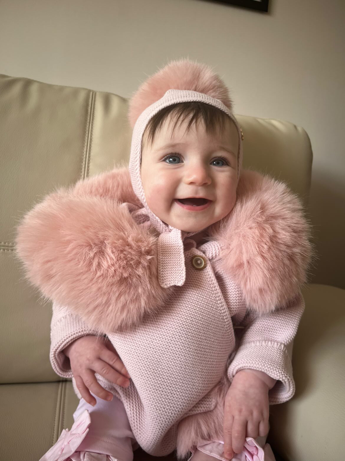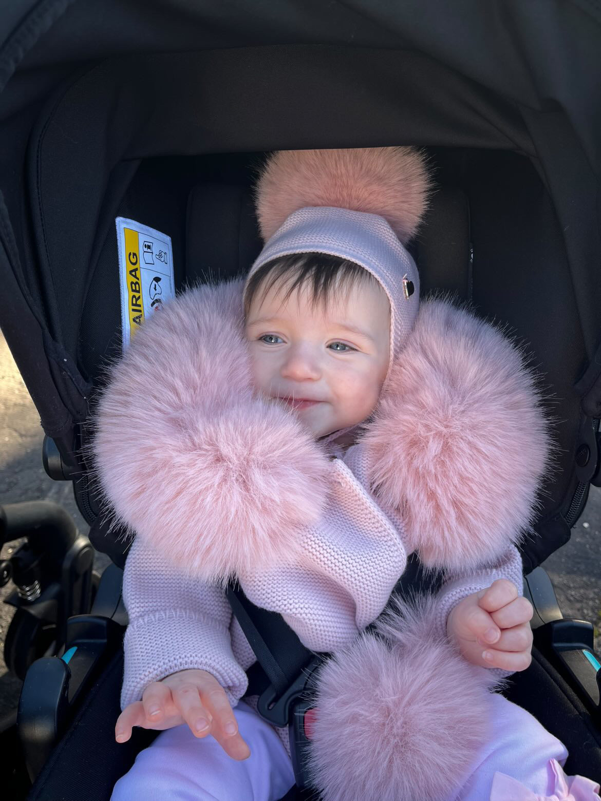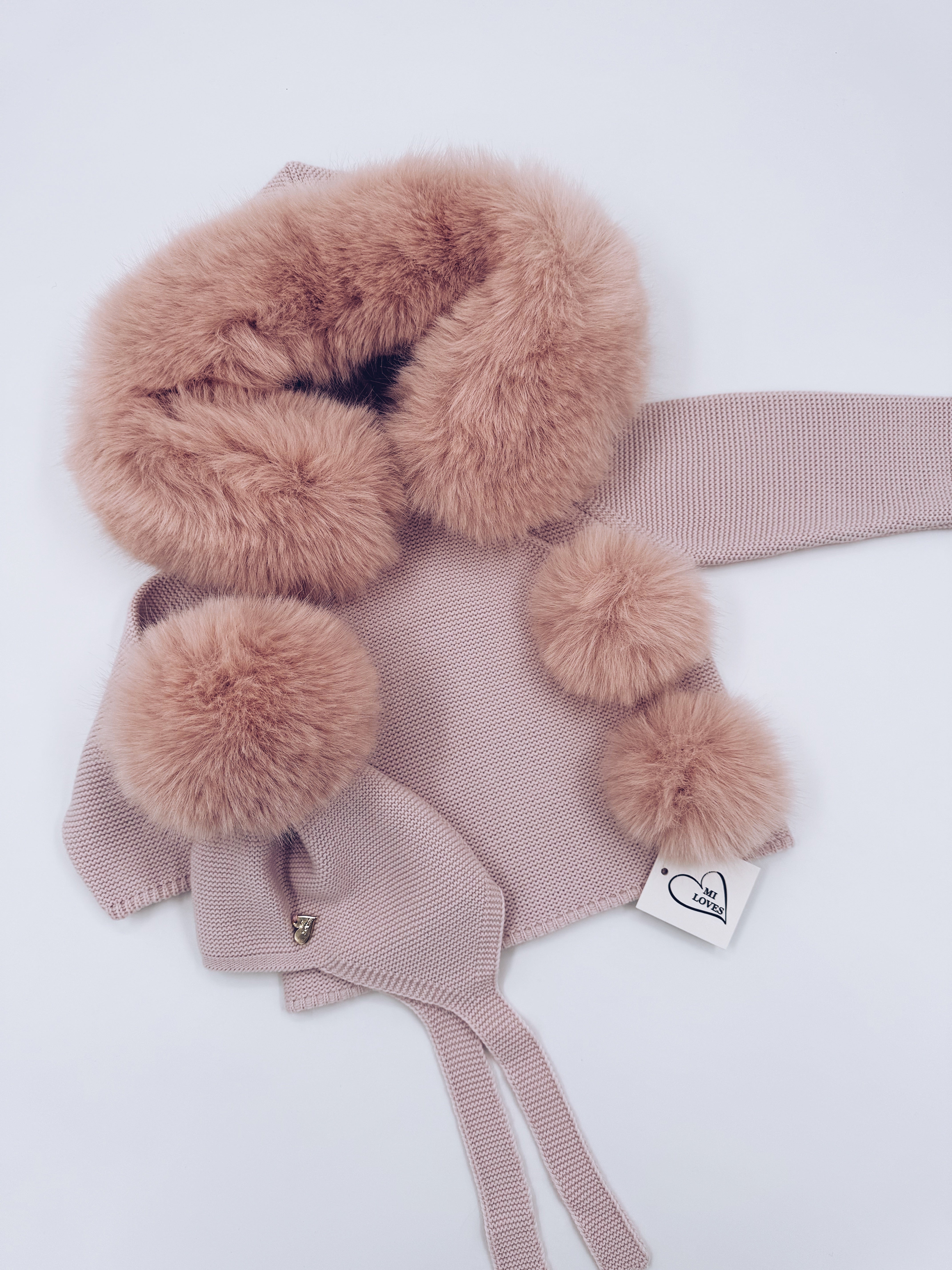 MI LOVES SignatureDusty pink Knitted Cardigan with Synthetic fur trim.