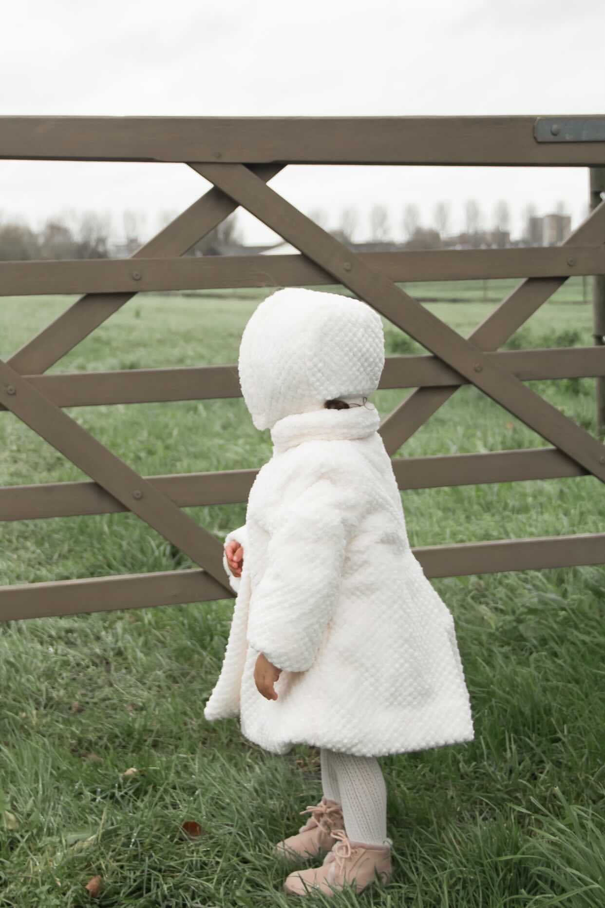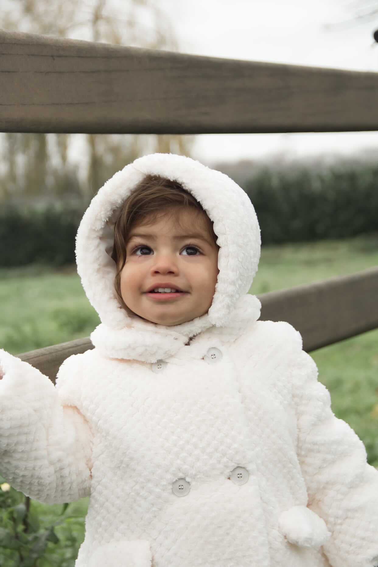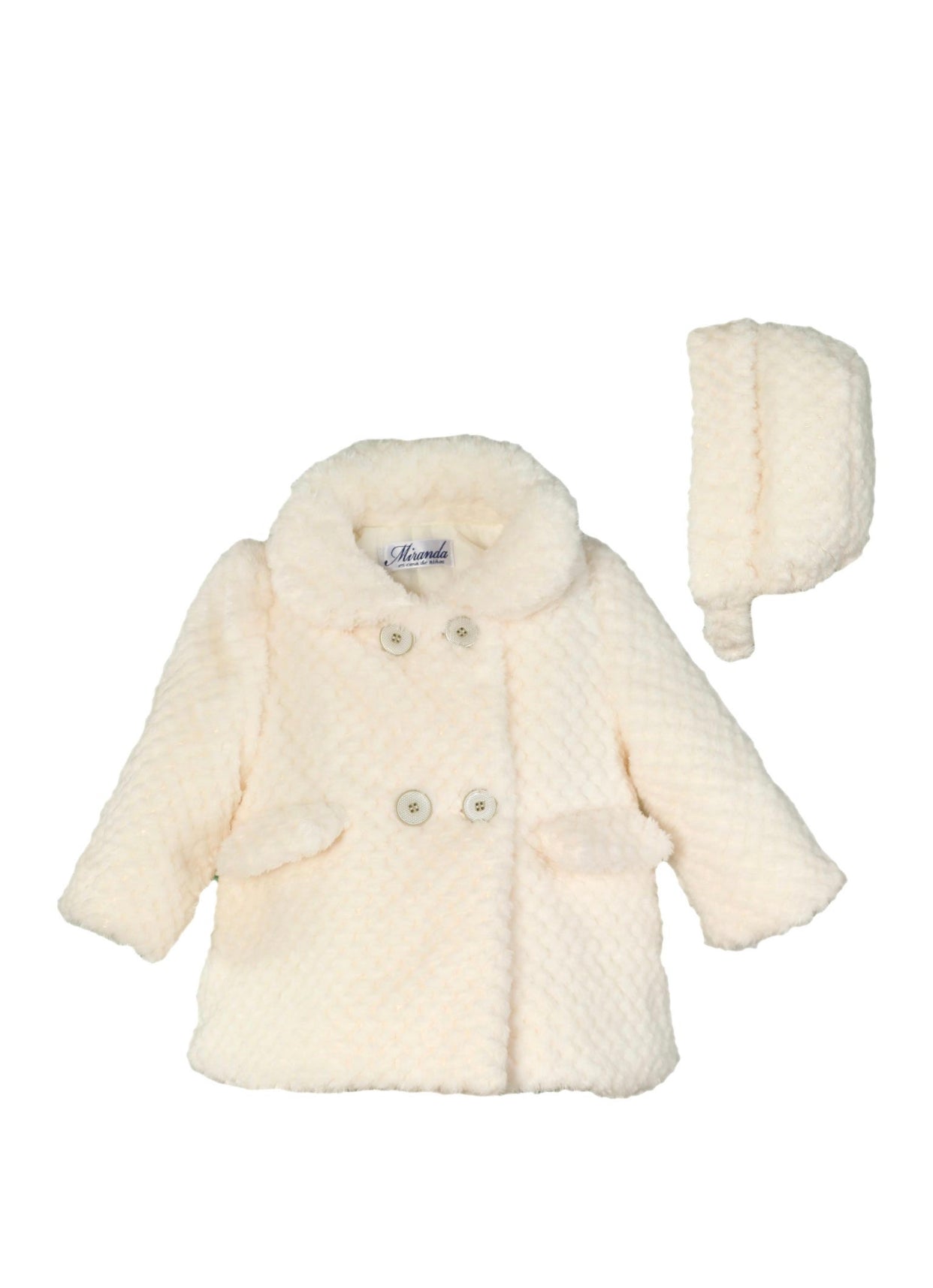 MIRANDA Beautiful Ivory Synthetic fur baby girl coat and bonnet set