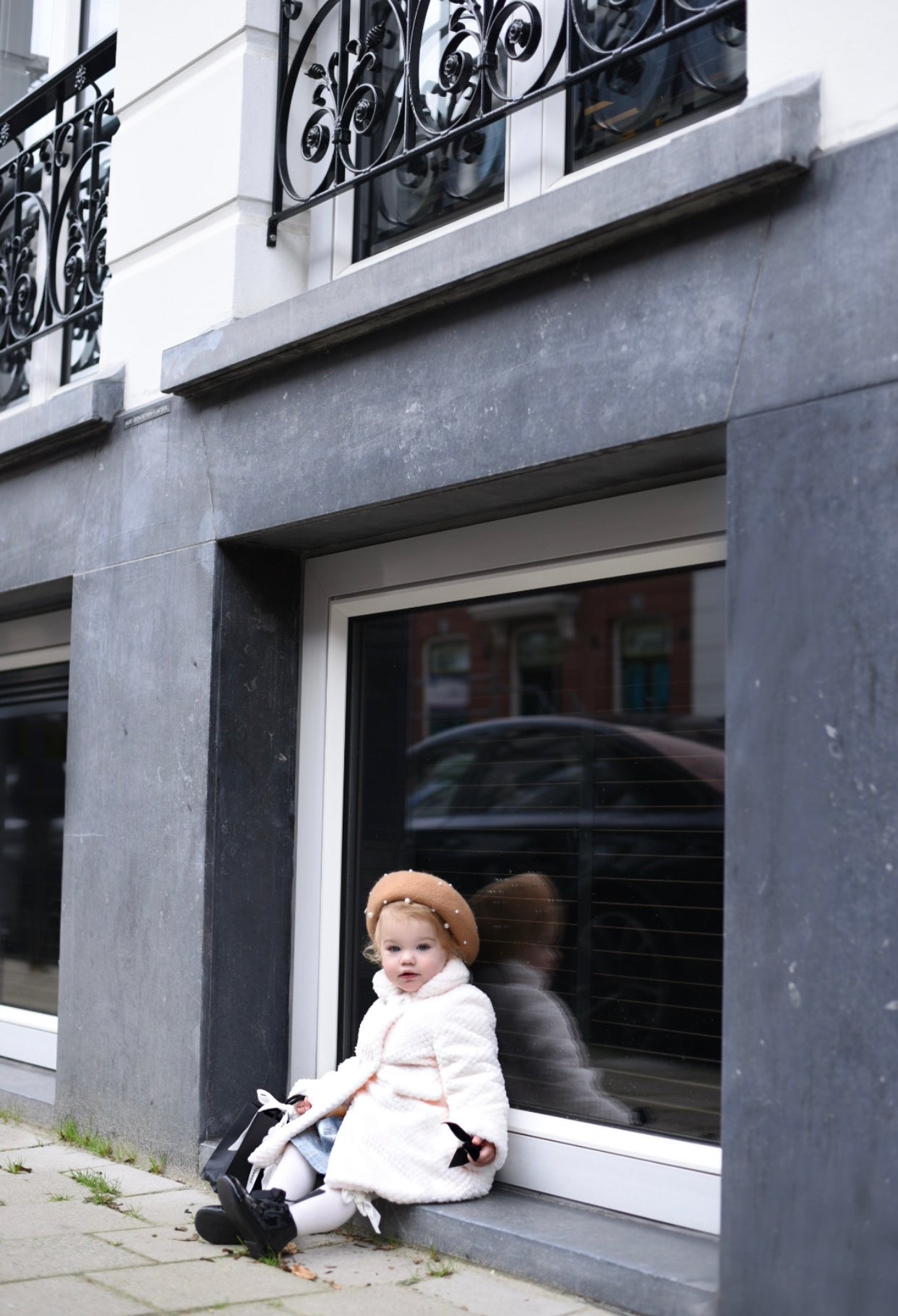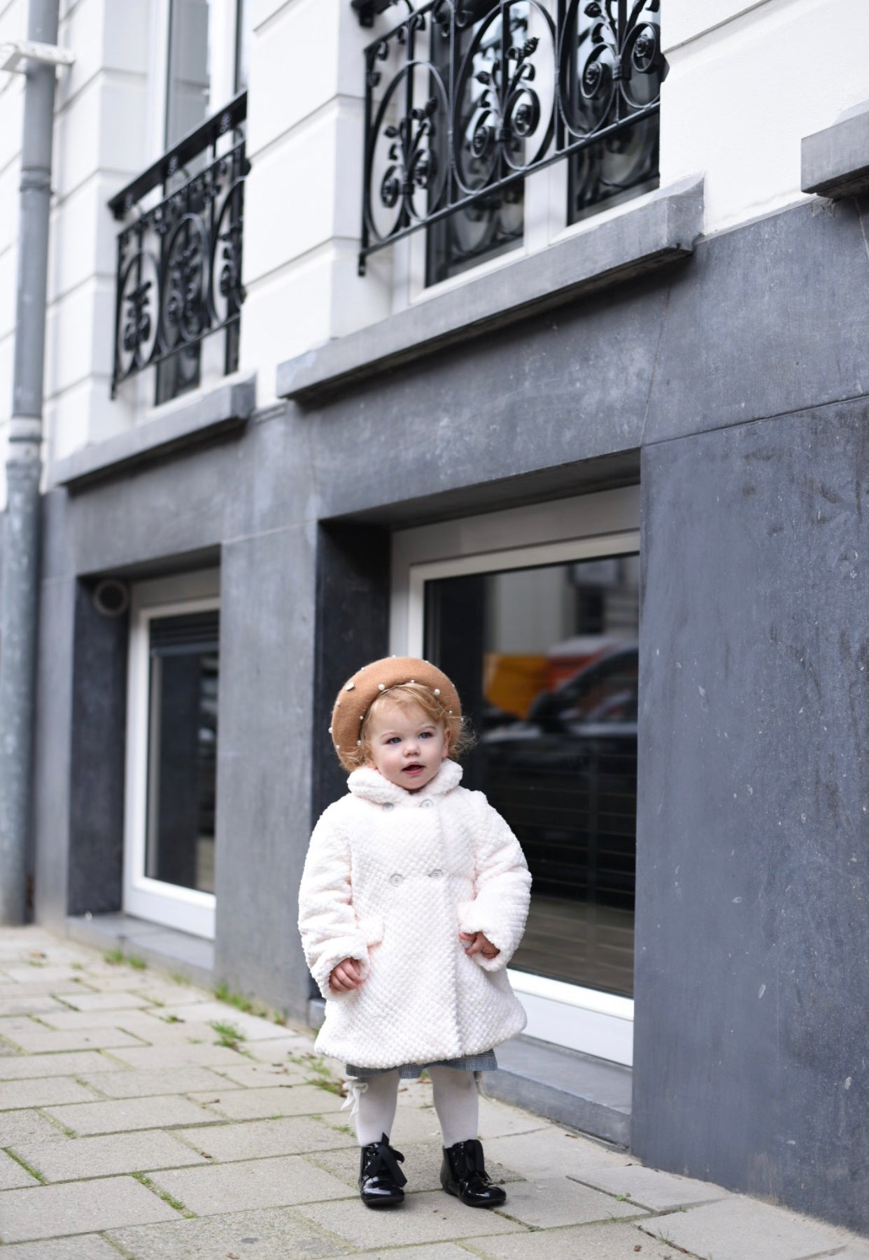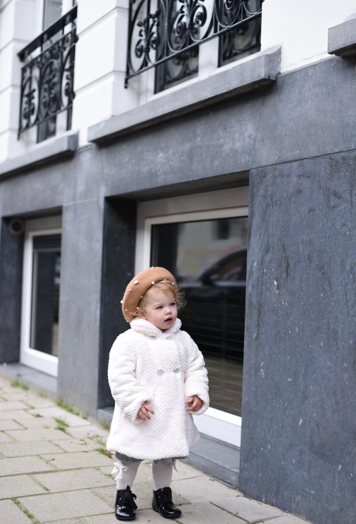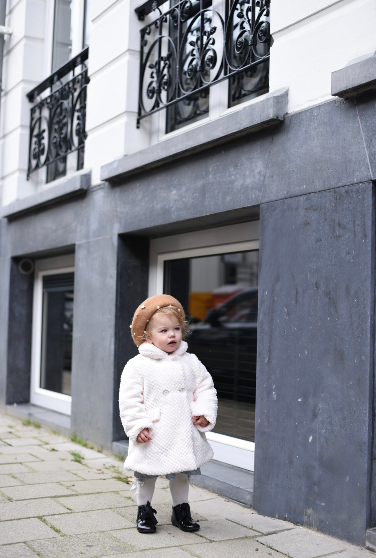 MIRANDA Beautiful Ivory Synthetic fur baby girl coat and bonnet set