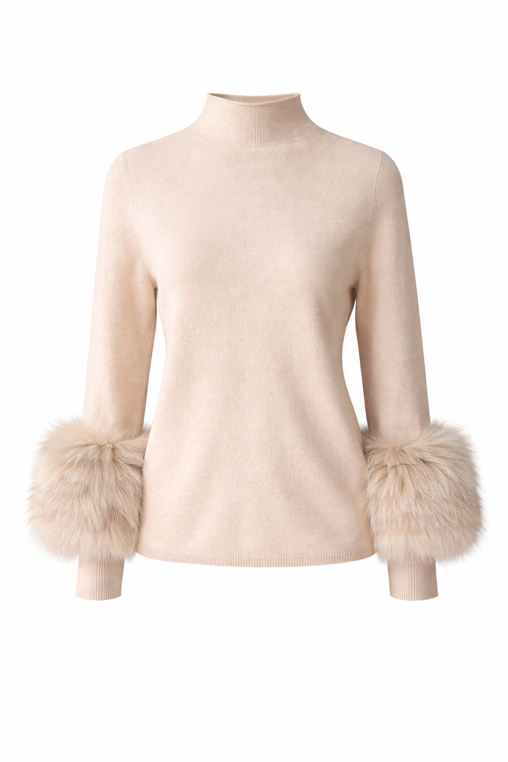 Beautiful Wool Jumper with fur trim sleeves in Oatmeal