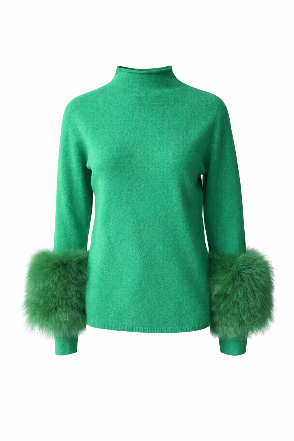 Beautiful Wool Jumper with fur trim sleeves in Deep green