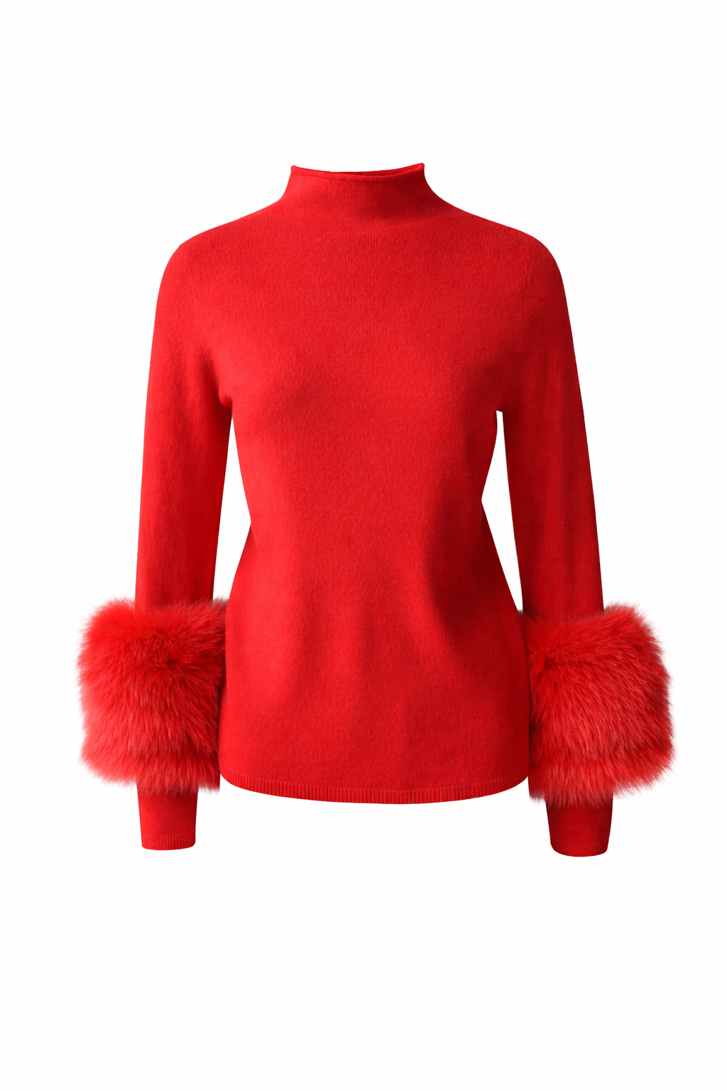 Beautiful Wool Jumper with fur trim sleeves in Red.
