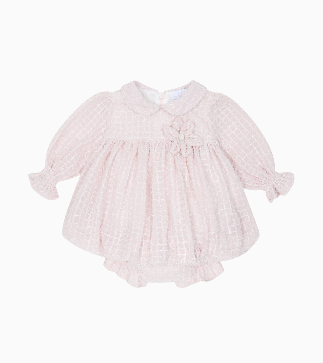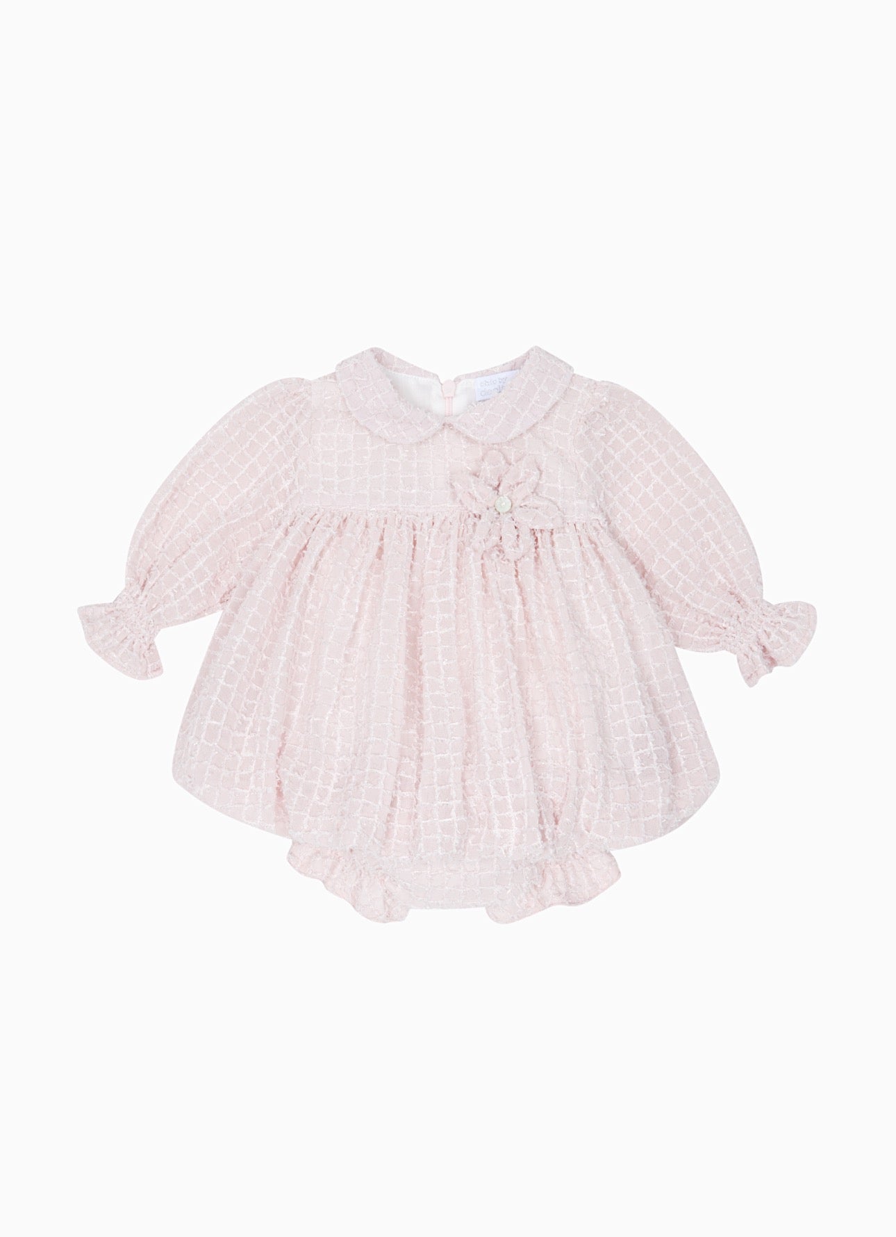 Beautiful Pink Puff Dress/Bloomers set with Flower details