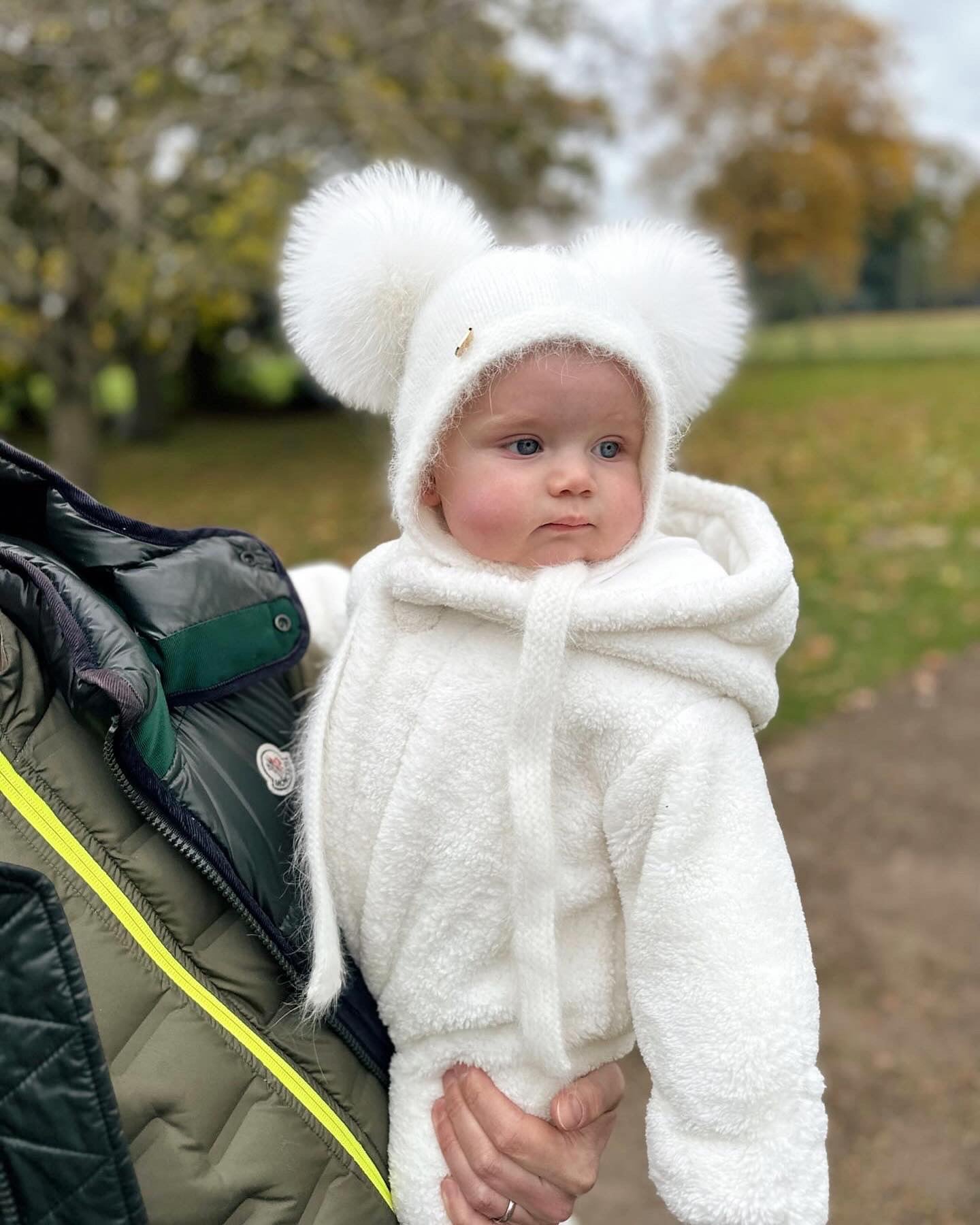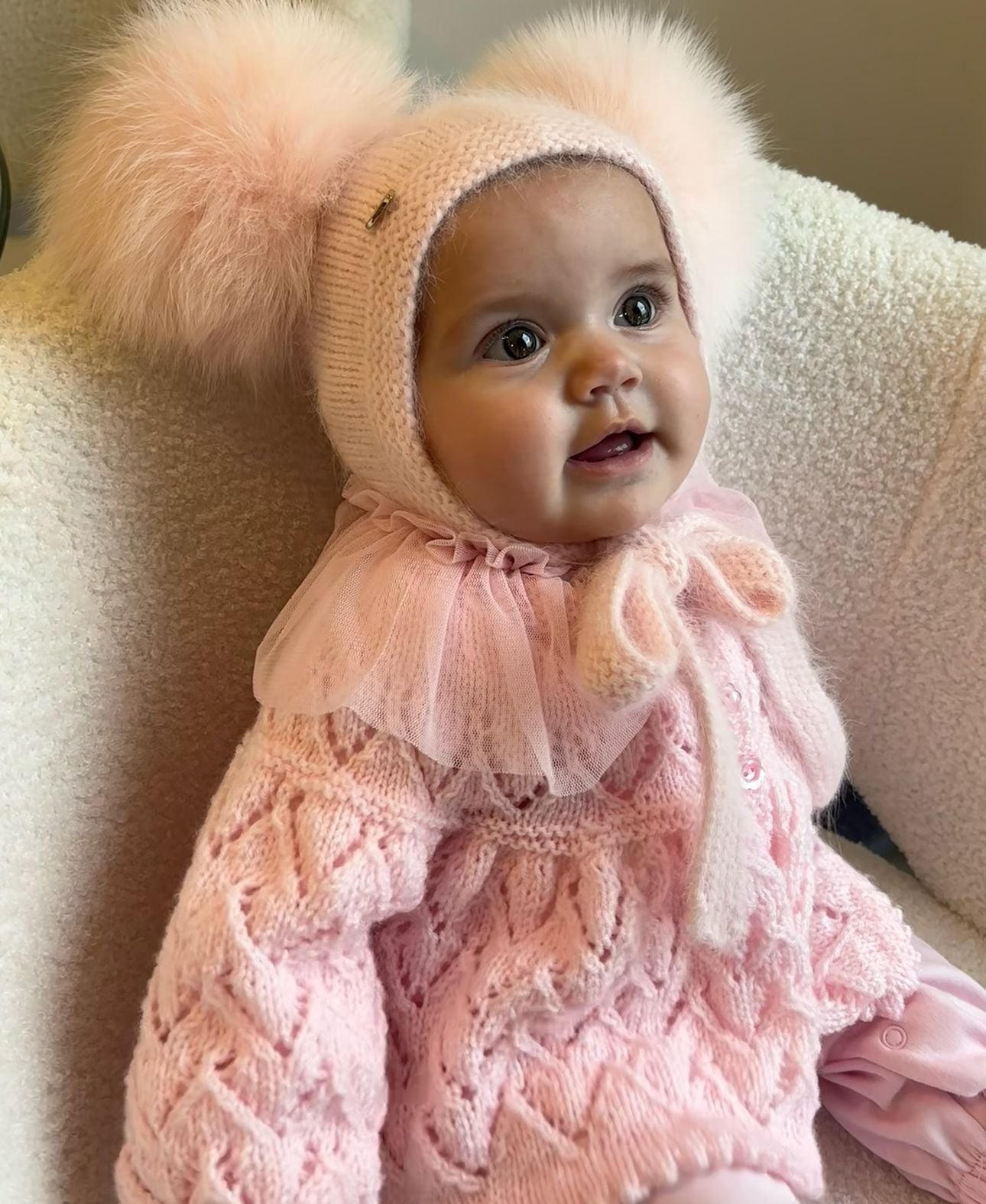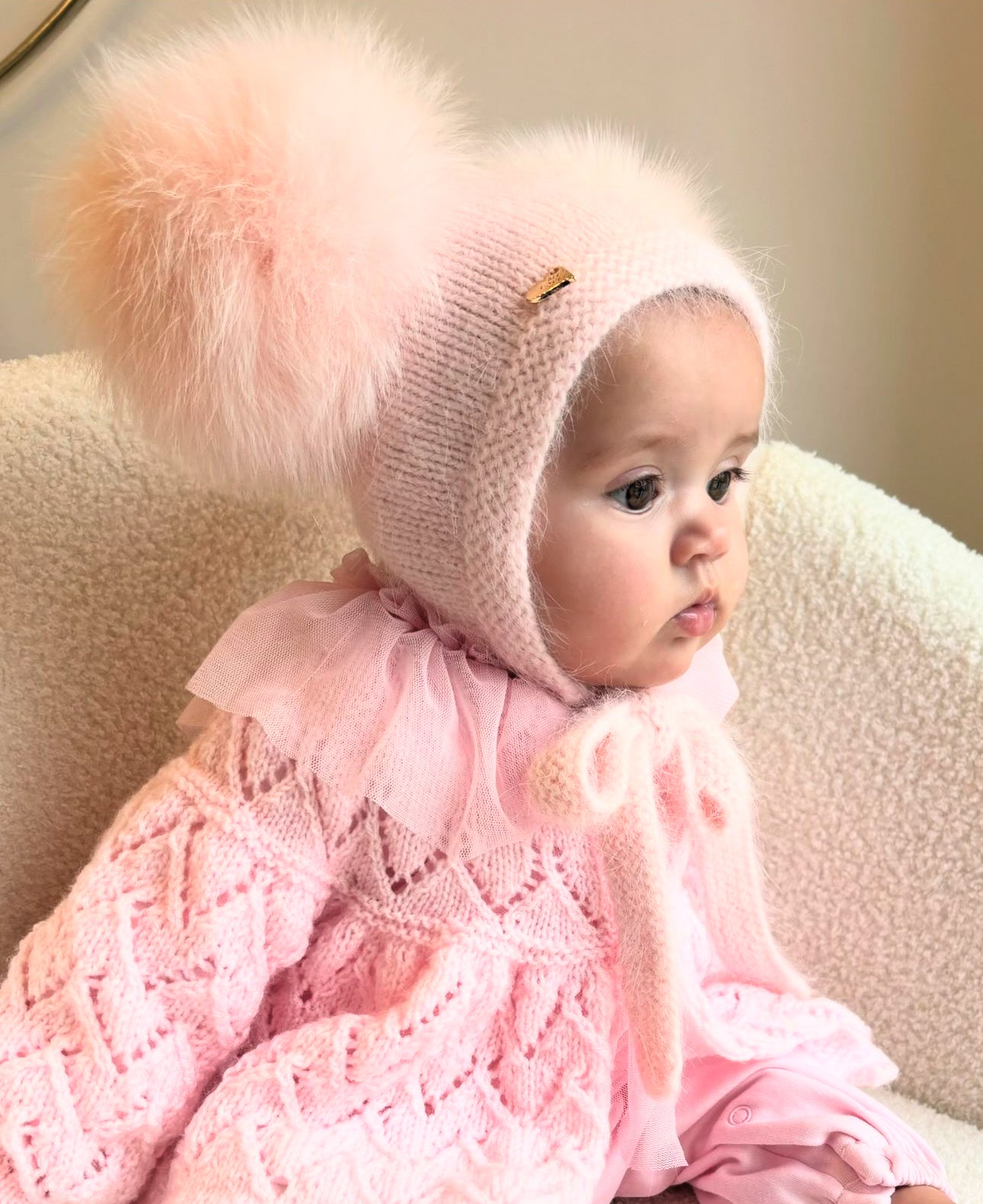 Matching knitted pompom booties (Sold Separately)also available on the website.