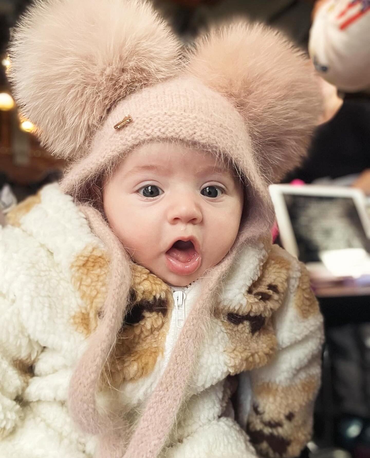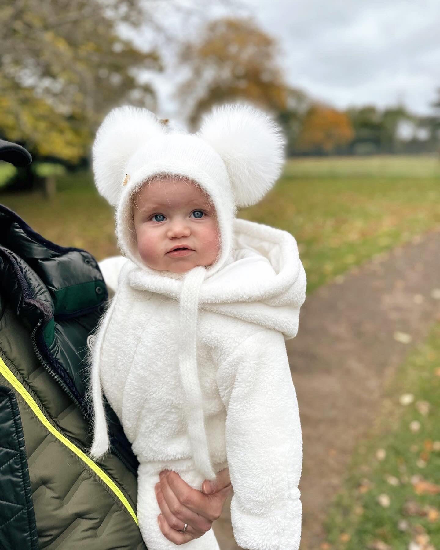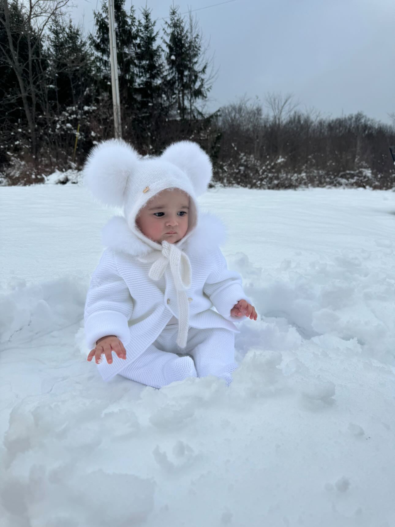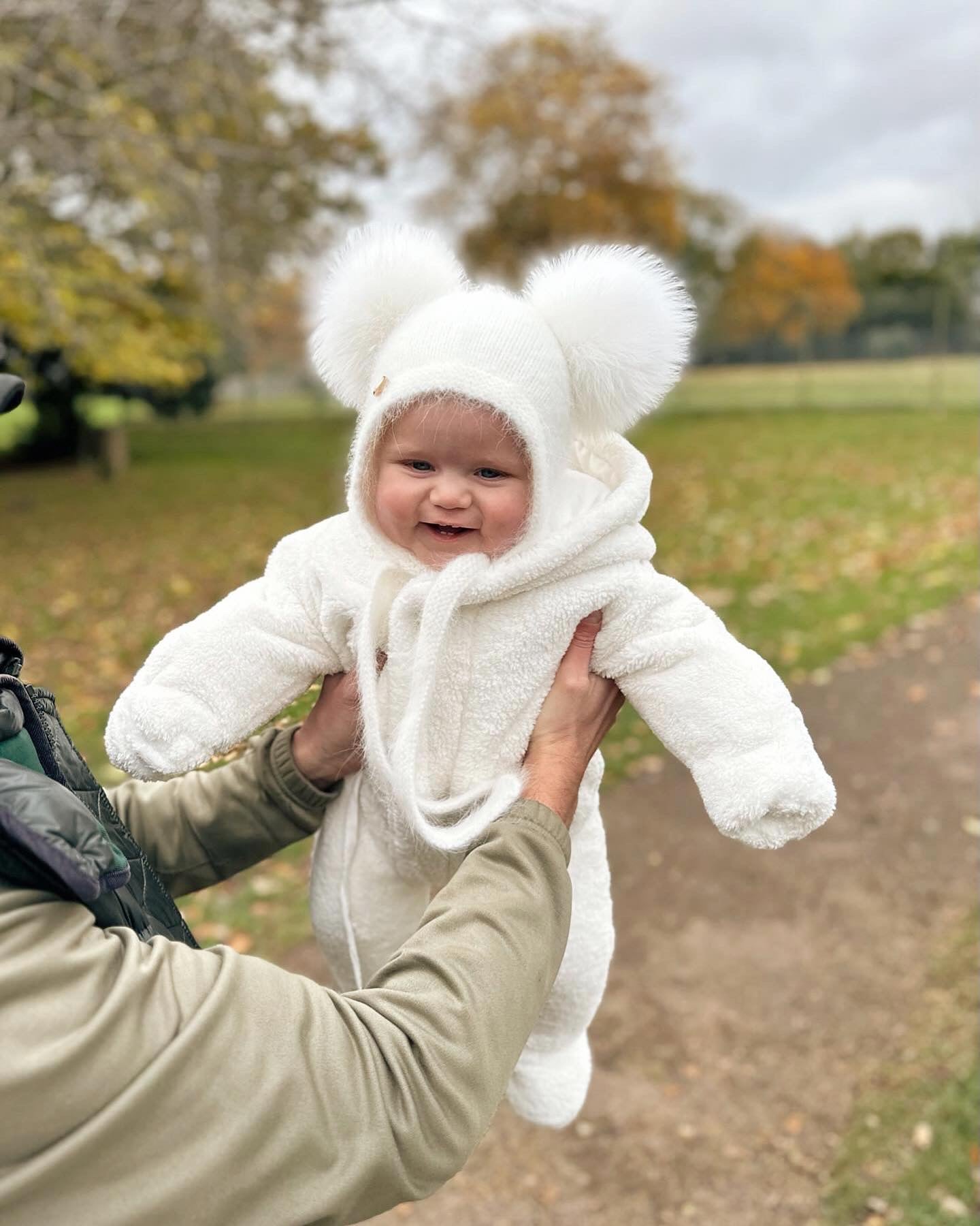 Matching knitted pompom booties (Sold Separately)also available on the website.