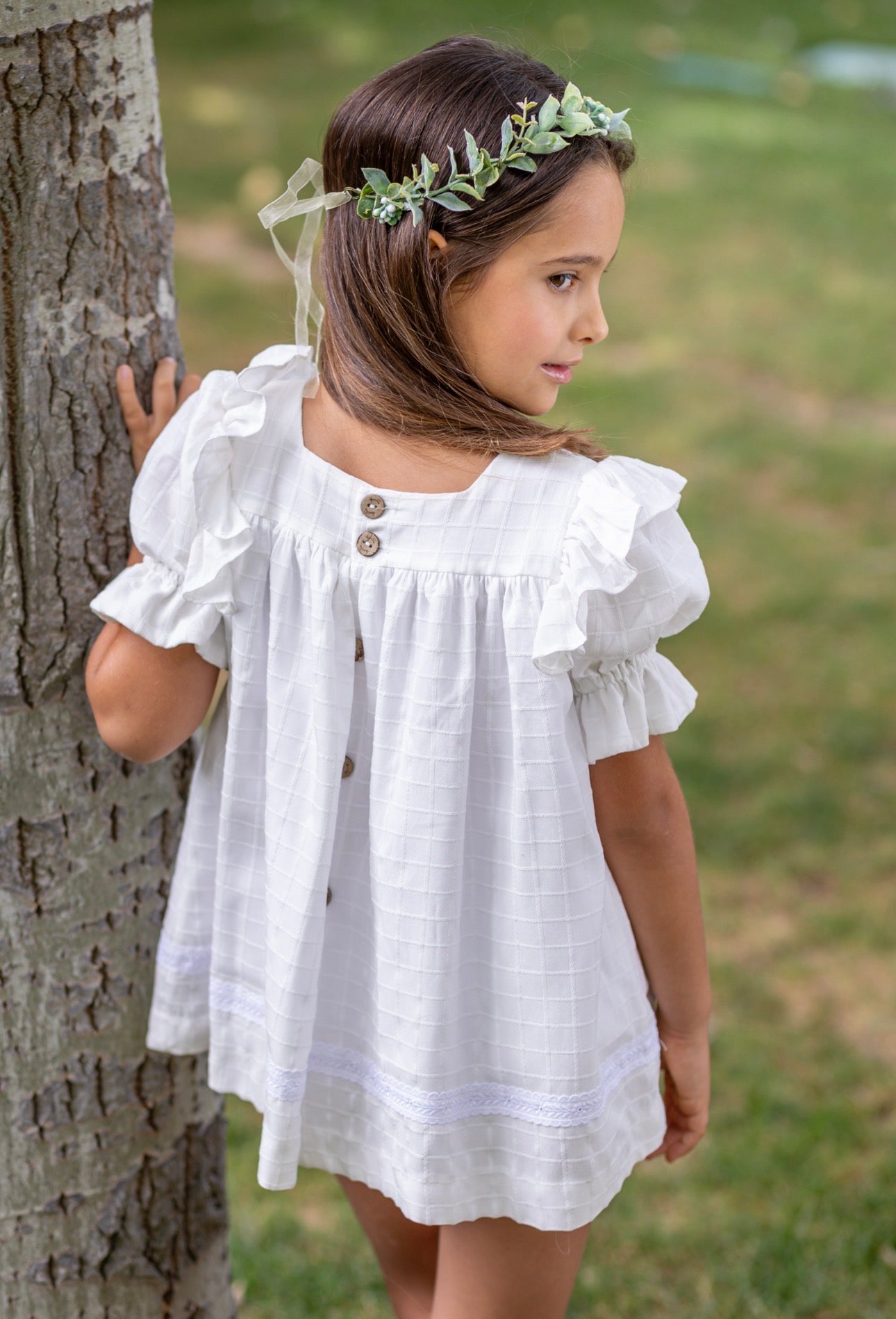 PRE ORDER(delivery in 10 days)MI LOVES SIGNATURE White Dress with Beautiful frill details.