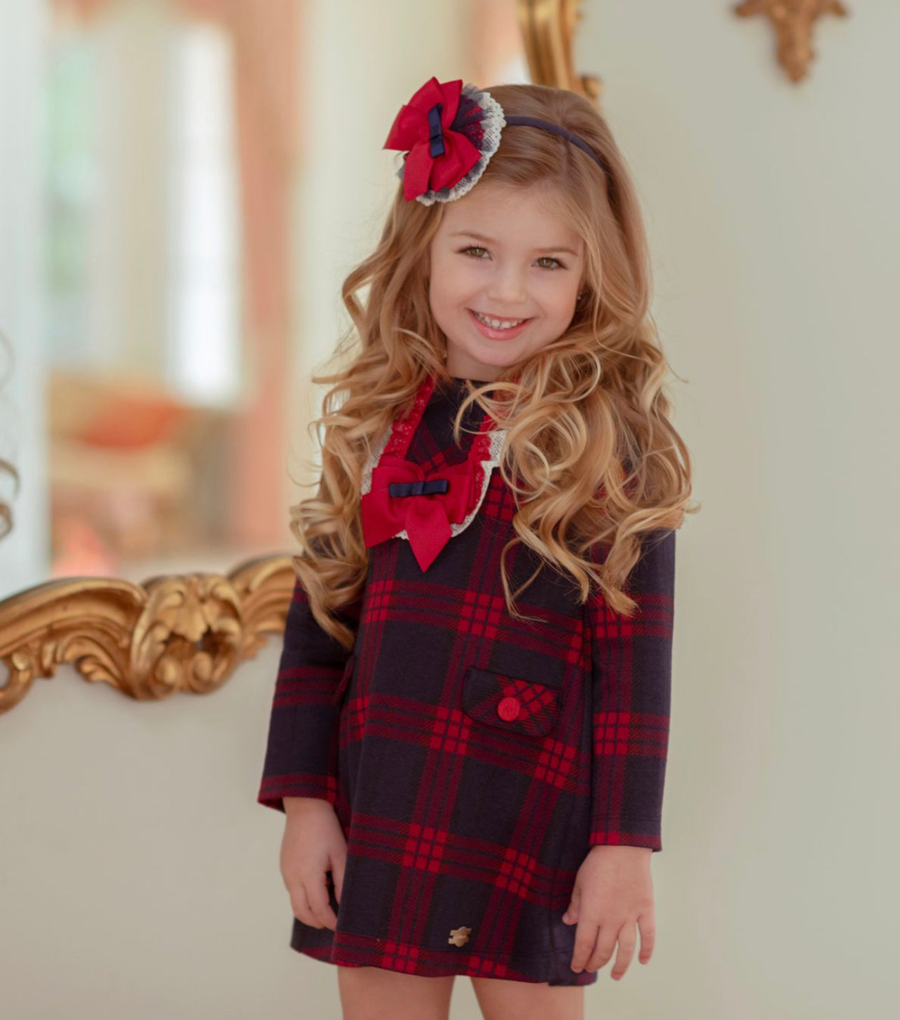 MI LOVES Beautiful Navy/Red Tartan Baby Girl dress with frill details.