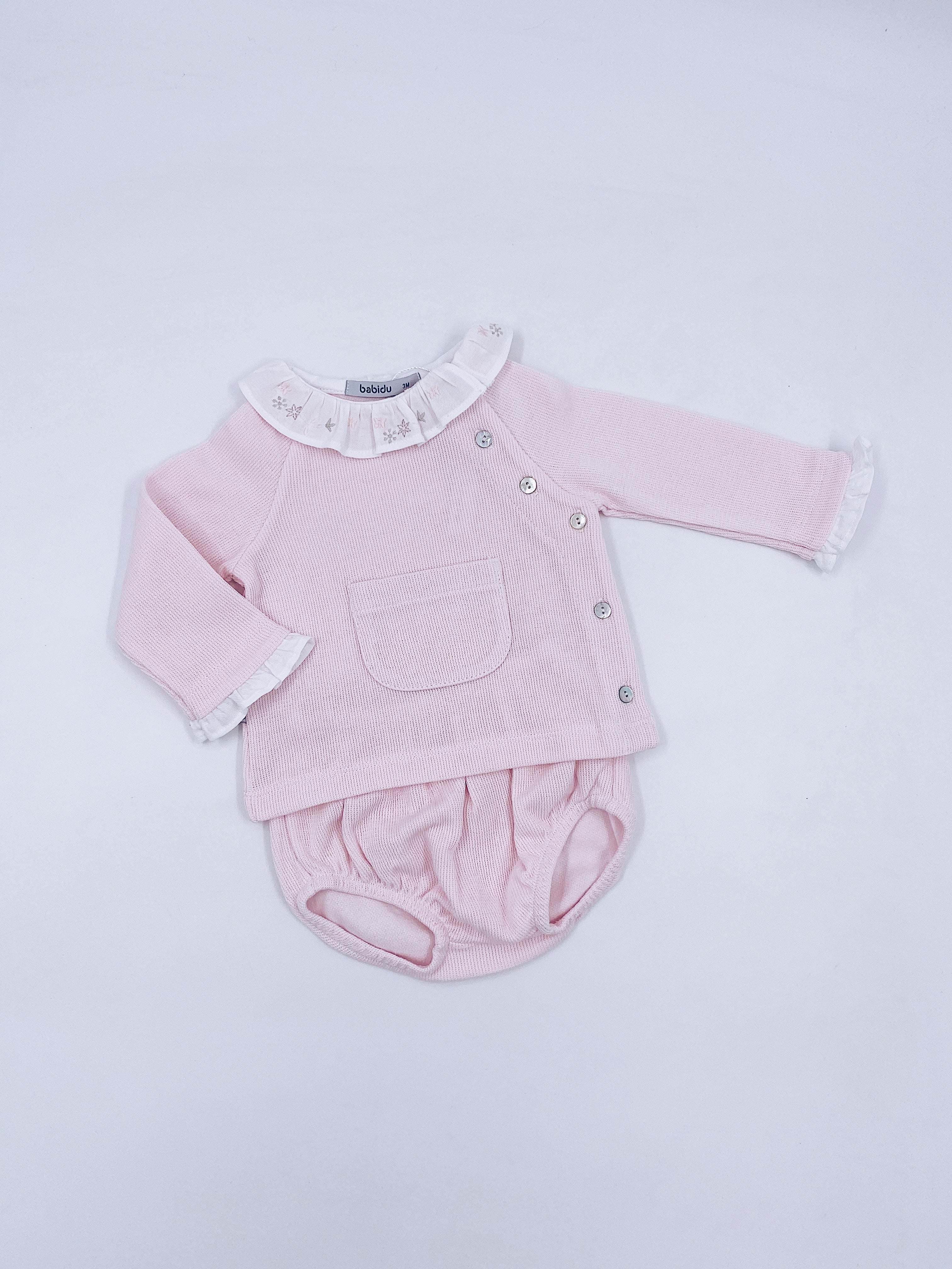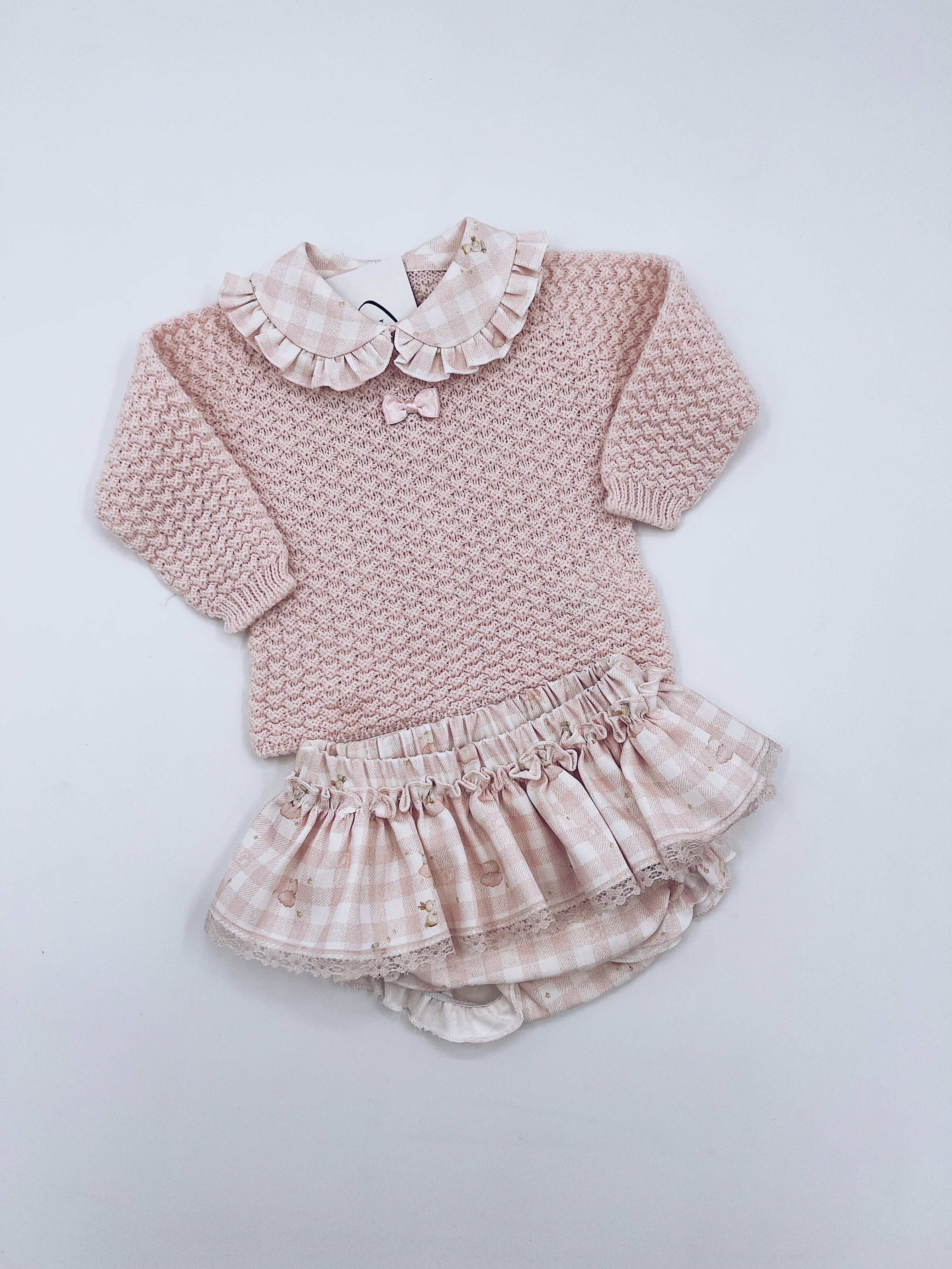 Beautiful Pink Knitted top and bloomers 2 piece set.