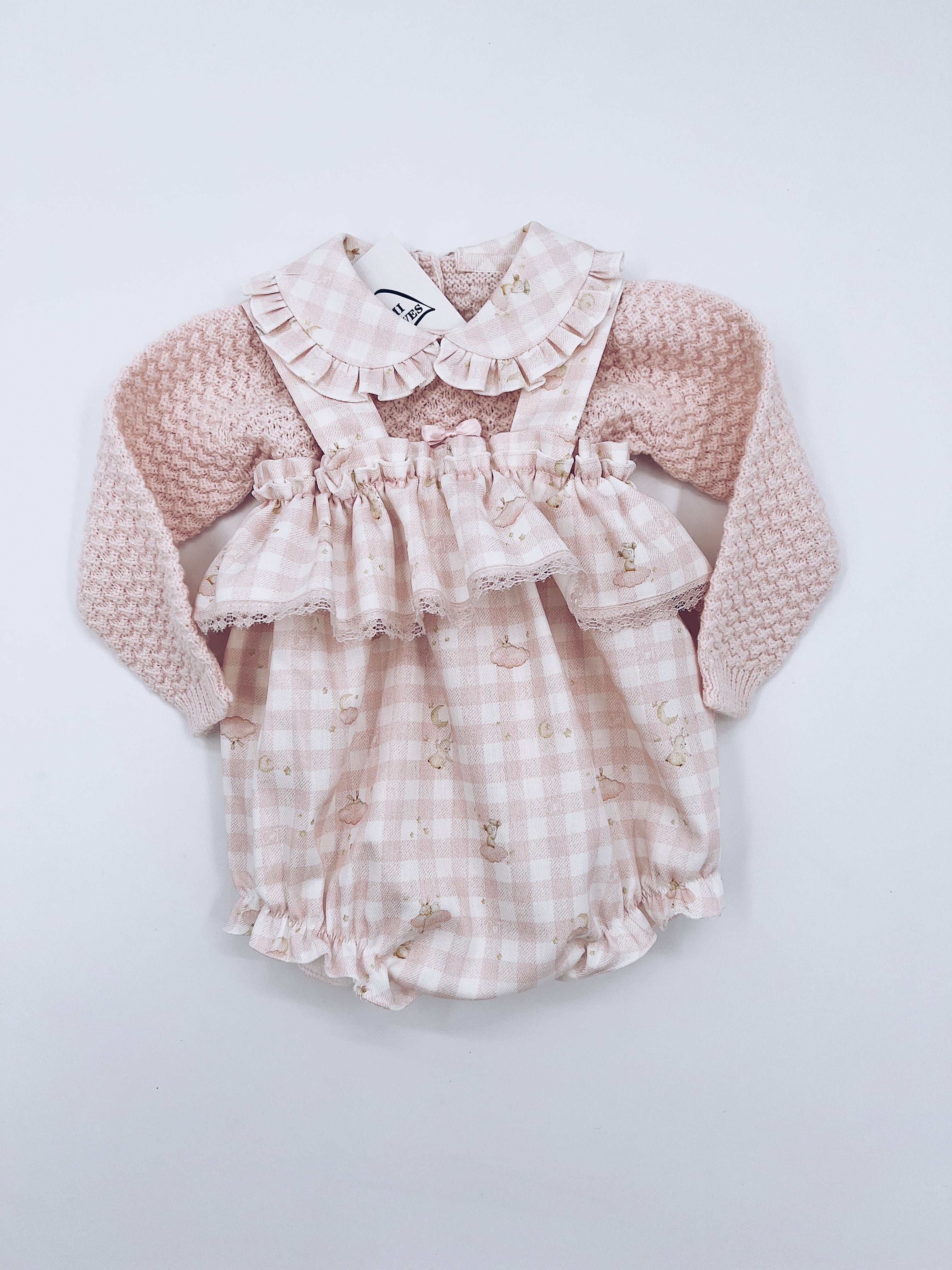 Pink MI LOVES SIGNATURE Knitted BUNNY Pramsuit.