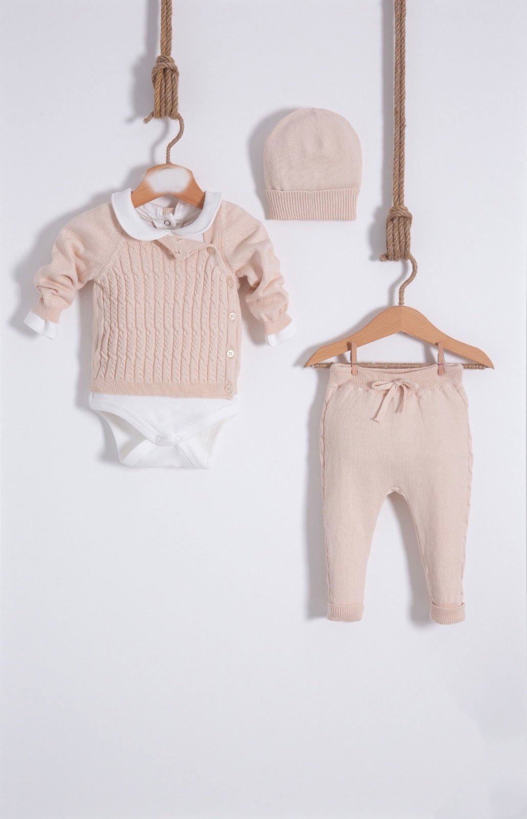 Beautiful Cream Knitted Baby 4 piece set(Jumper/Trousers/Hat/Bodysuit)