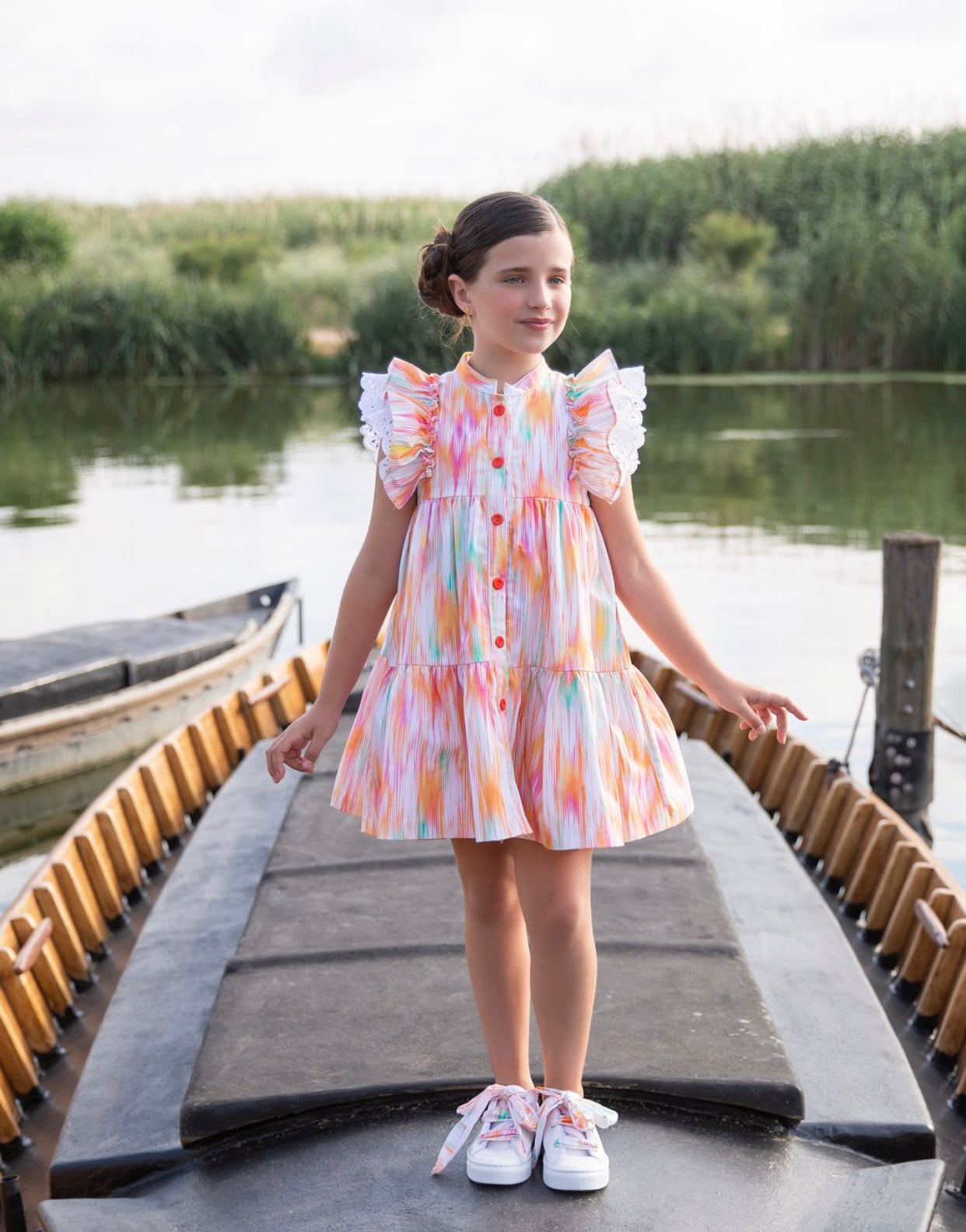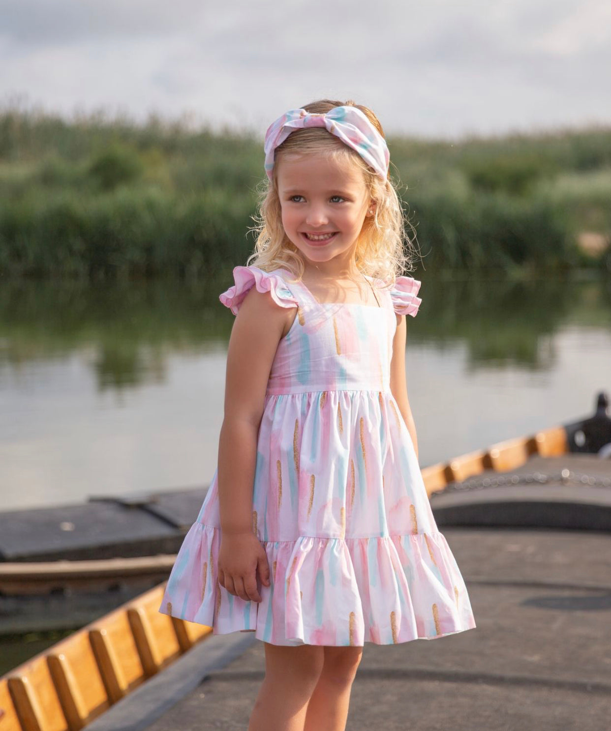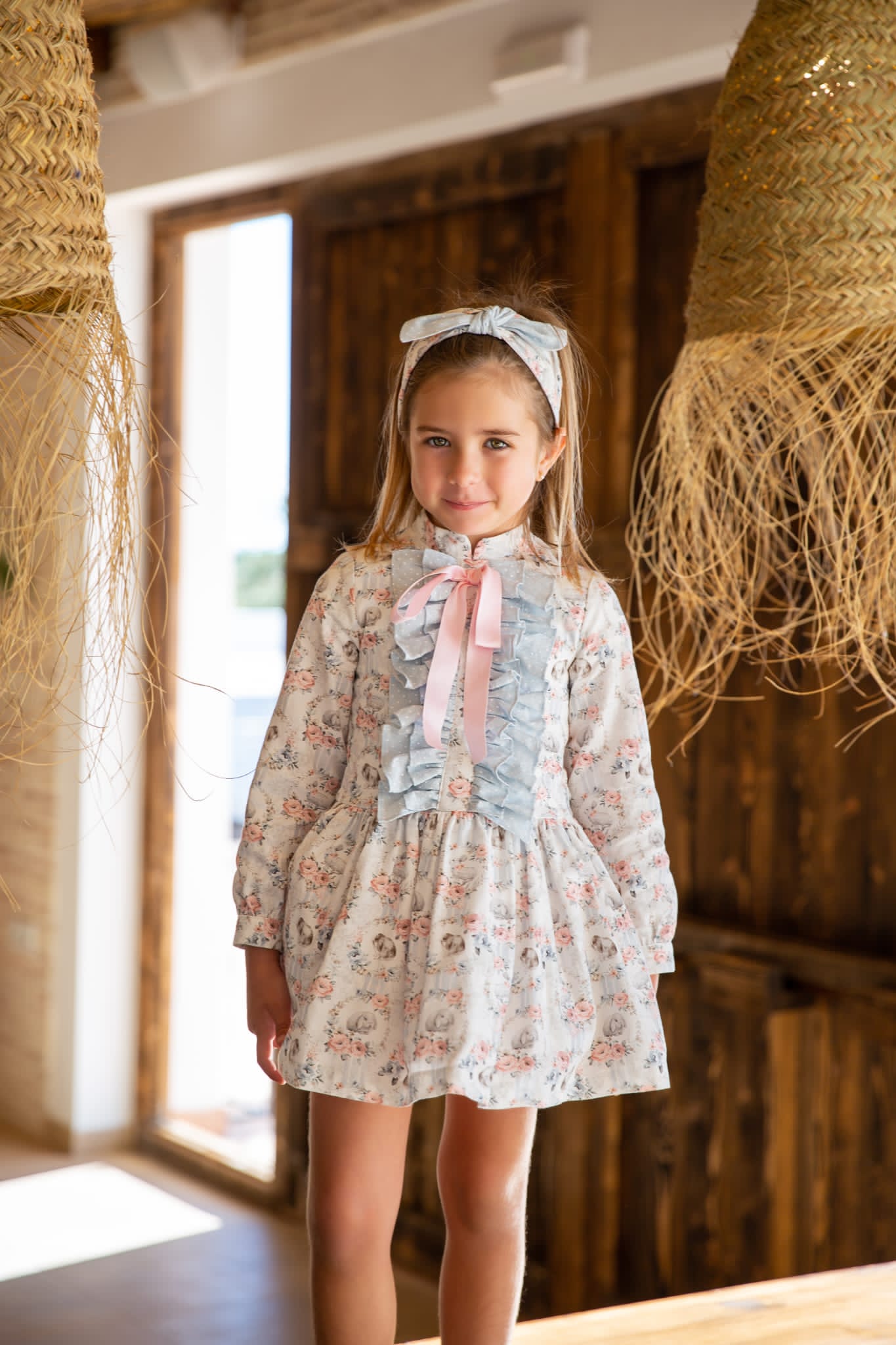 Beautiful Bunny Print Dress with Frill and Bow Details.