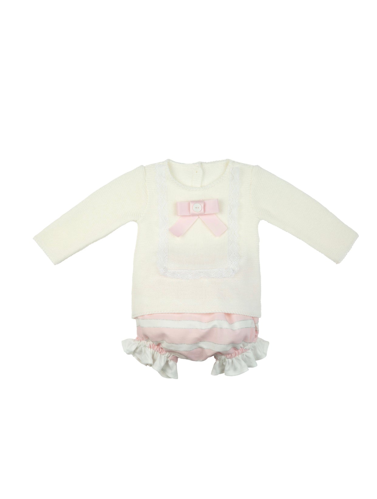Rochy Beautiful Ivory/Pink knitted top and shorts 2 piece set