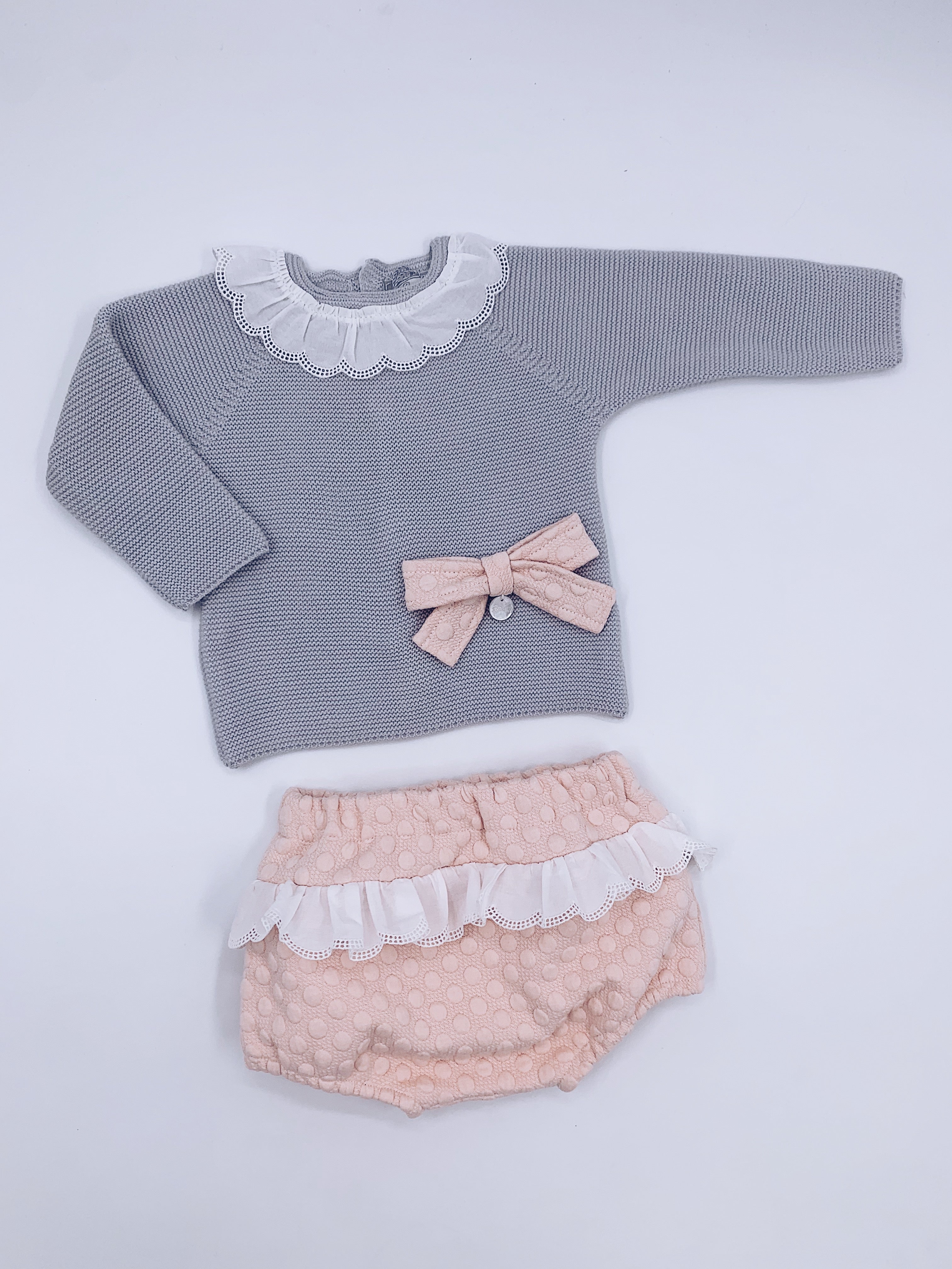 Beautiful Pink Bloomers/White Blouse set with Bow details.