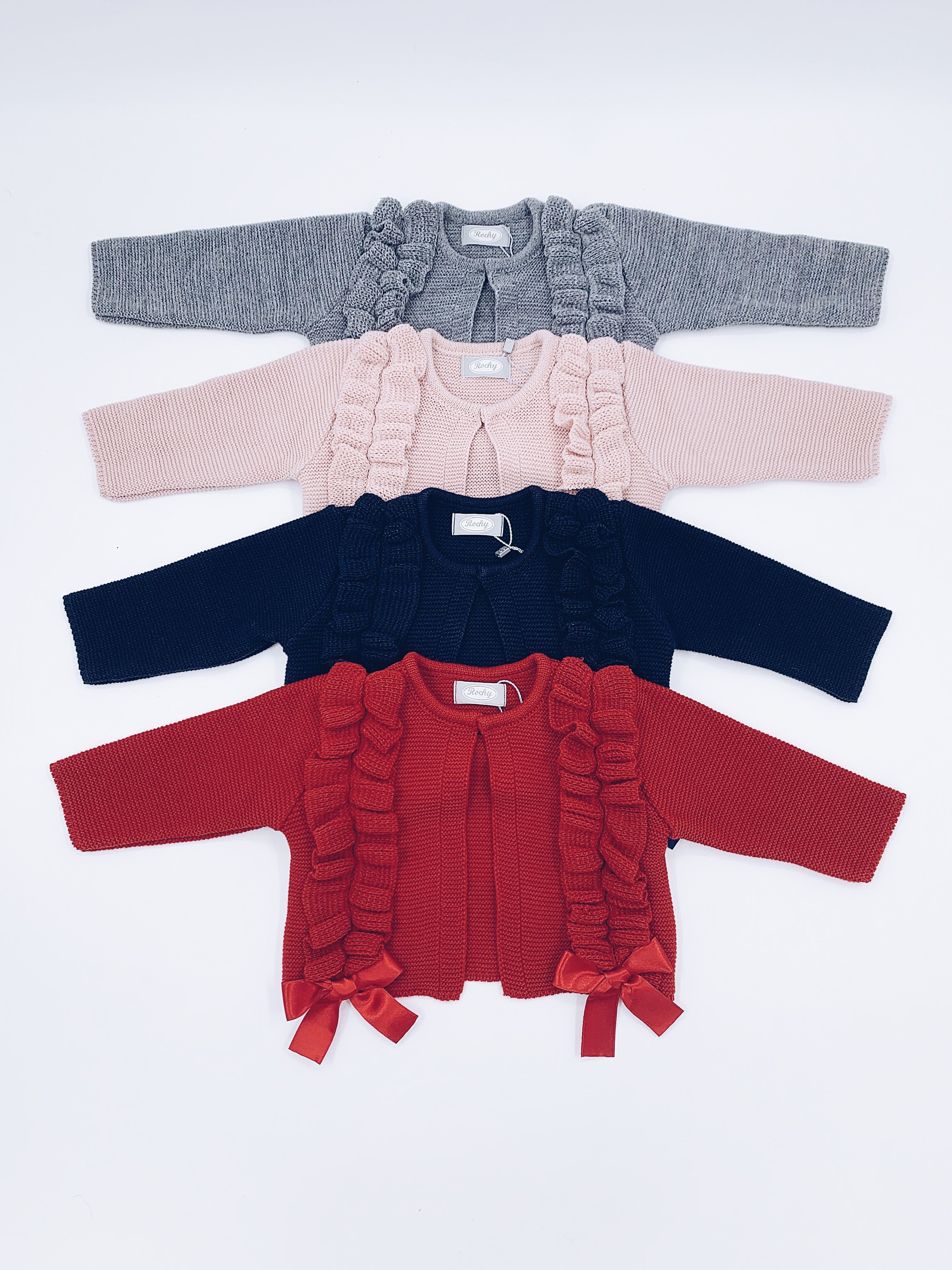 Beautiful Rochy knitted Cardigan with frills and Bow details(ALL COLOURS)