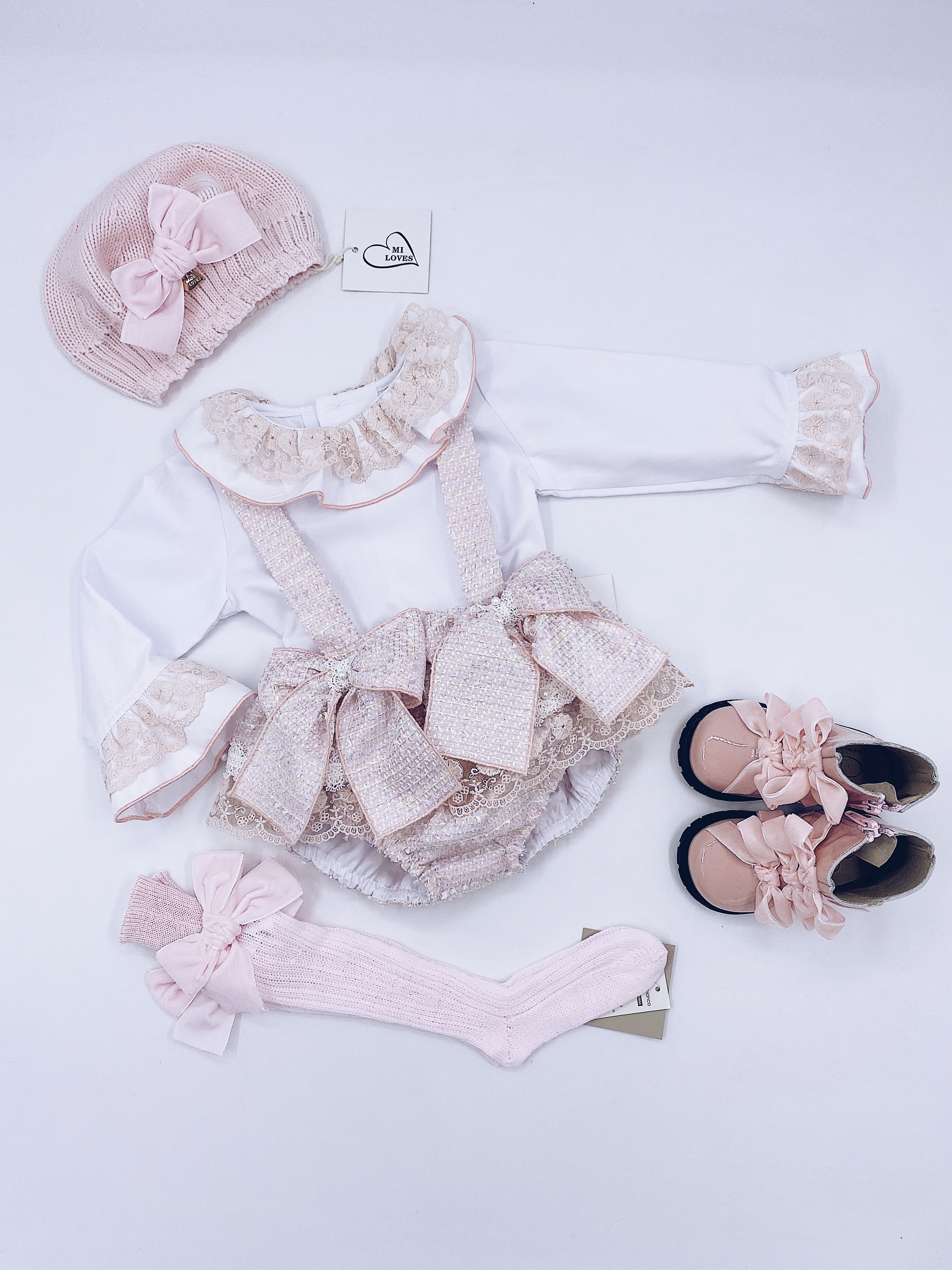 Beautiful knitted bunny romper and blouse 2 piece set