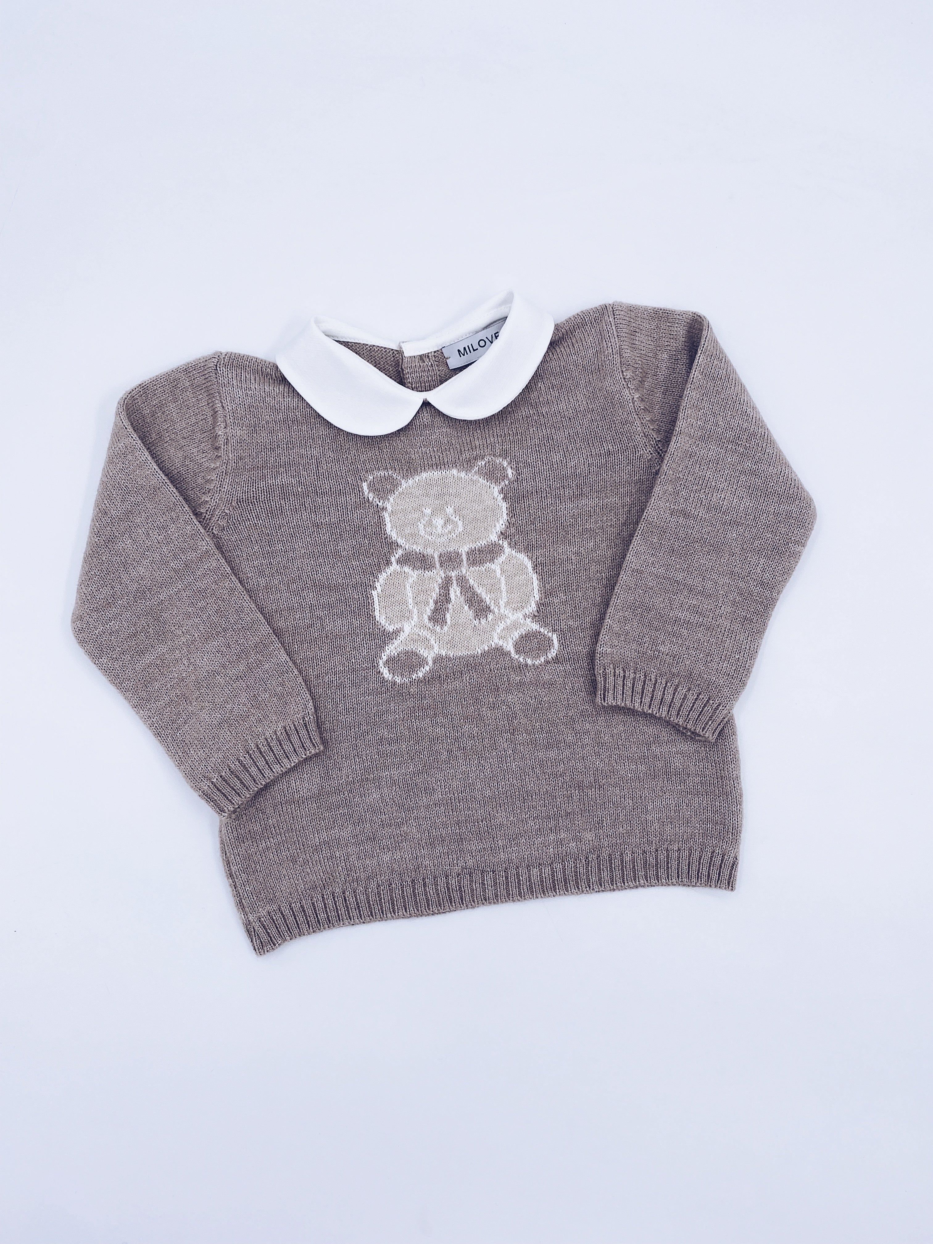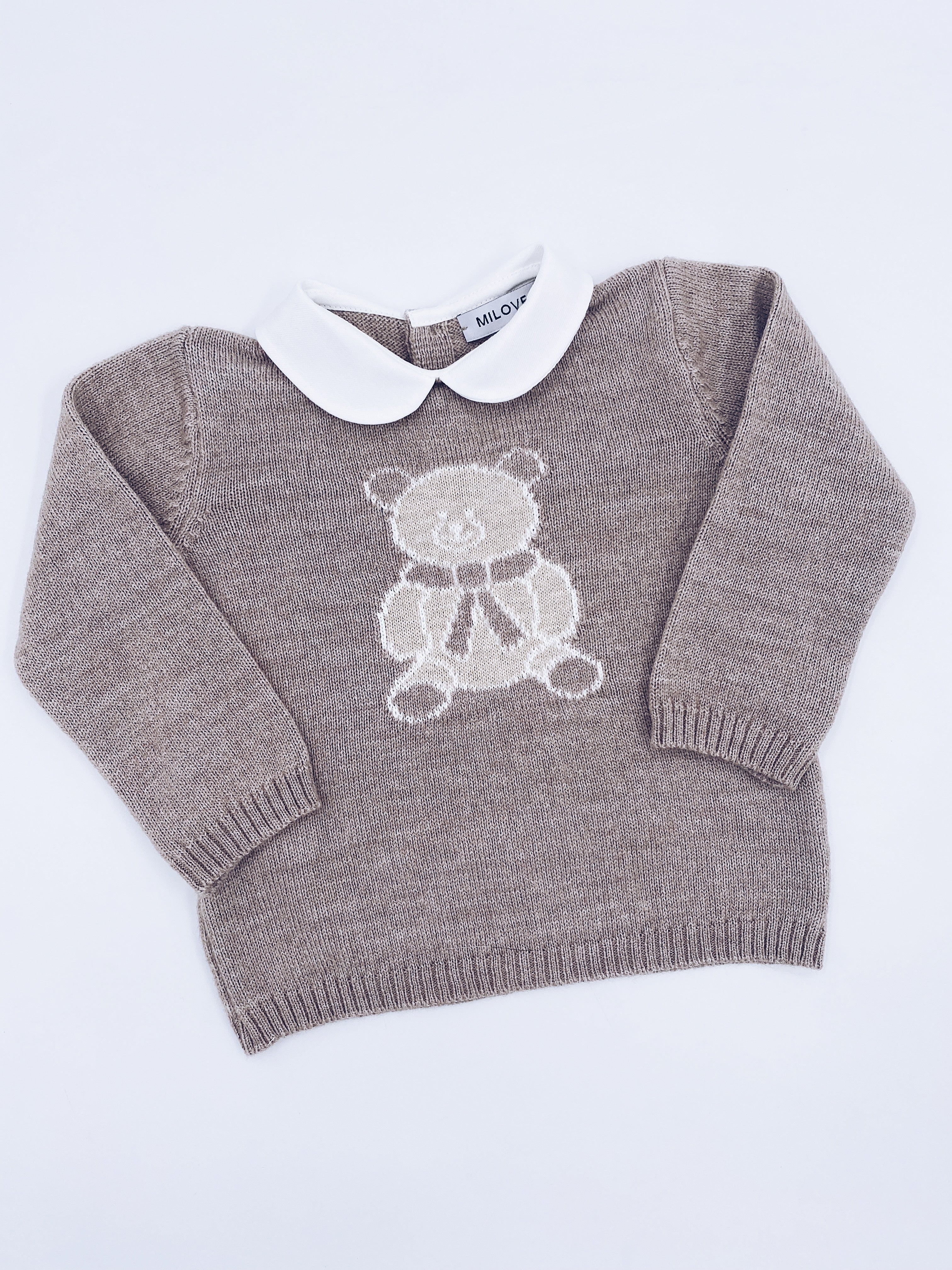Beautiful Knitted Bear Jumper with Peter Pan Collar