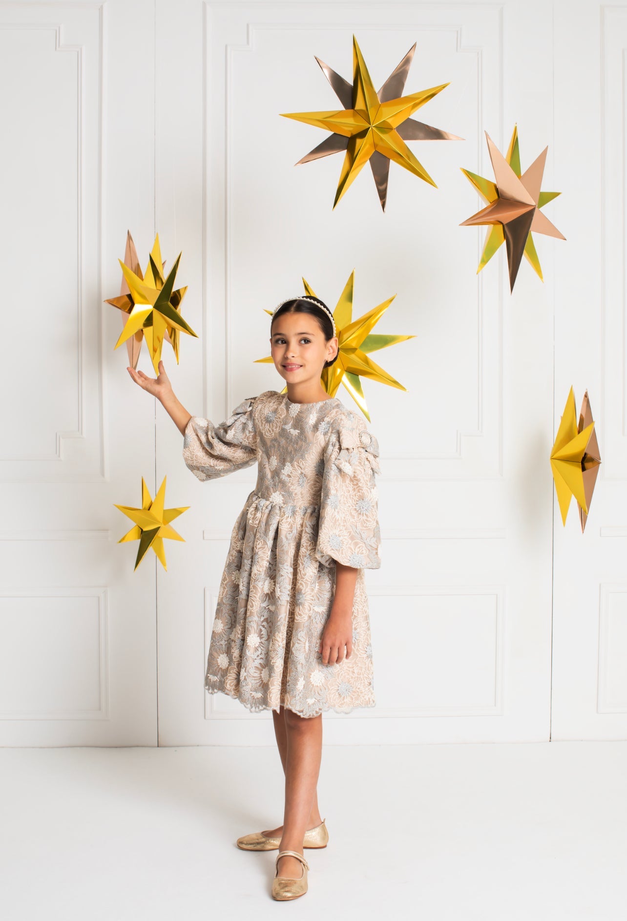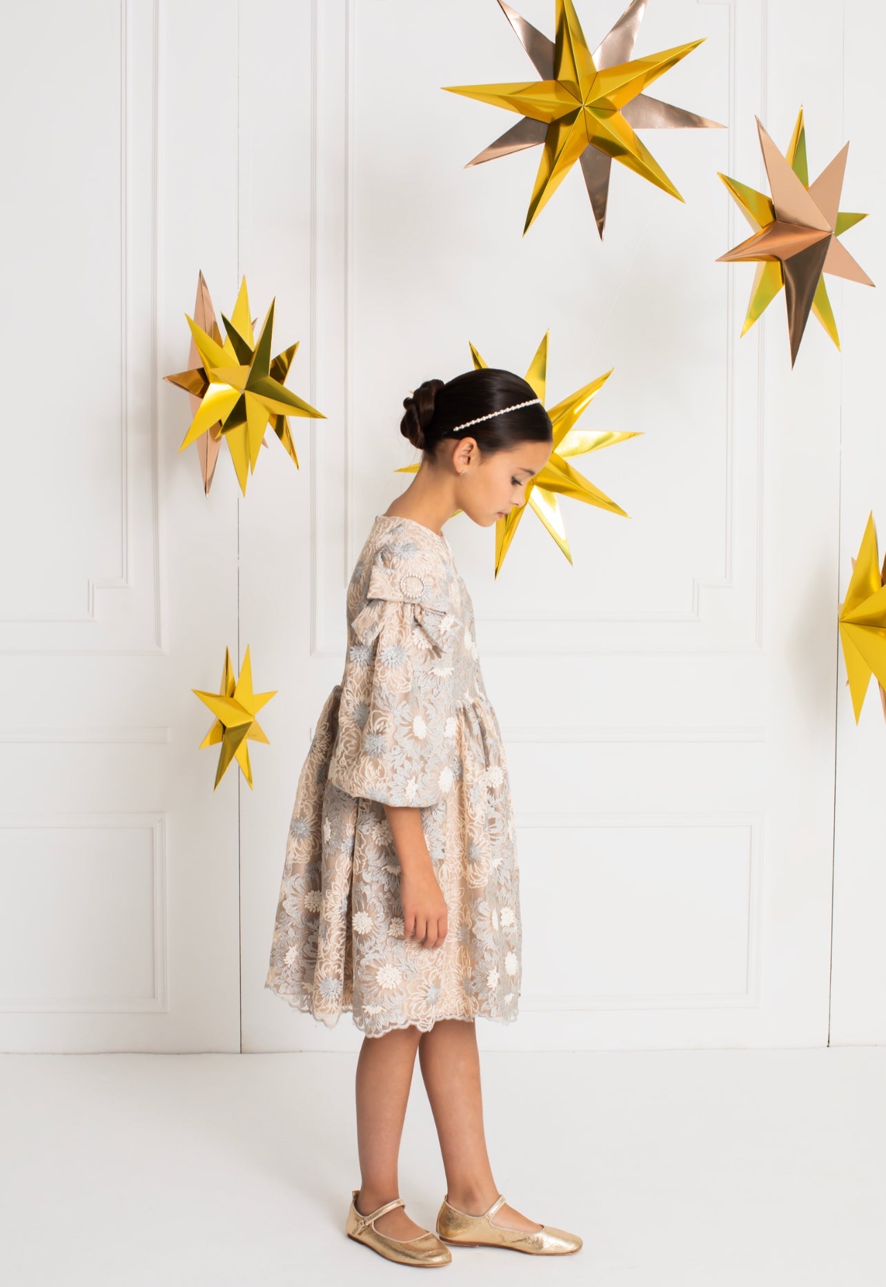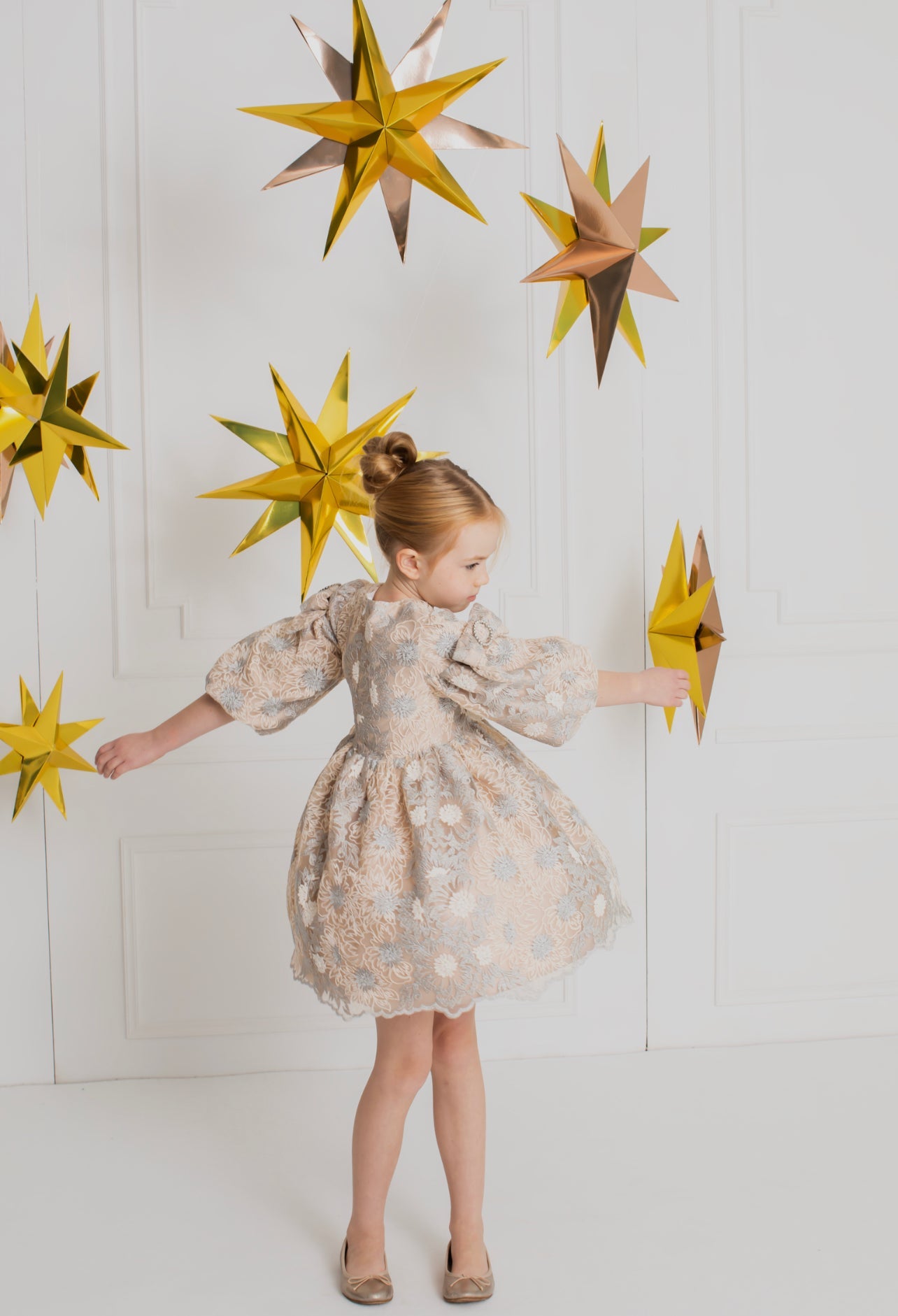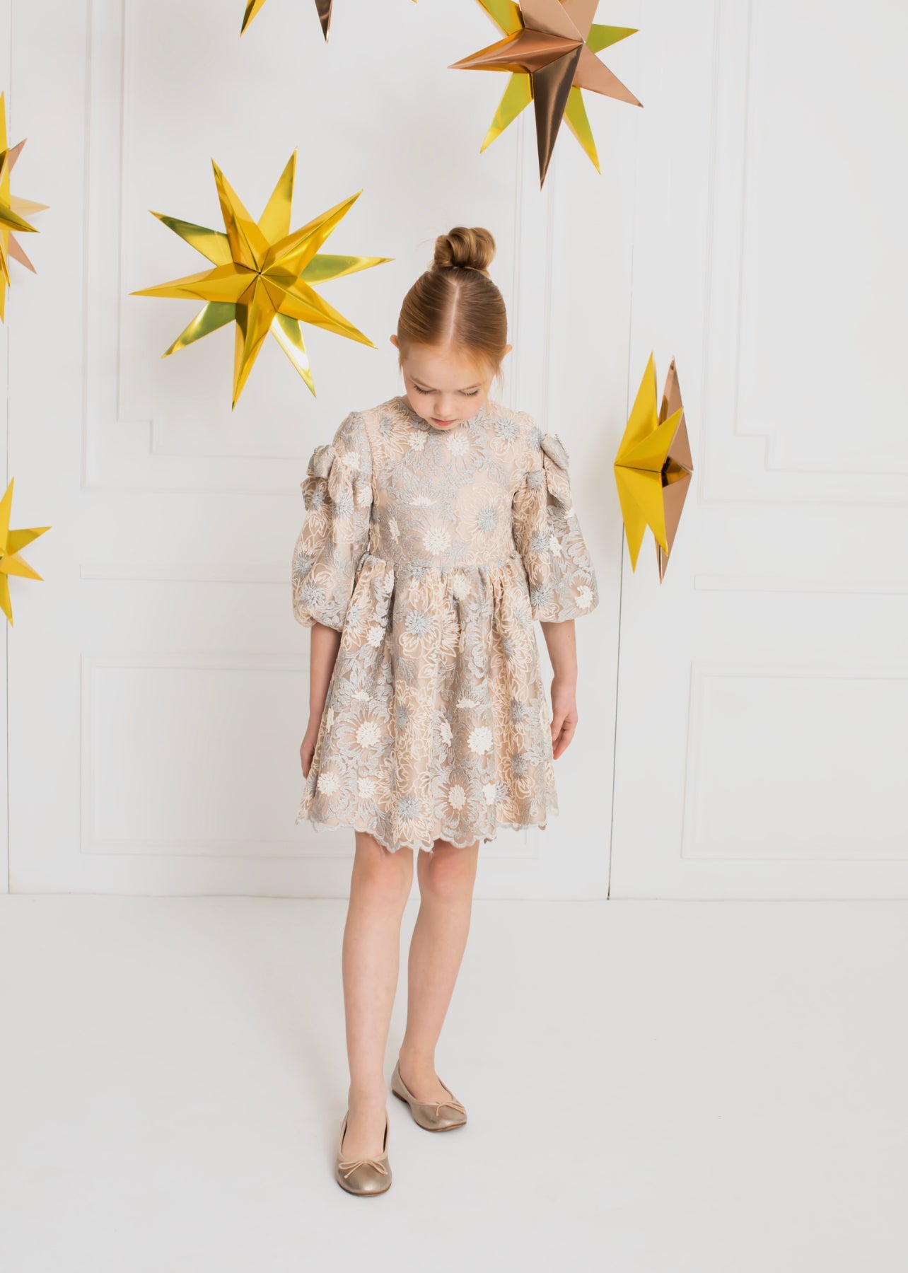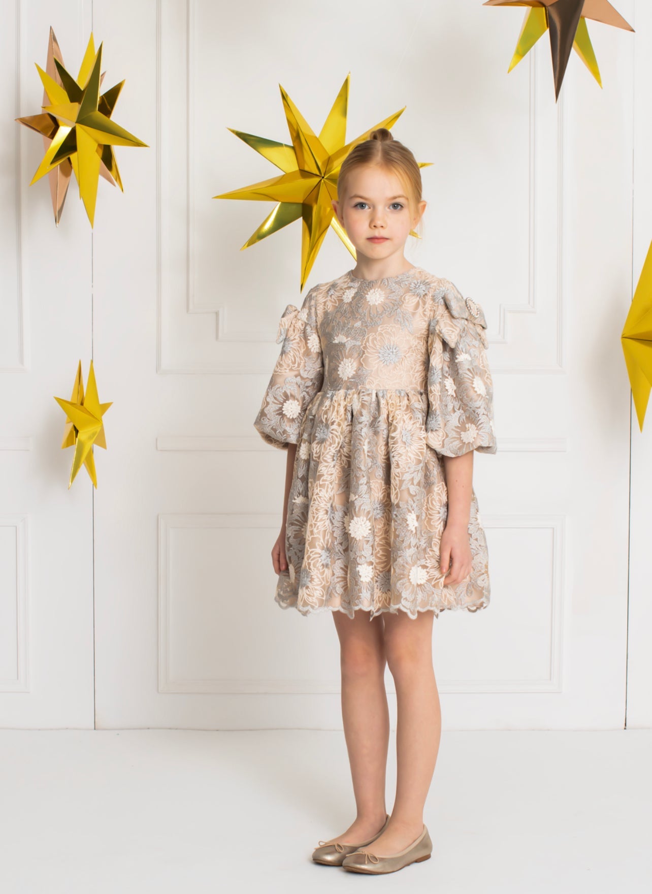 Beautiful Satin dress with delicate embroidered tulle details.Beautiful,Classic and Feminine design perfect for any special occasion.