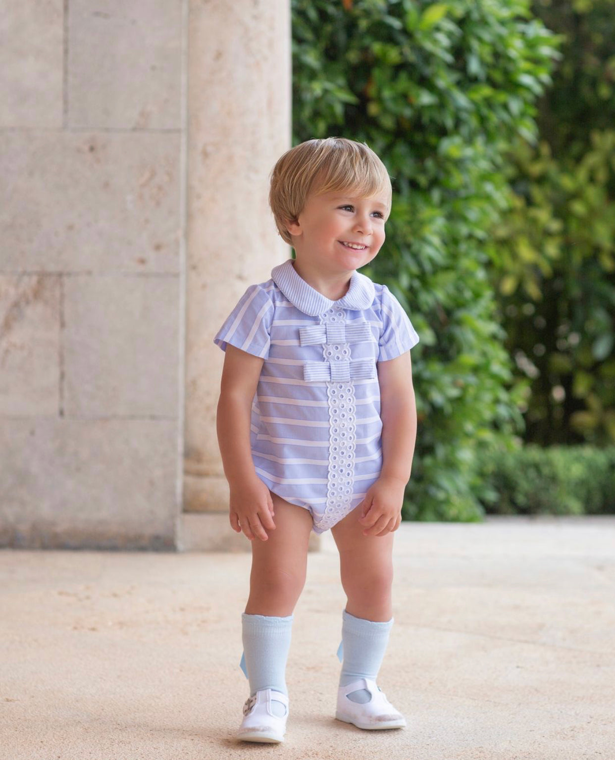 Blue Candy Stripe romper.