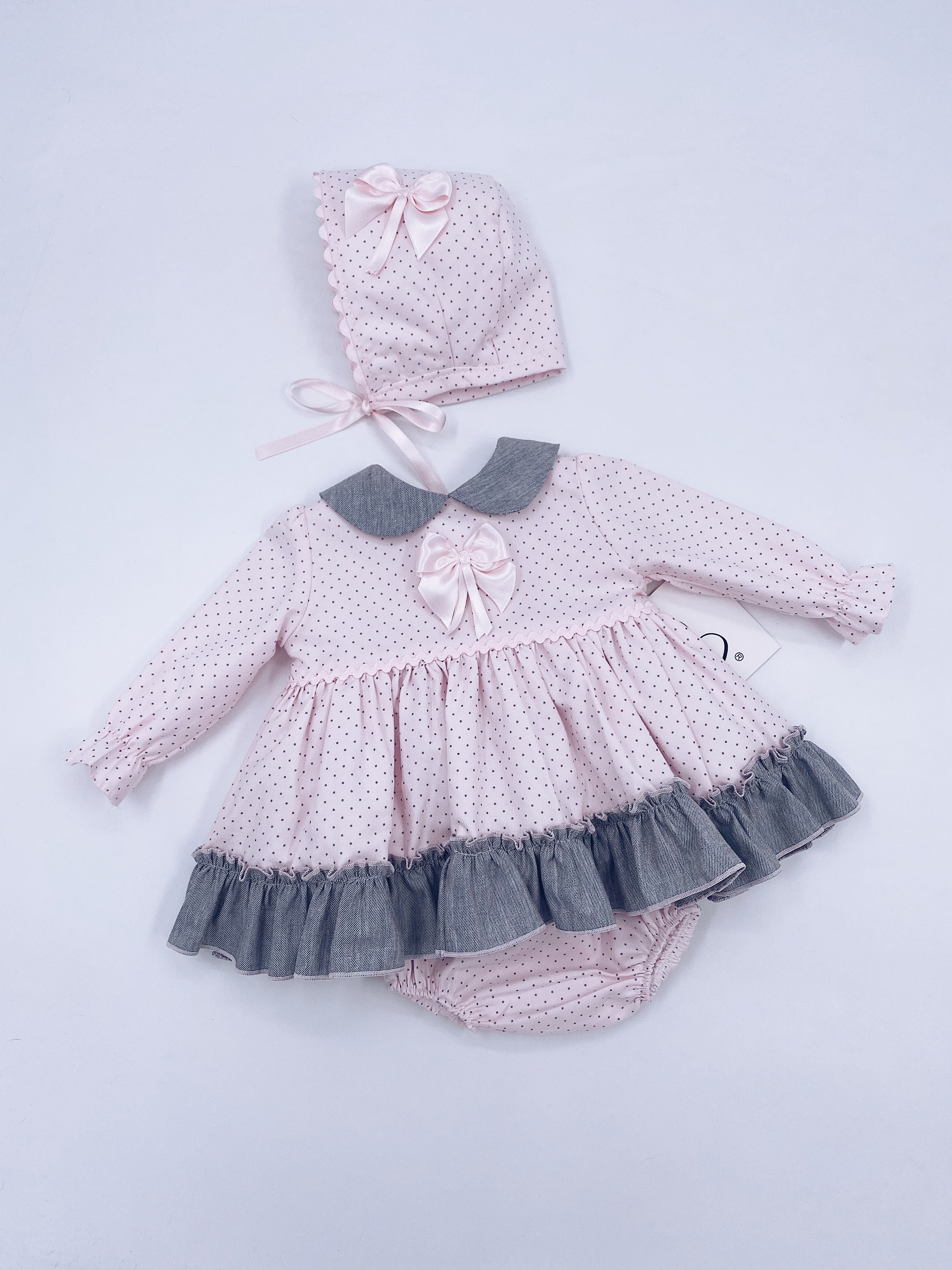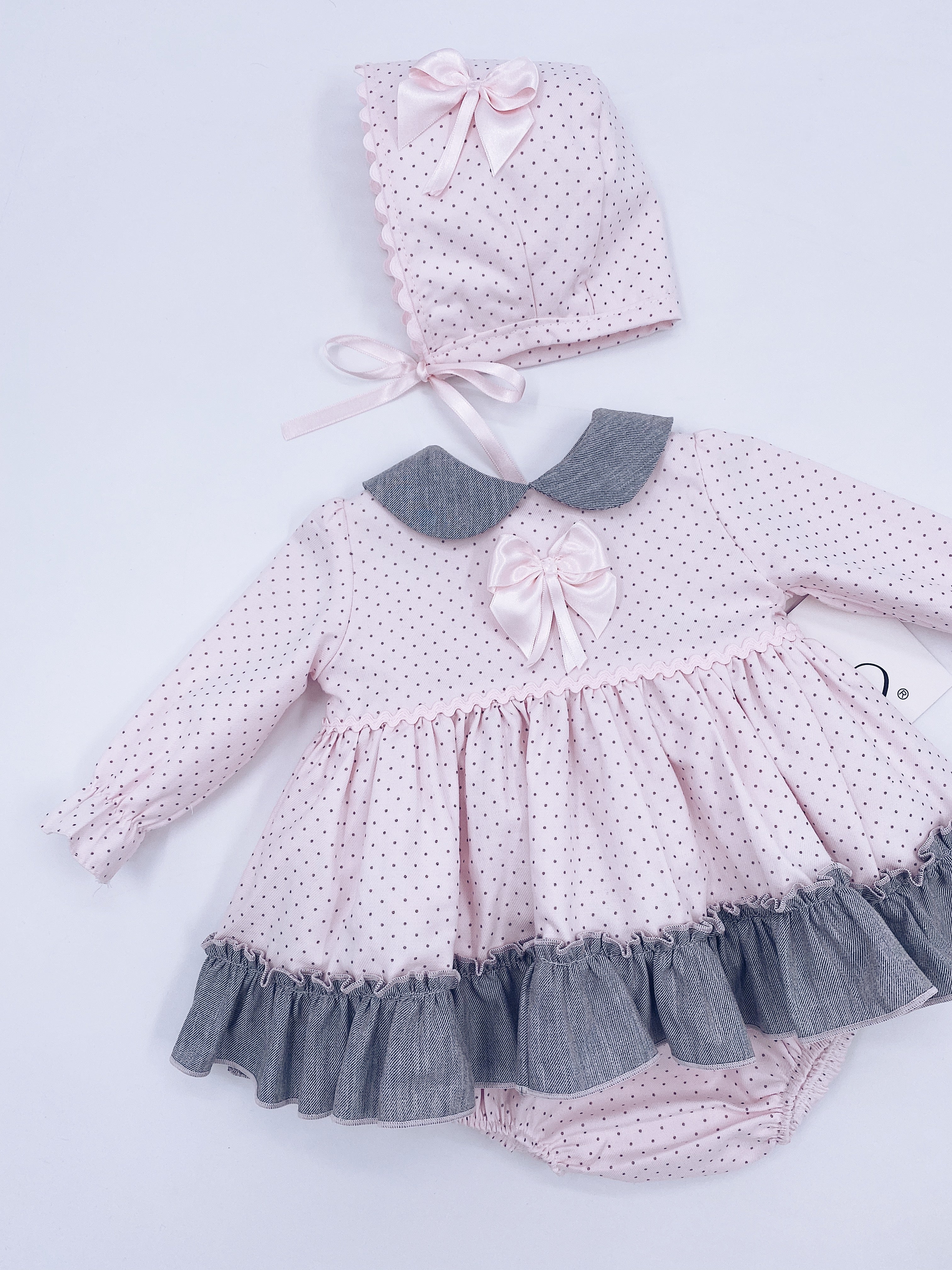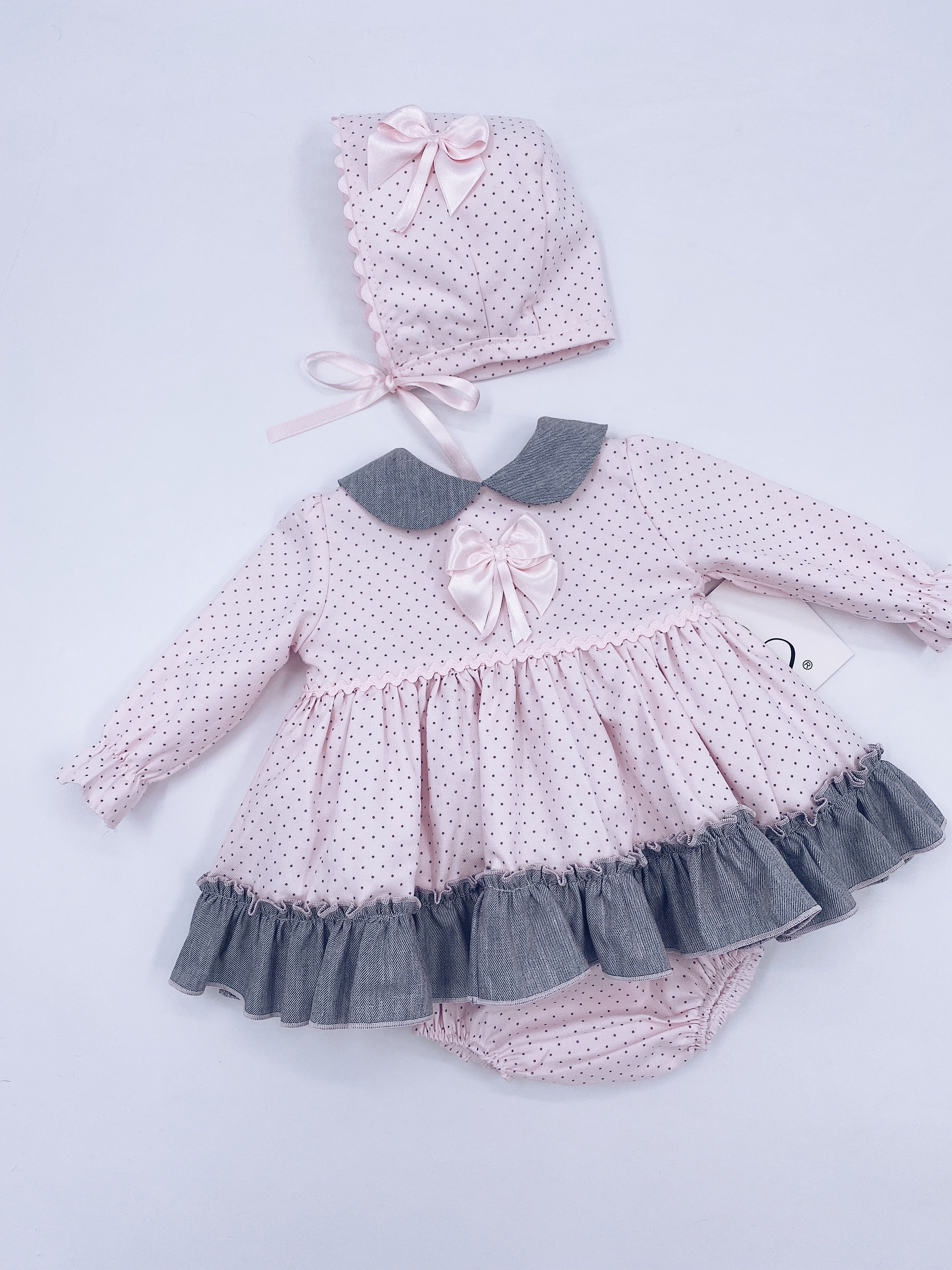MI LOVES Baby Pink Dress/Bloomers/Bonnet 3 piece set