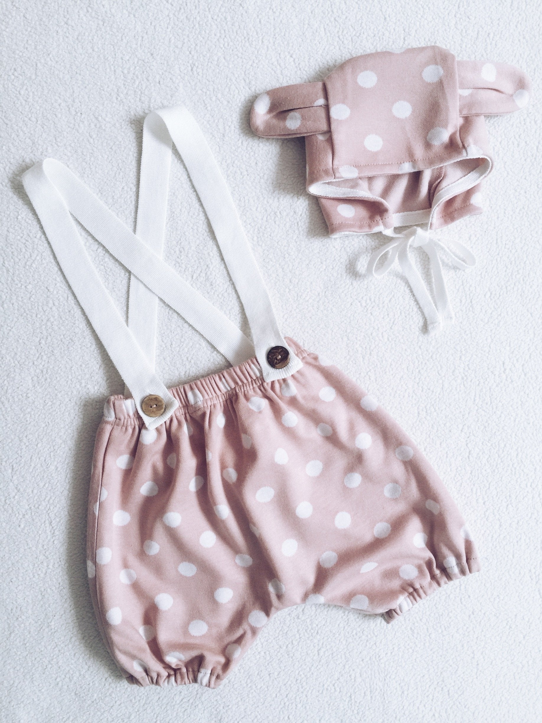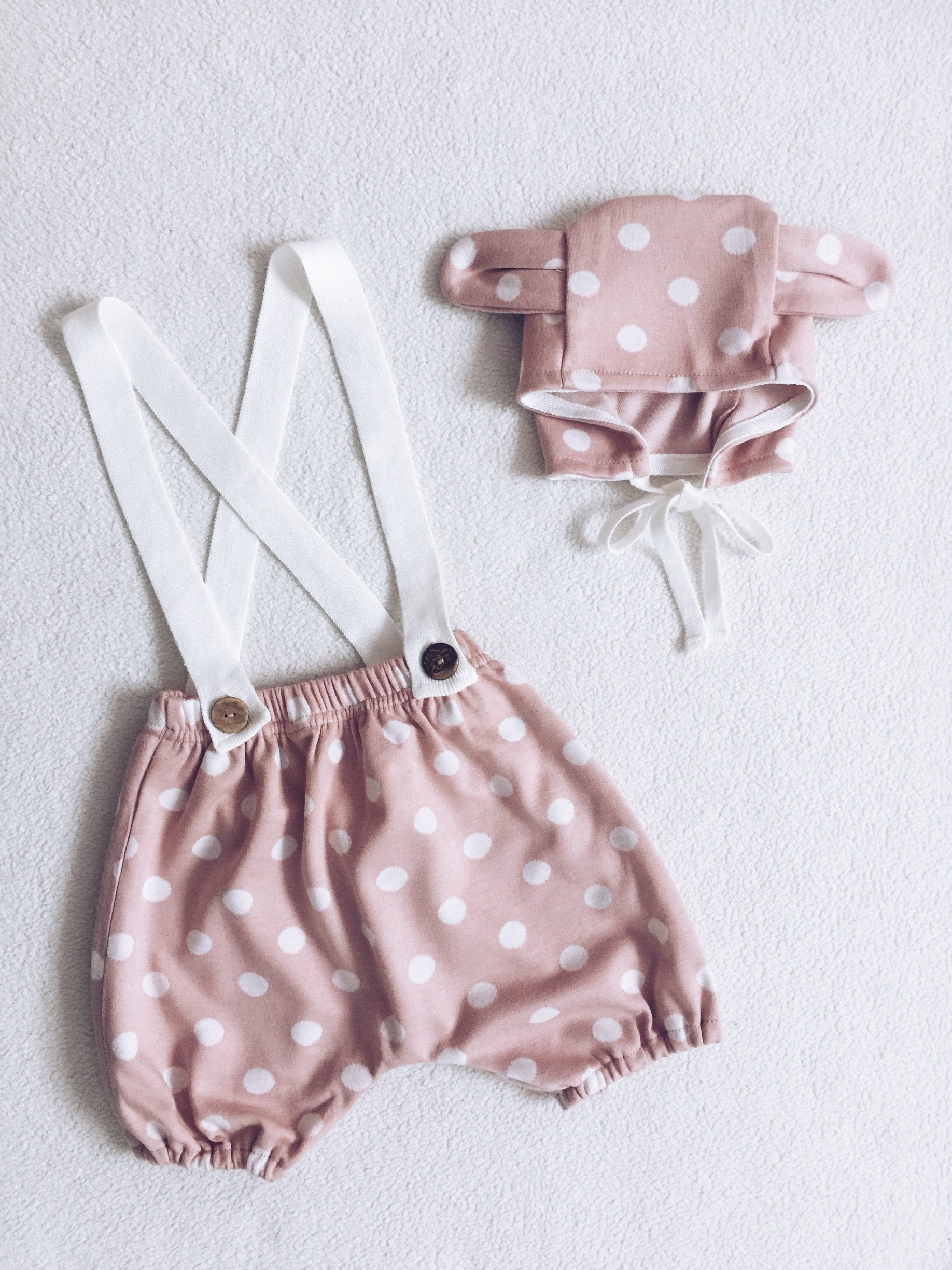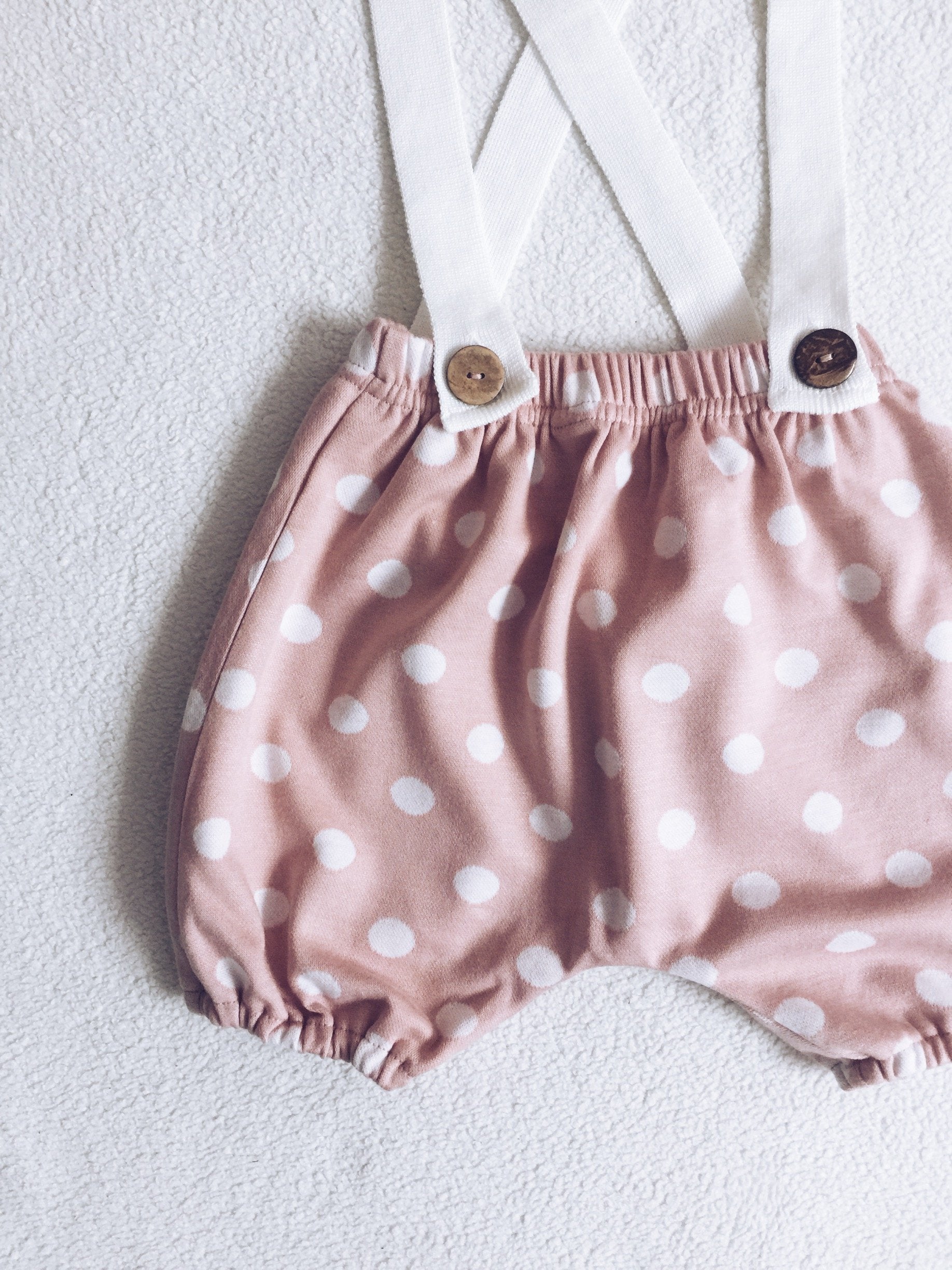 Warm,soft and ideal for colder weather,this pastel pink bloomer shorts with white polka dots is a must have for every little princess!!