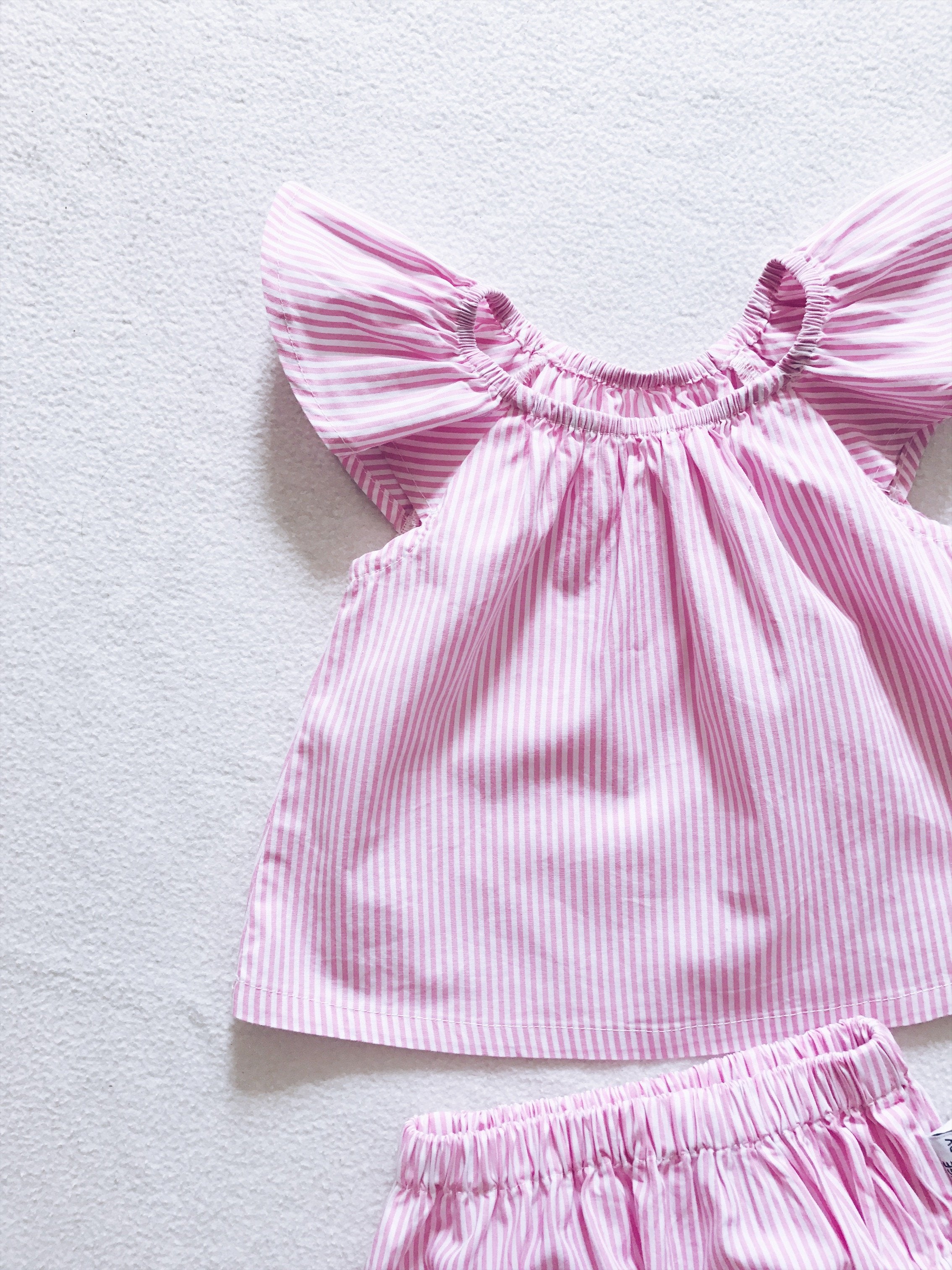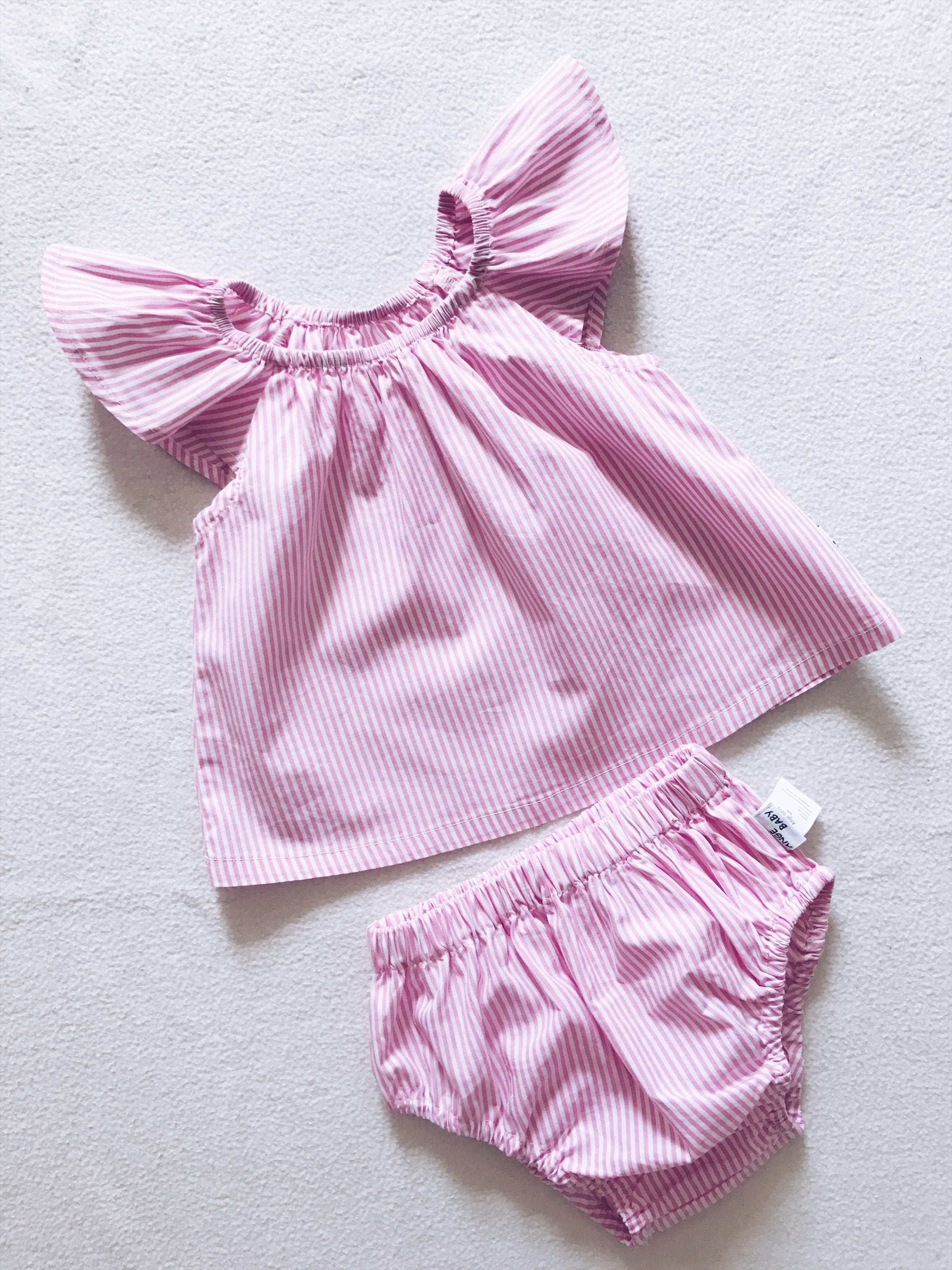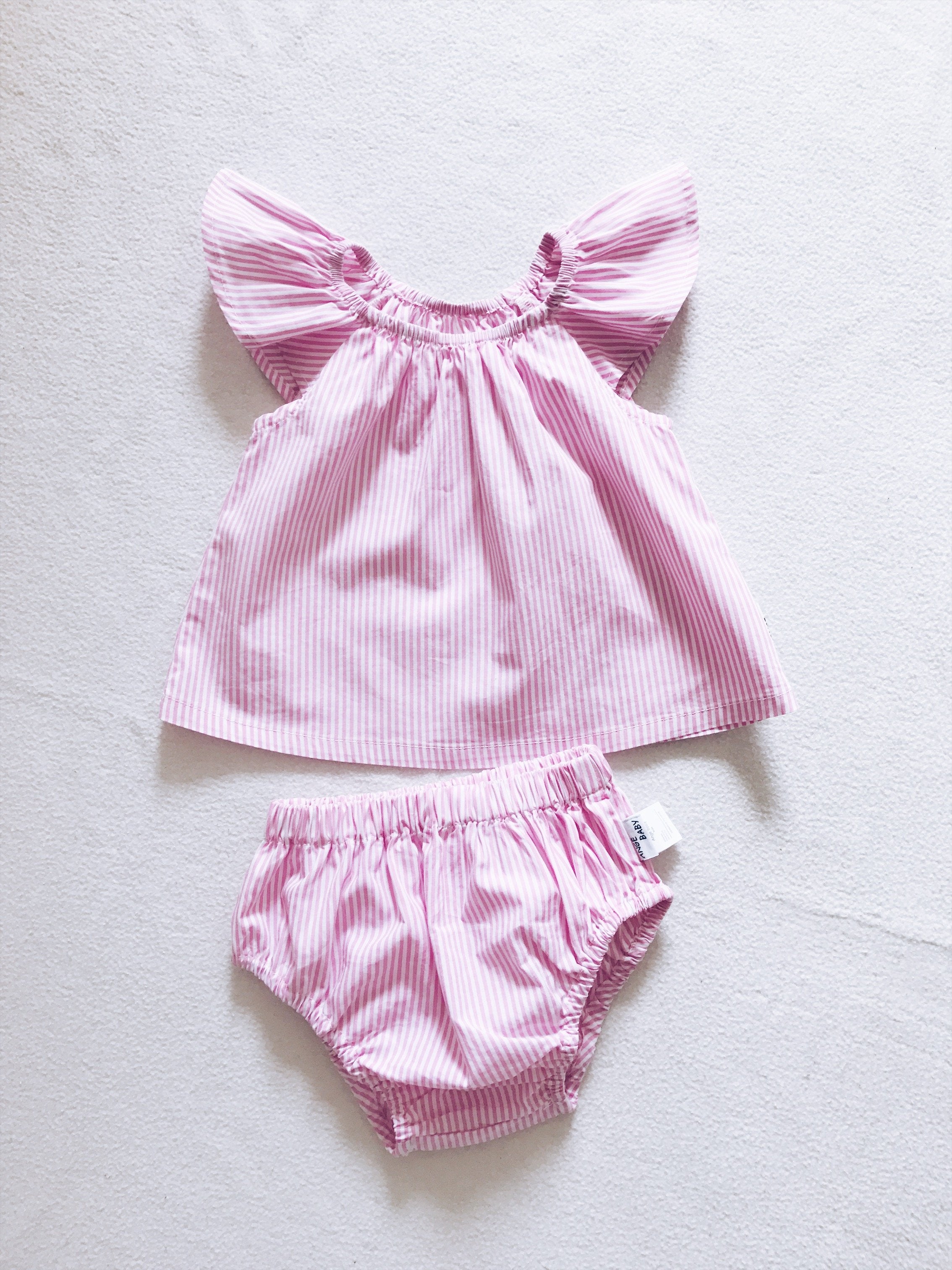 Beautiful pink-white stripes summer set ,top and bloomers-diaper cover .