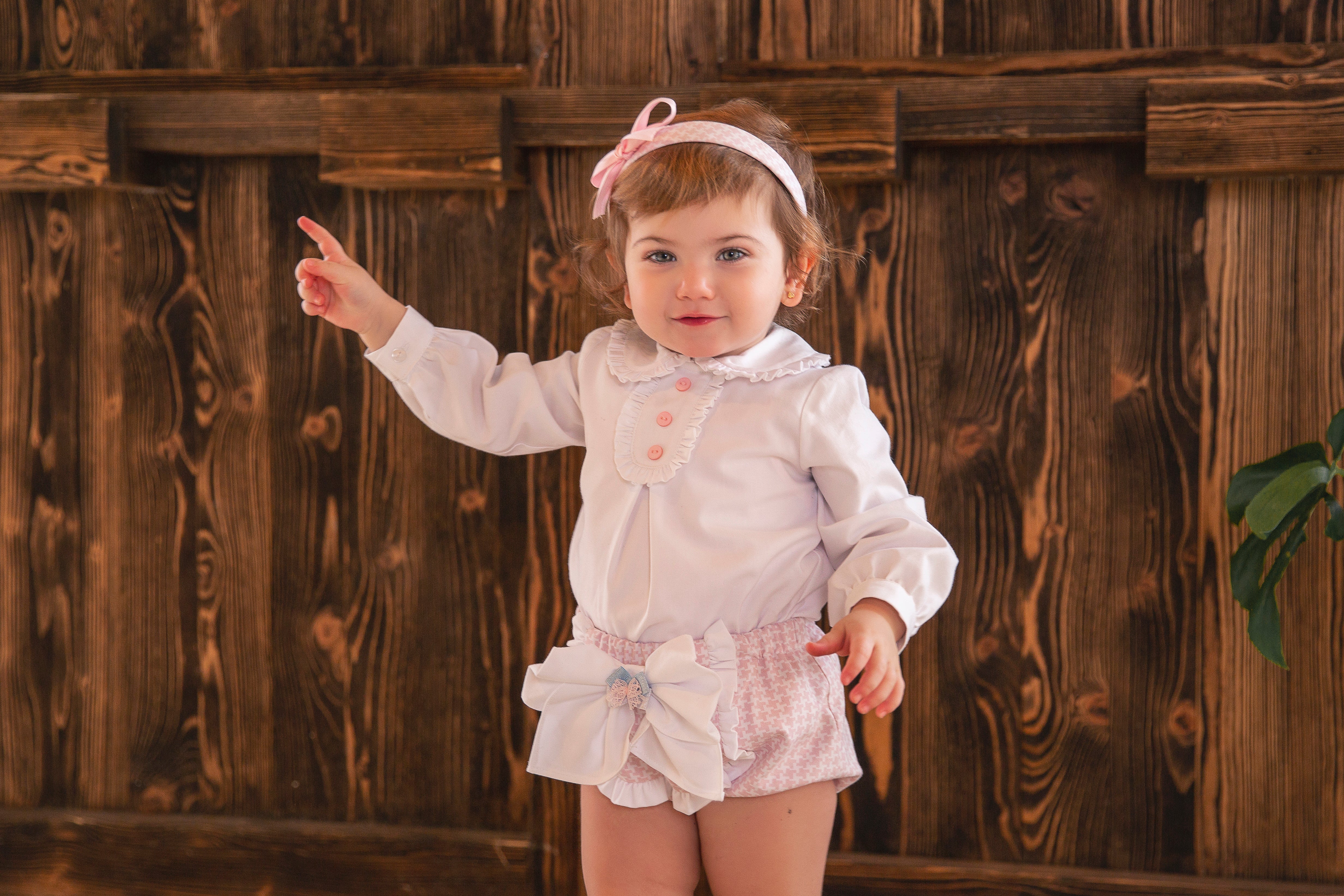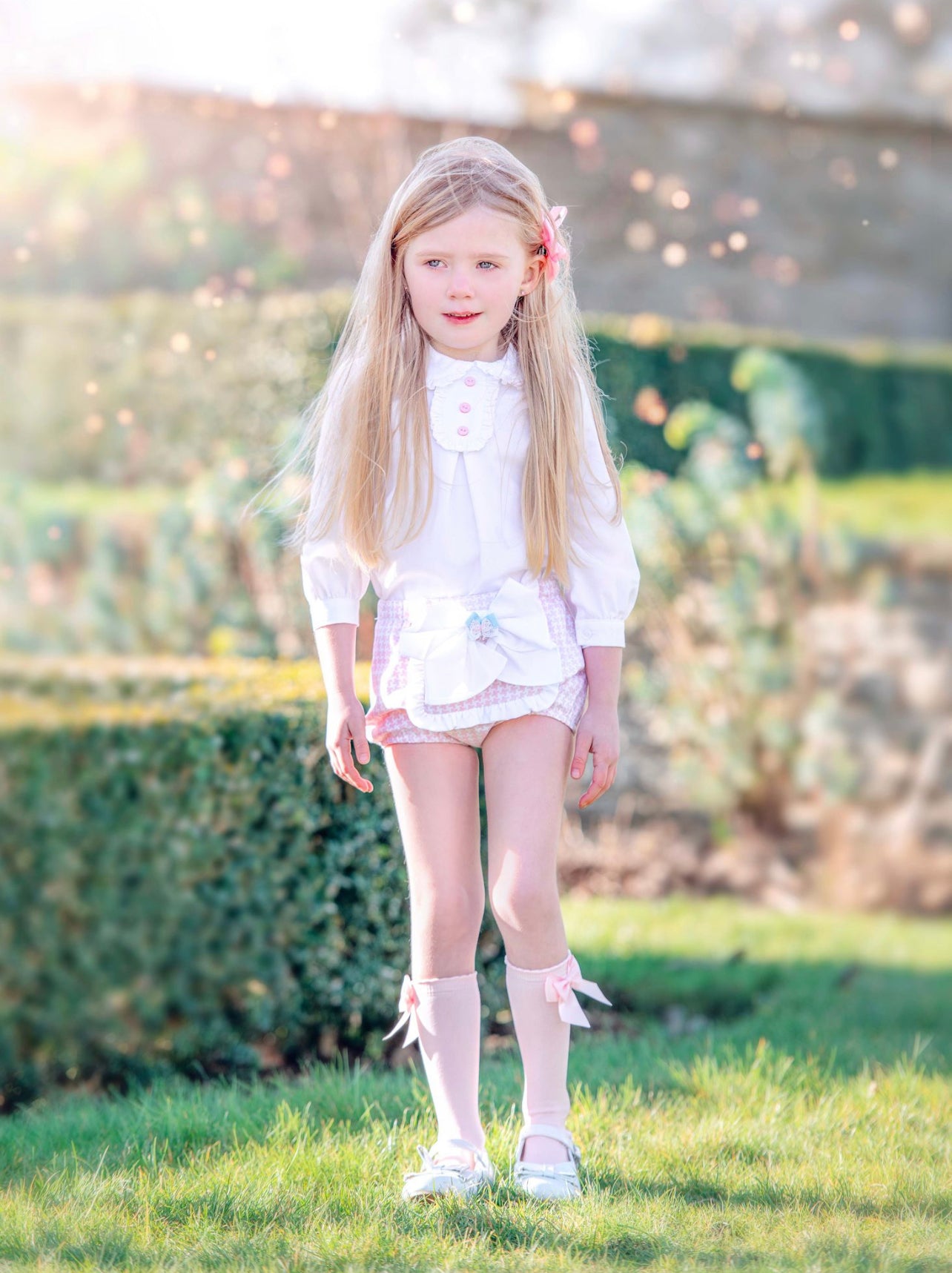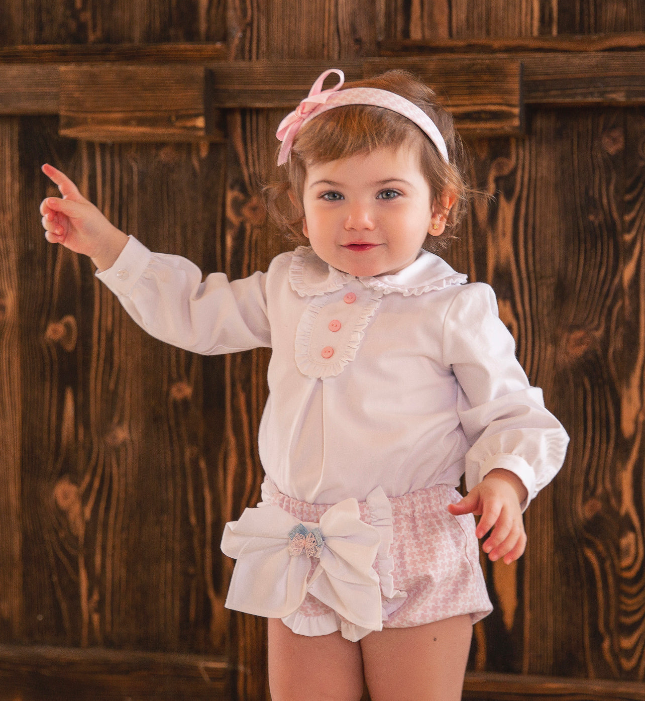 Beautiful Pink Bloomers/White Blouse set with Bow details.