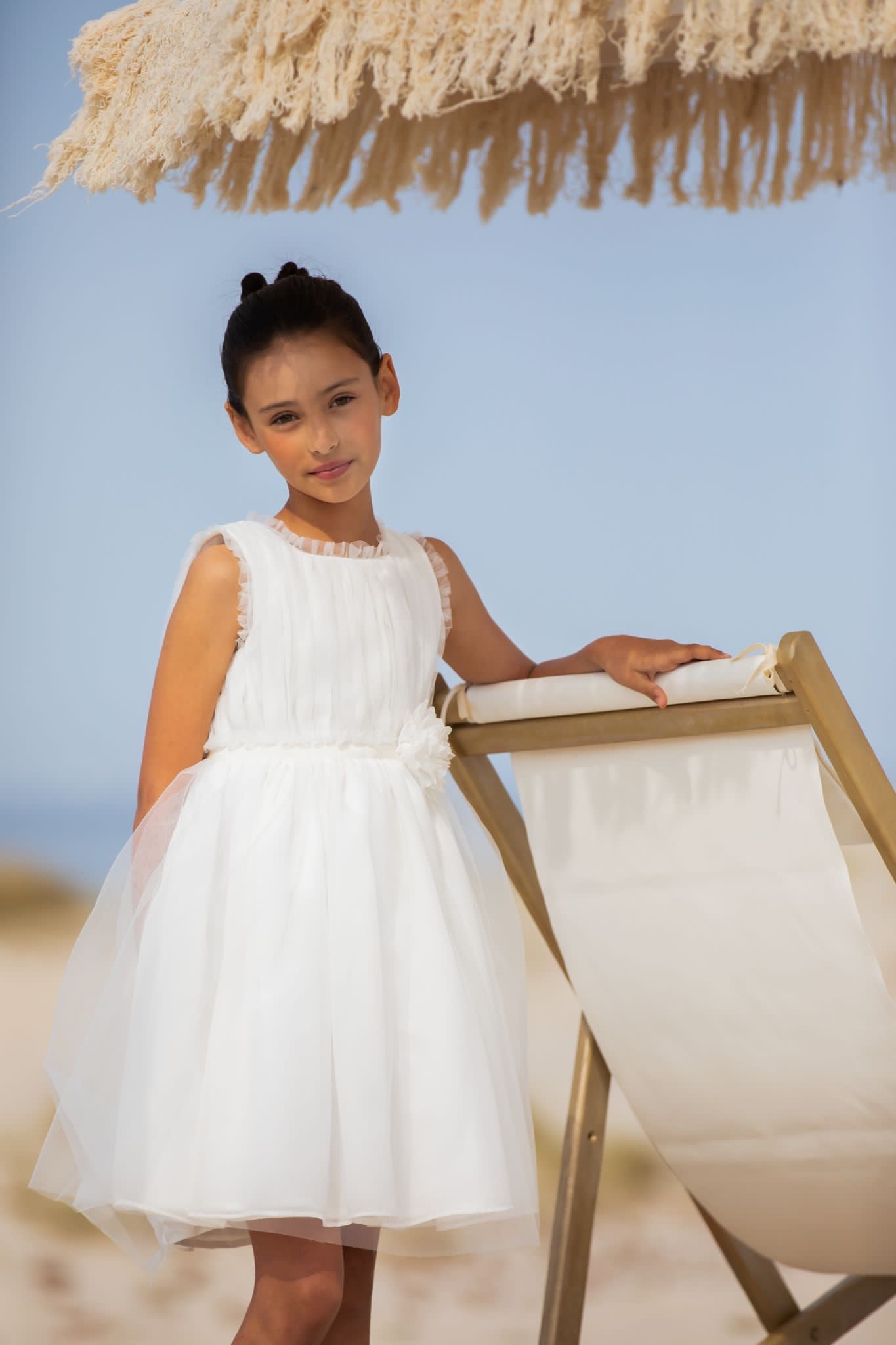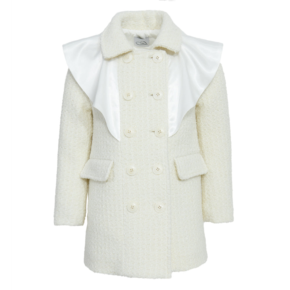 MI LOVES SIGNATURE Ivory/White Luxurious Wool mix kids Tweed Jacket with Beautiful Bow Details on the back.