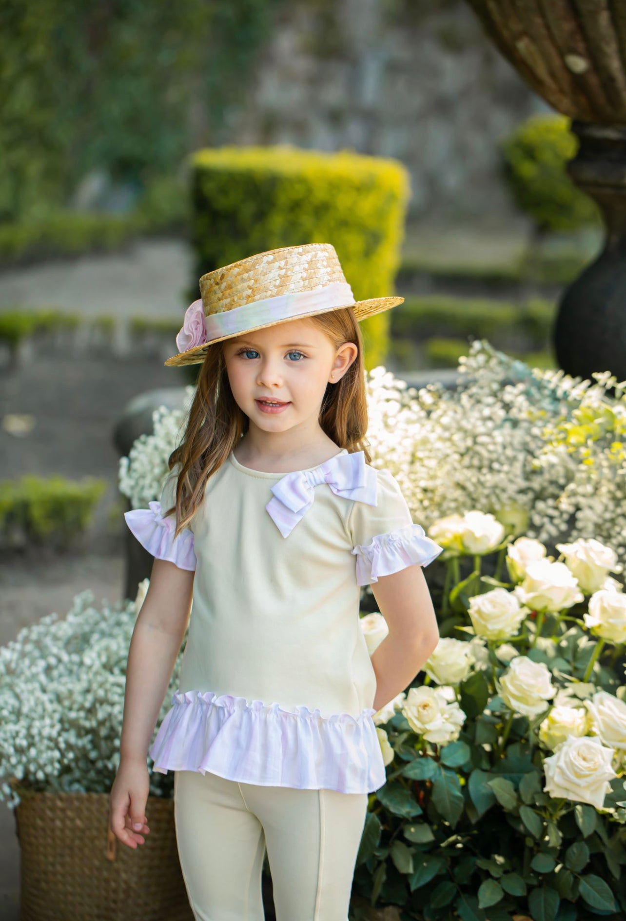 YELLOW Patachou Beautiful Baby Girls Cotton Leggings/Top 2 piece set with Bow details