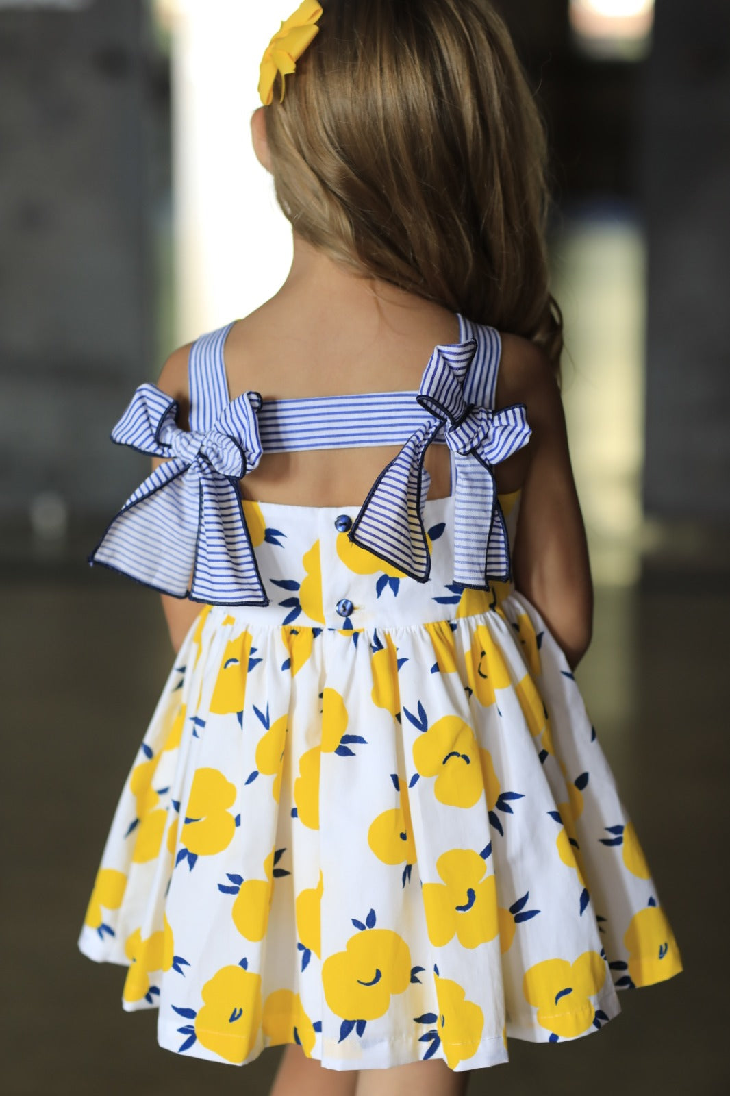 Miranda Beautiful dress/bloomers set with red floral print details.