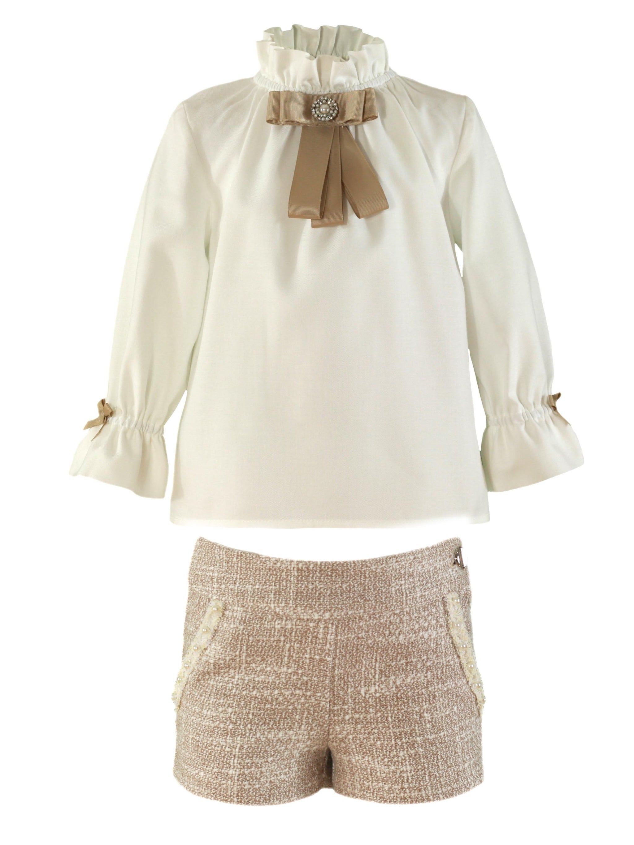 MI LOVES Beautiful tweed Shirt/Shorts 2 piece set.