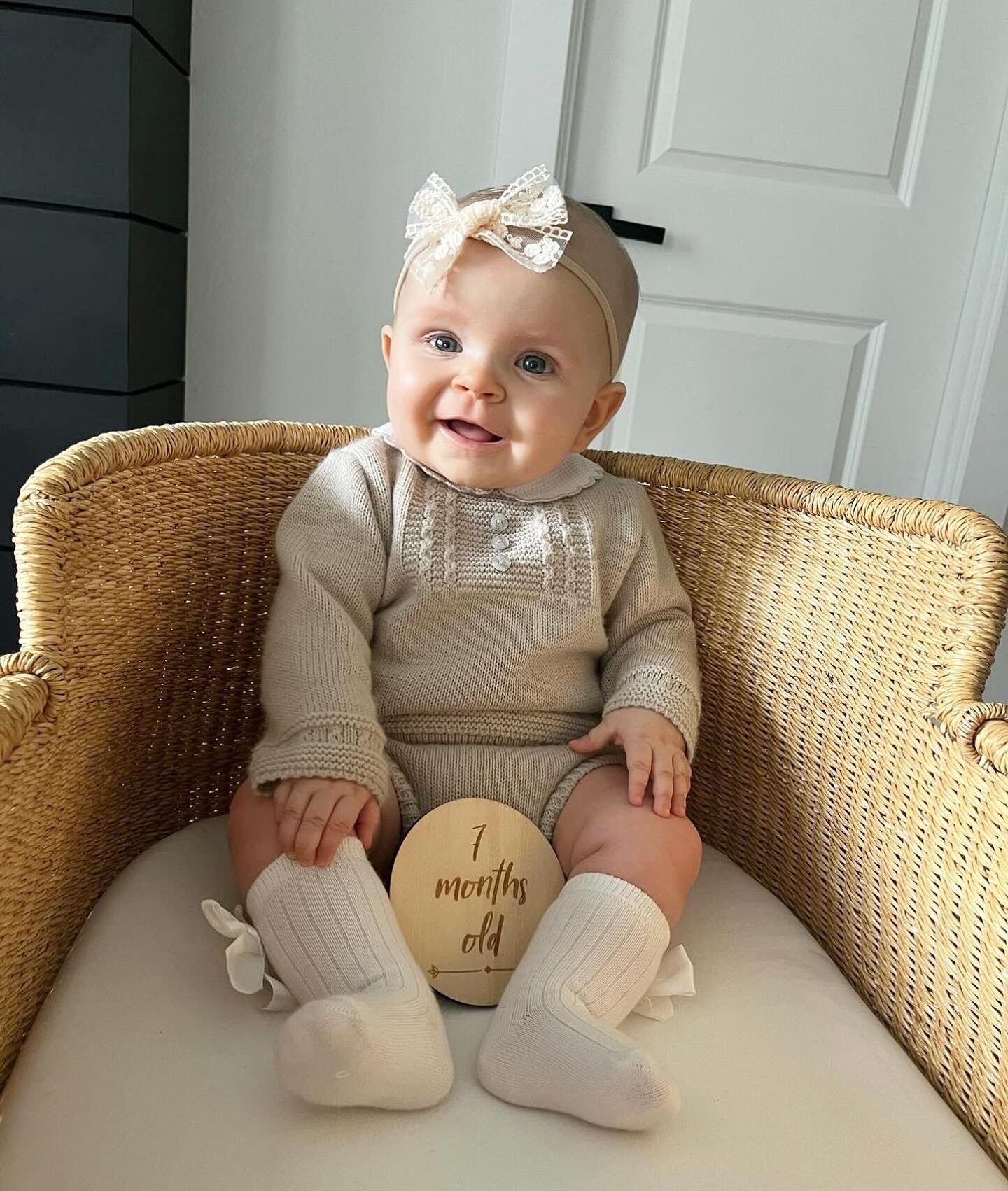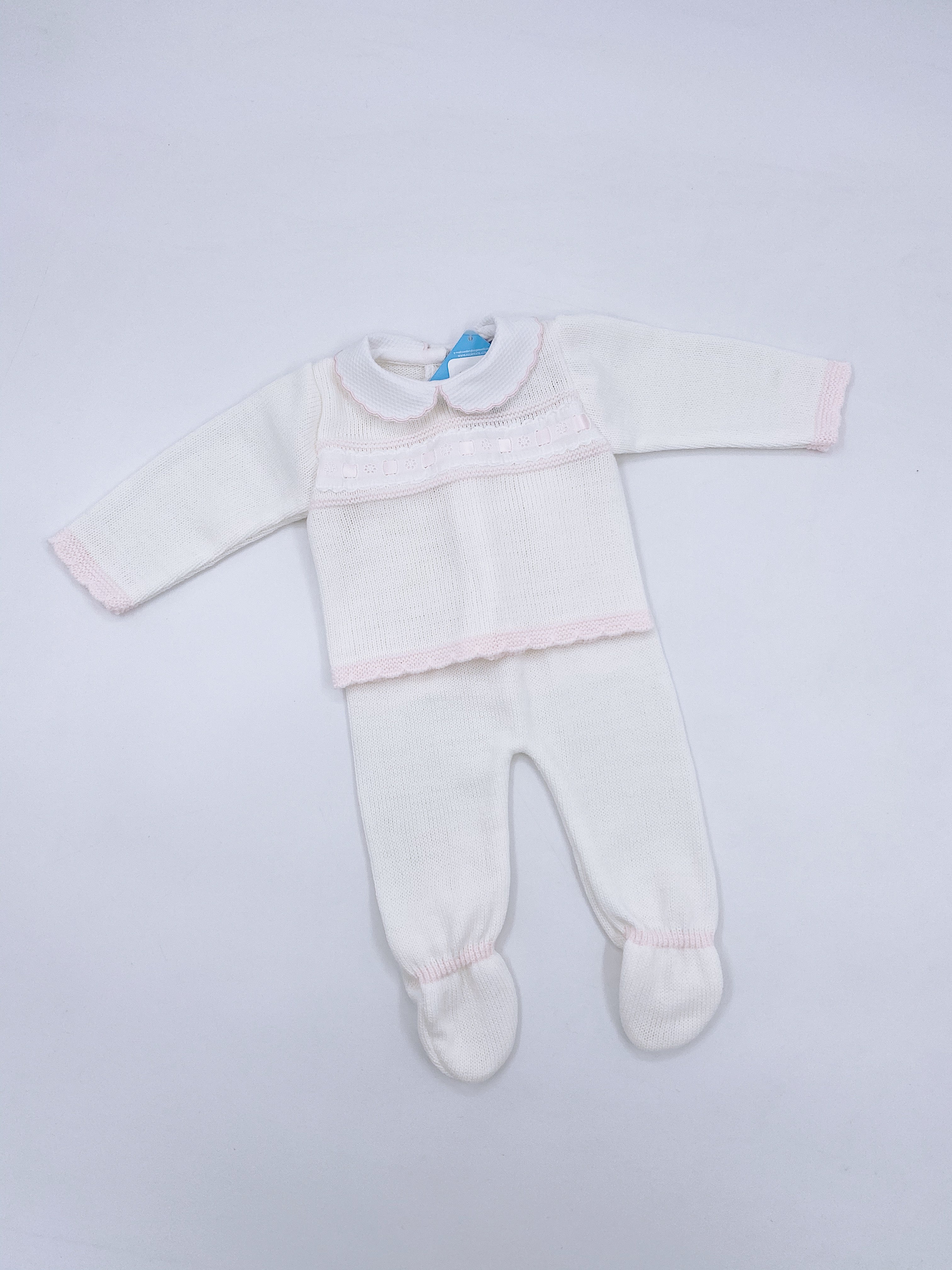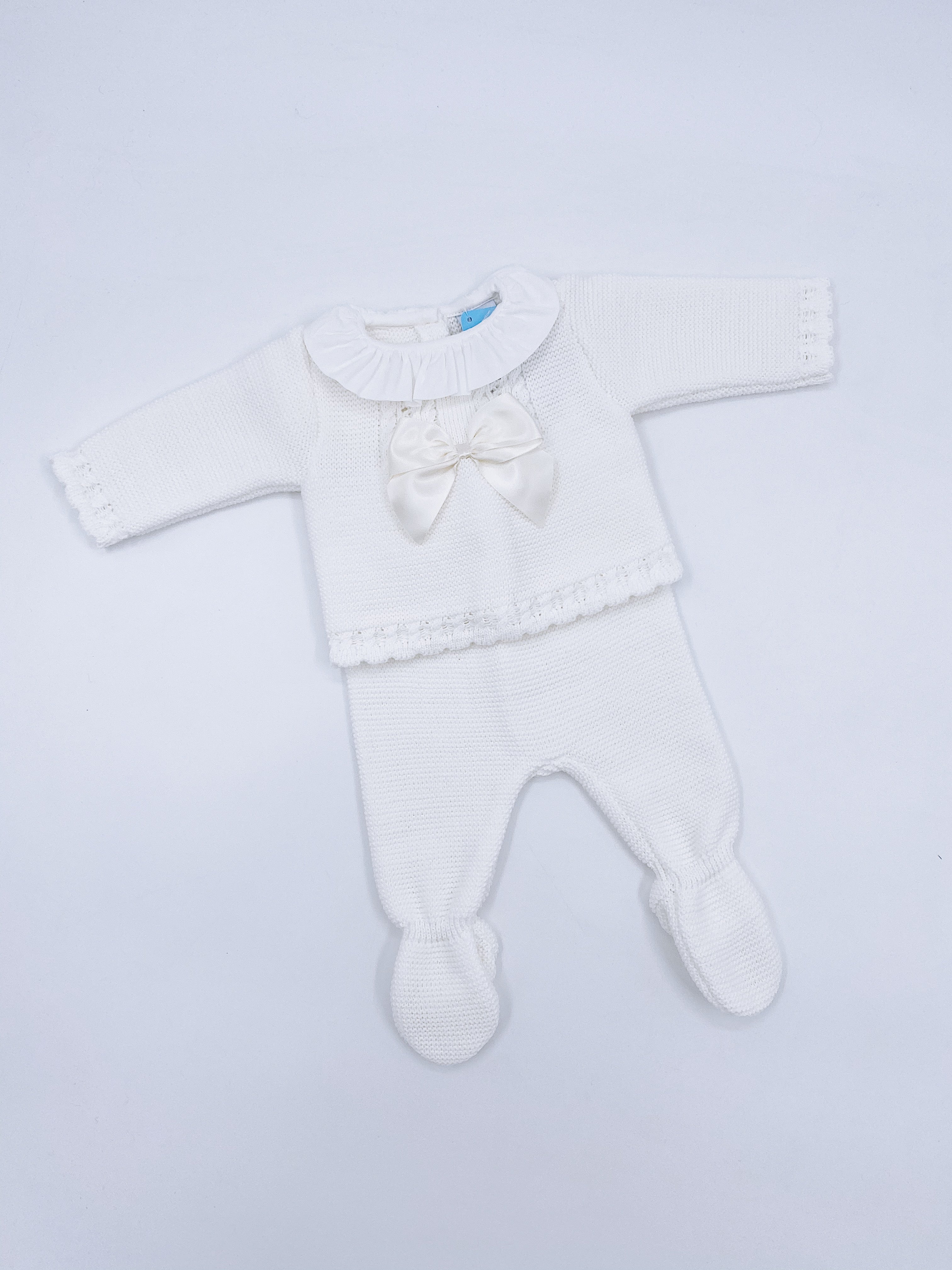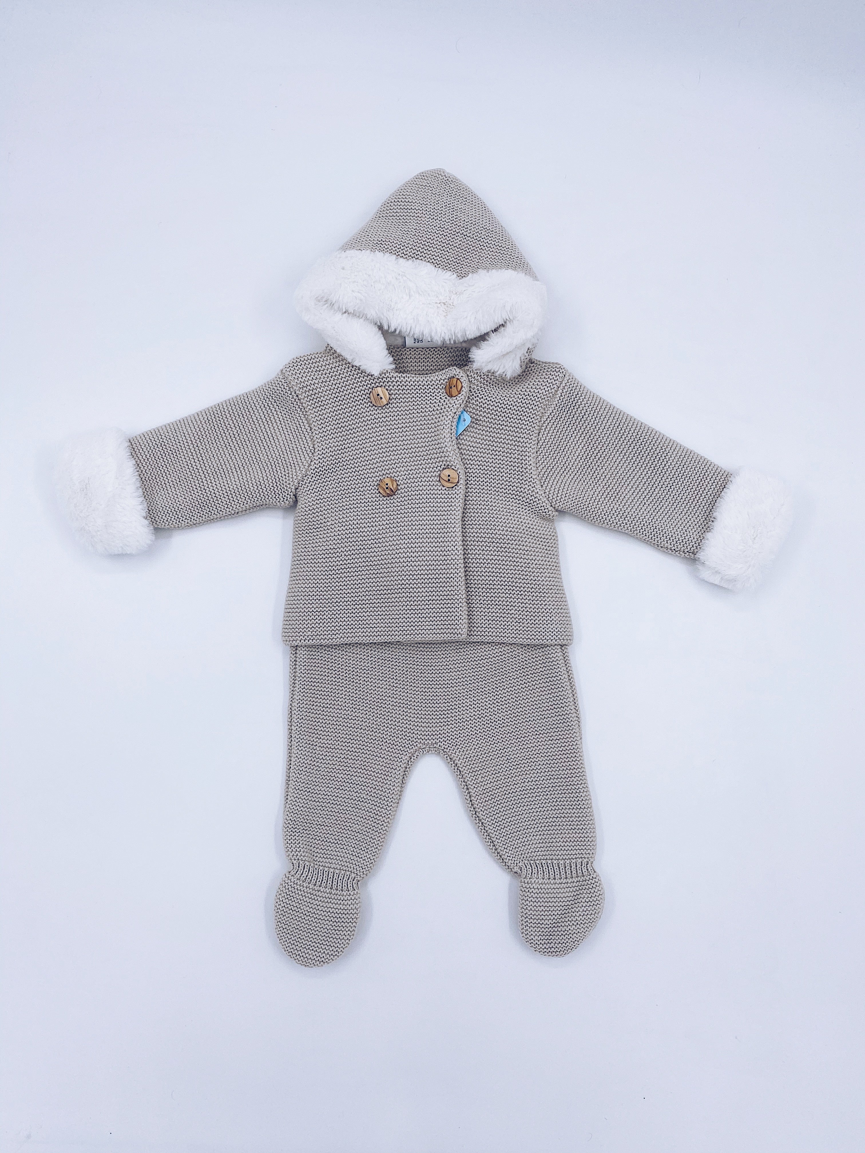 Beige Unisex Knitted baby 2 piece set(N 372)