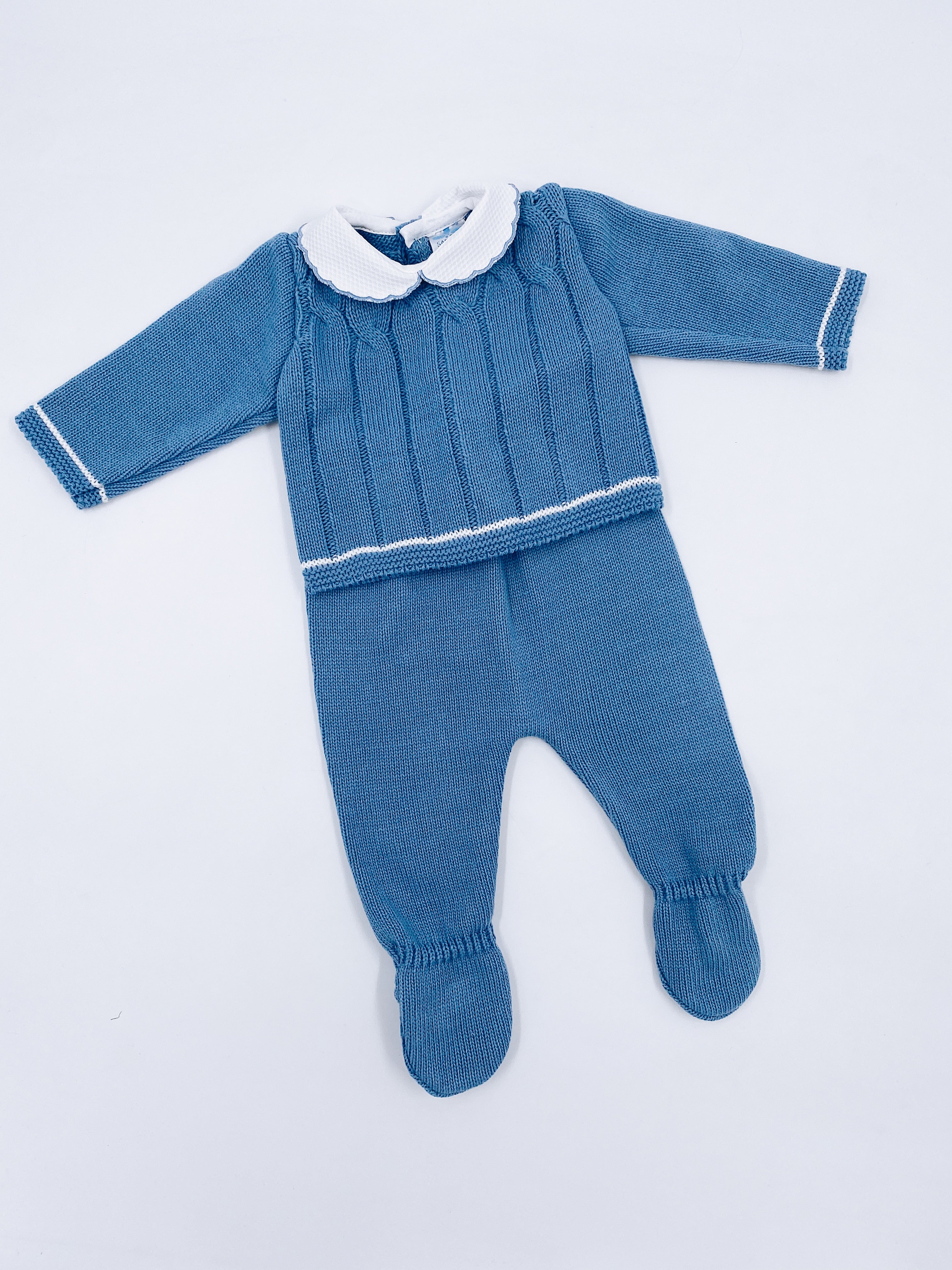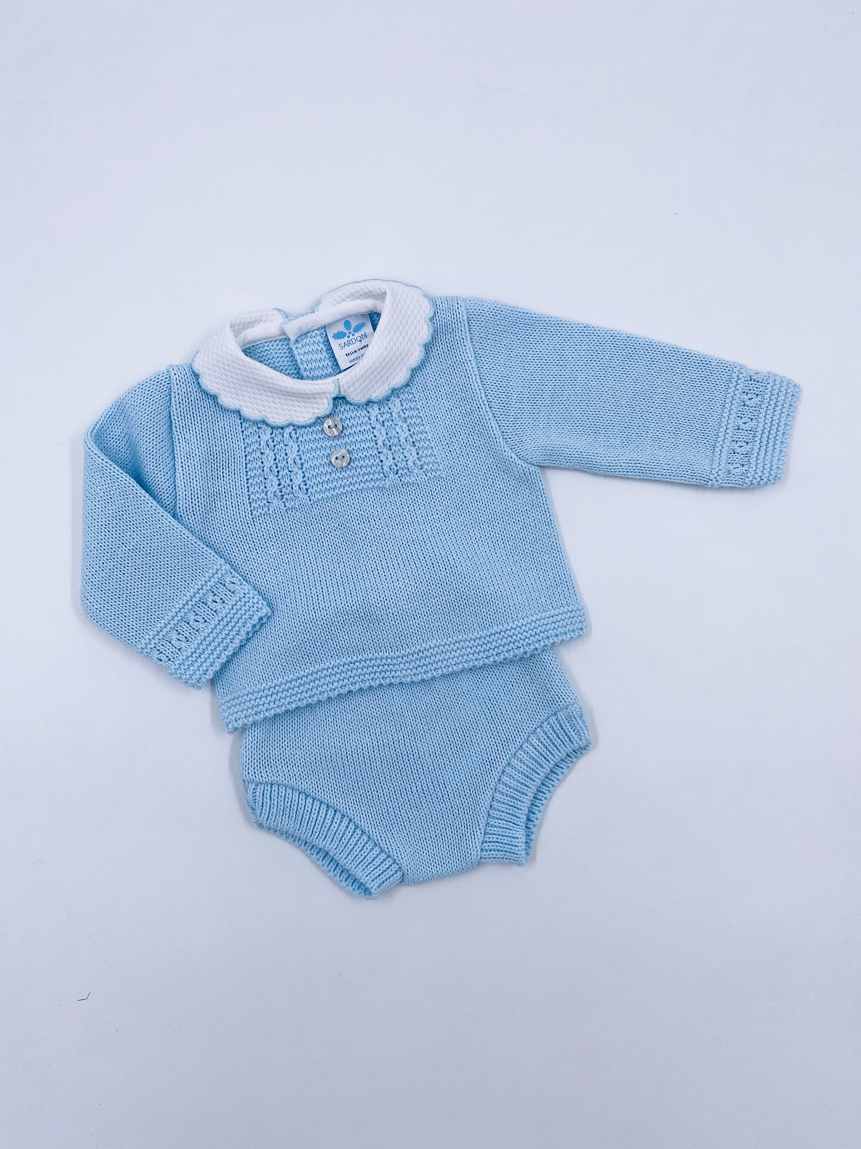 Baby blue Unisex Knitted baby 2 piece set(N 372)
