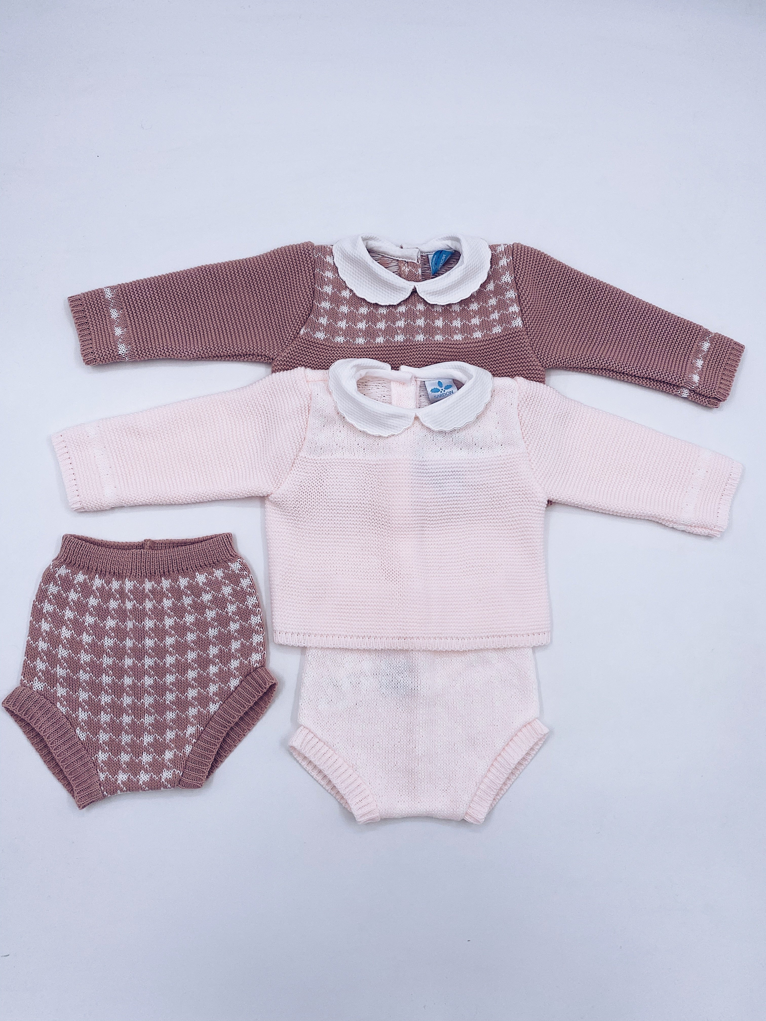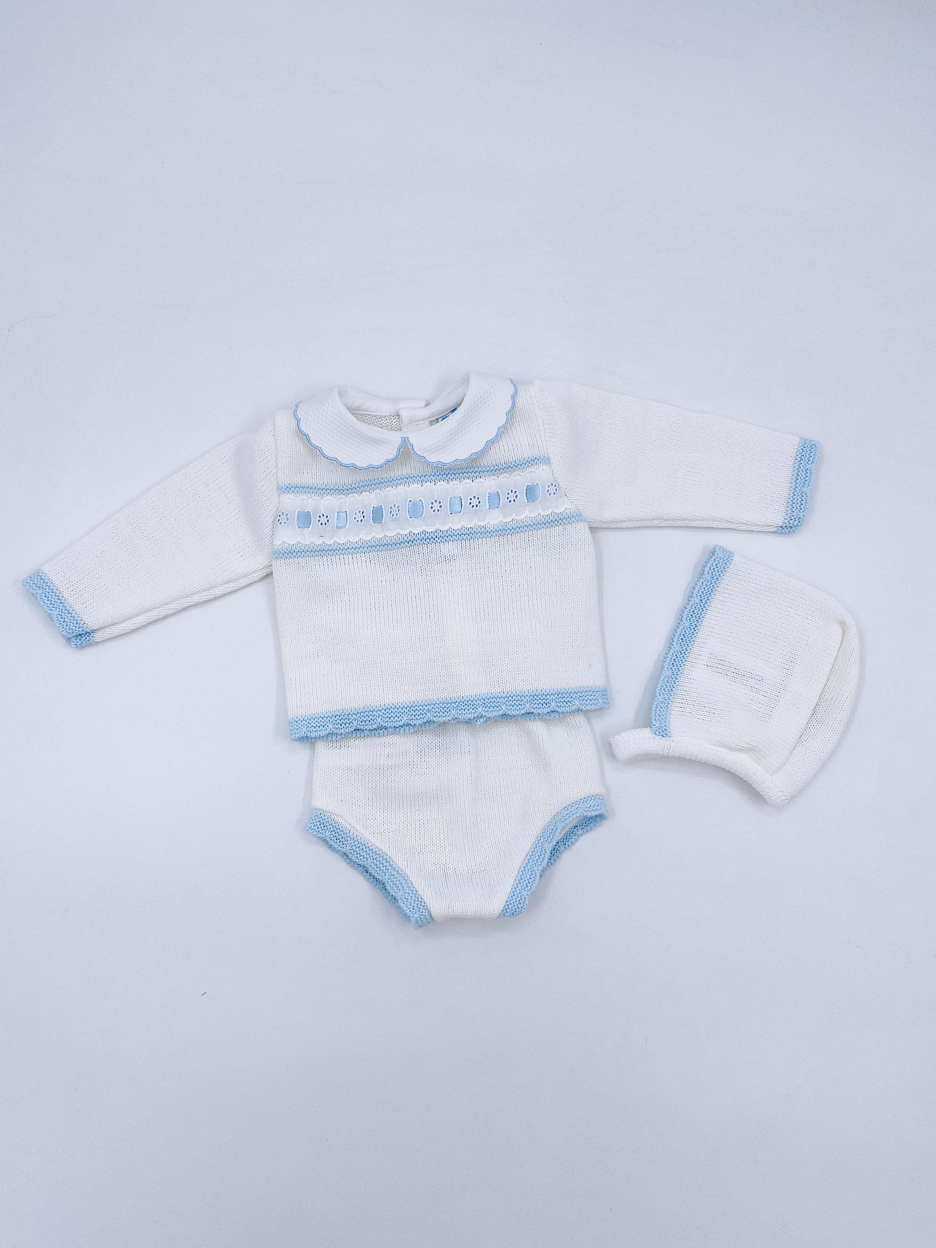 Knitted 3 piece baby set Top/Shorts/Bonnet (N154)
