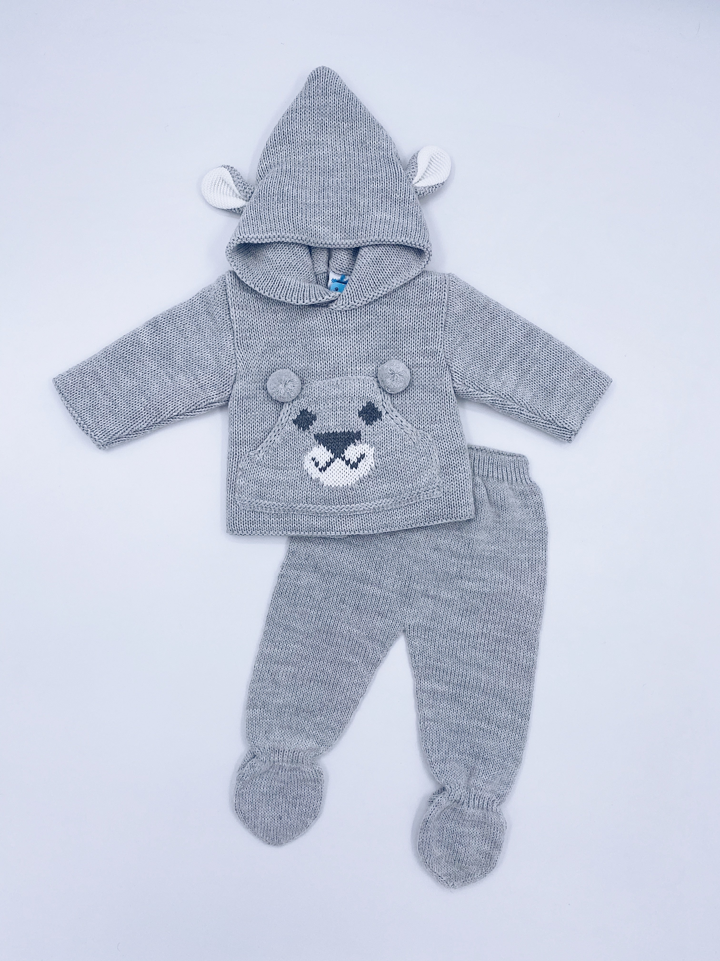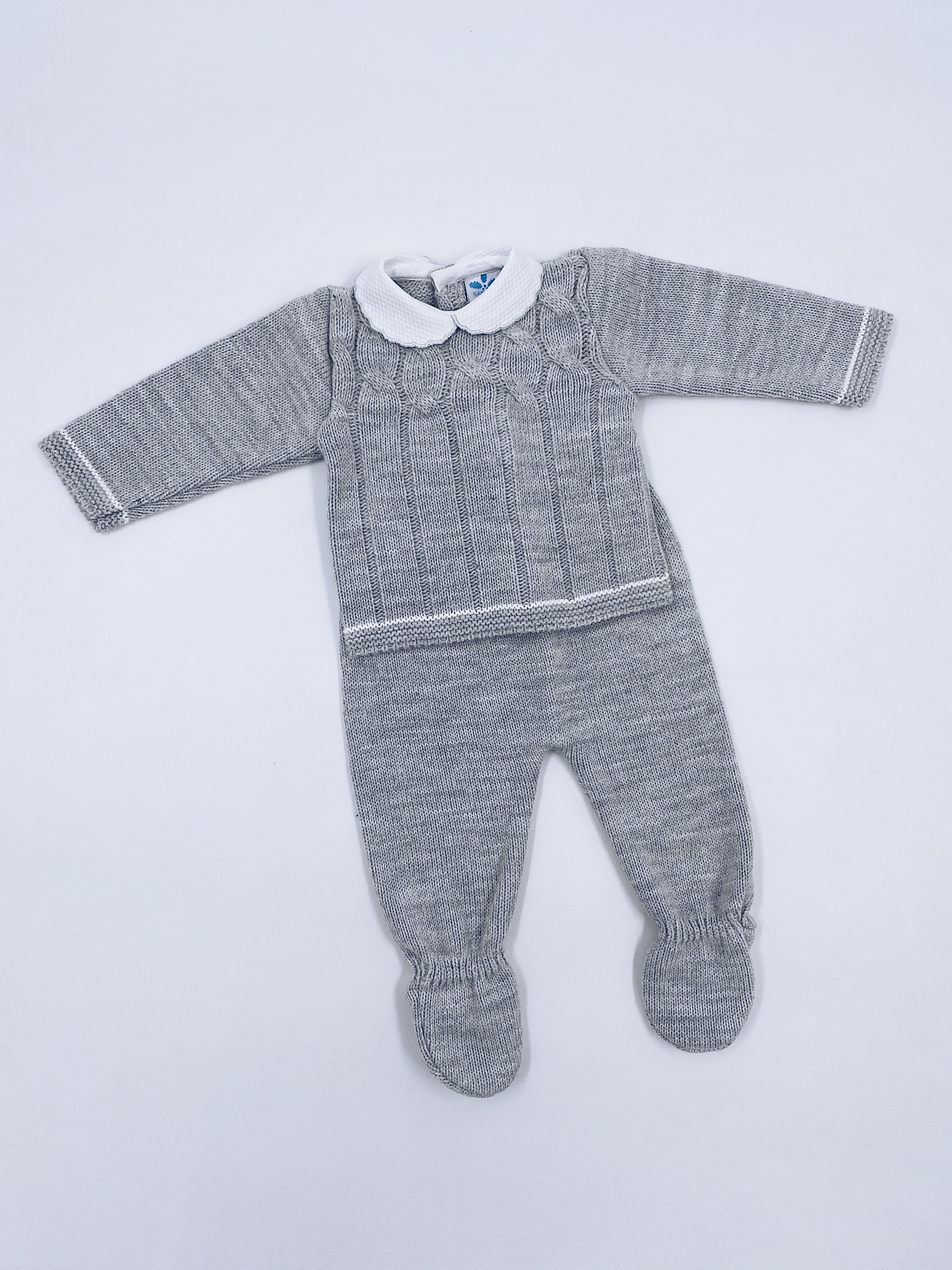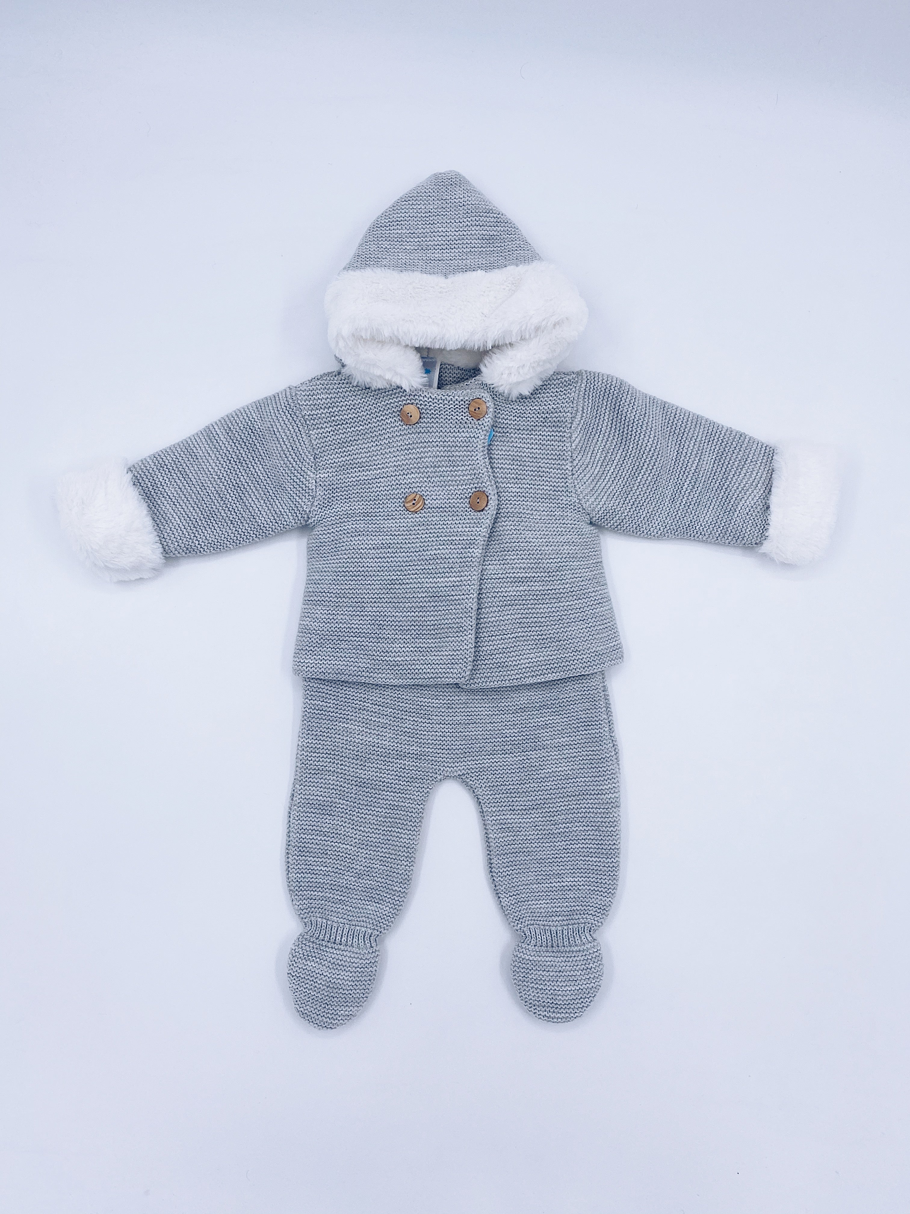 Grey Unisex Knitted baby 2 piece set(N 372)