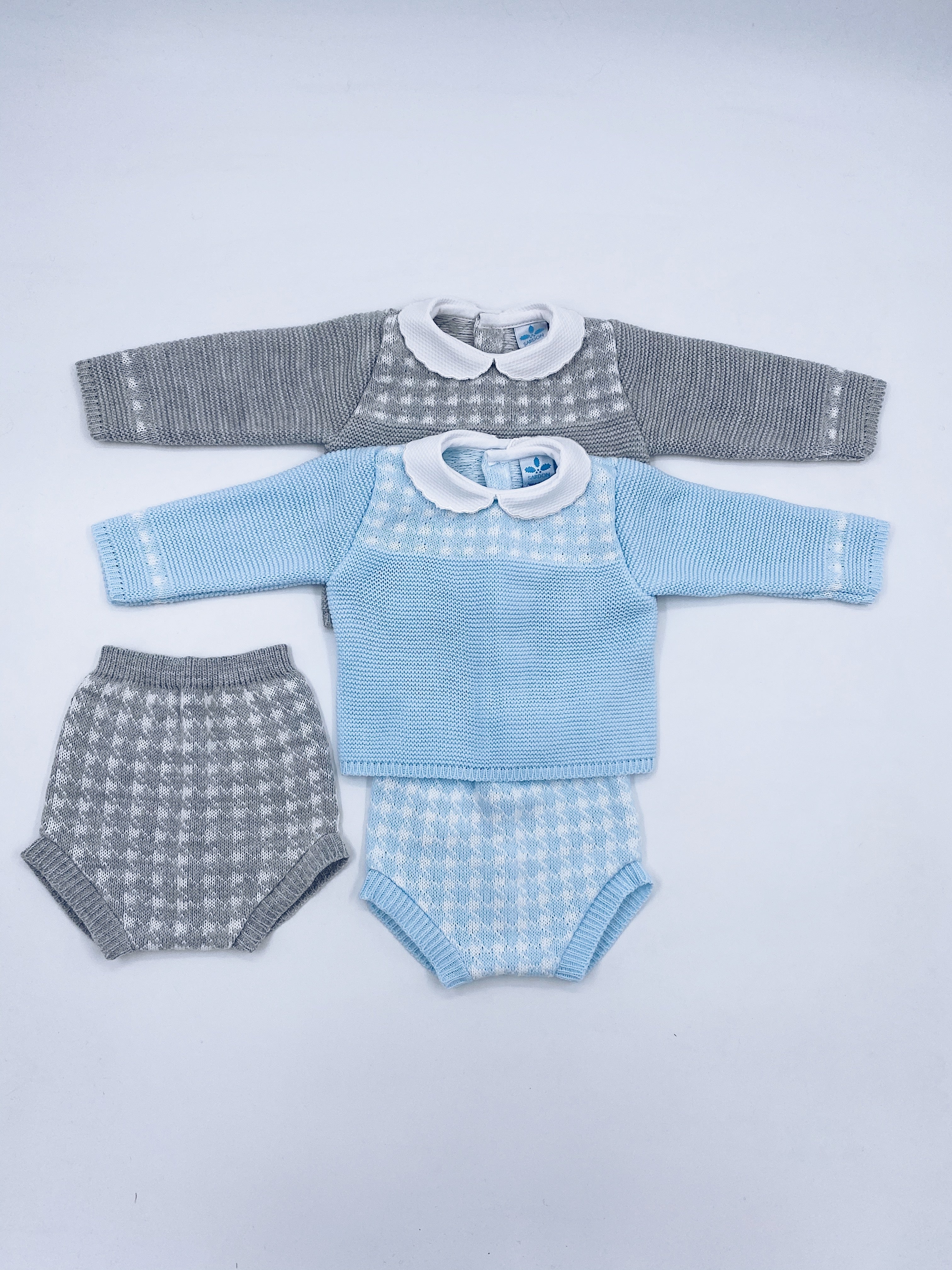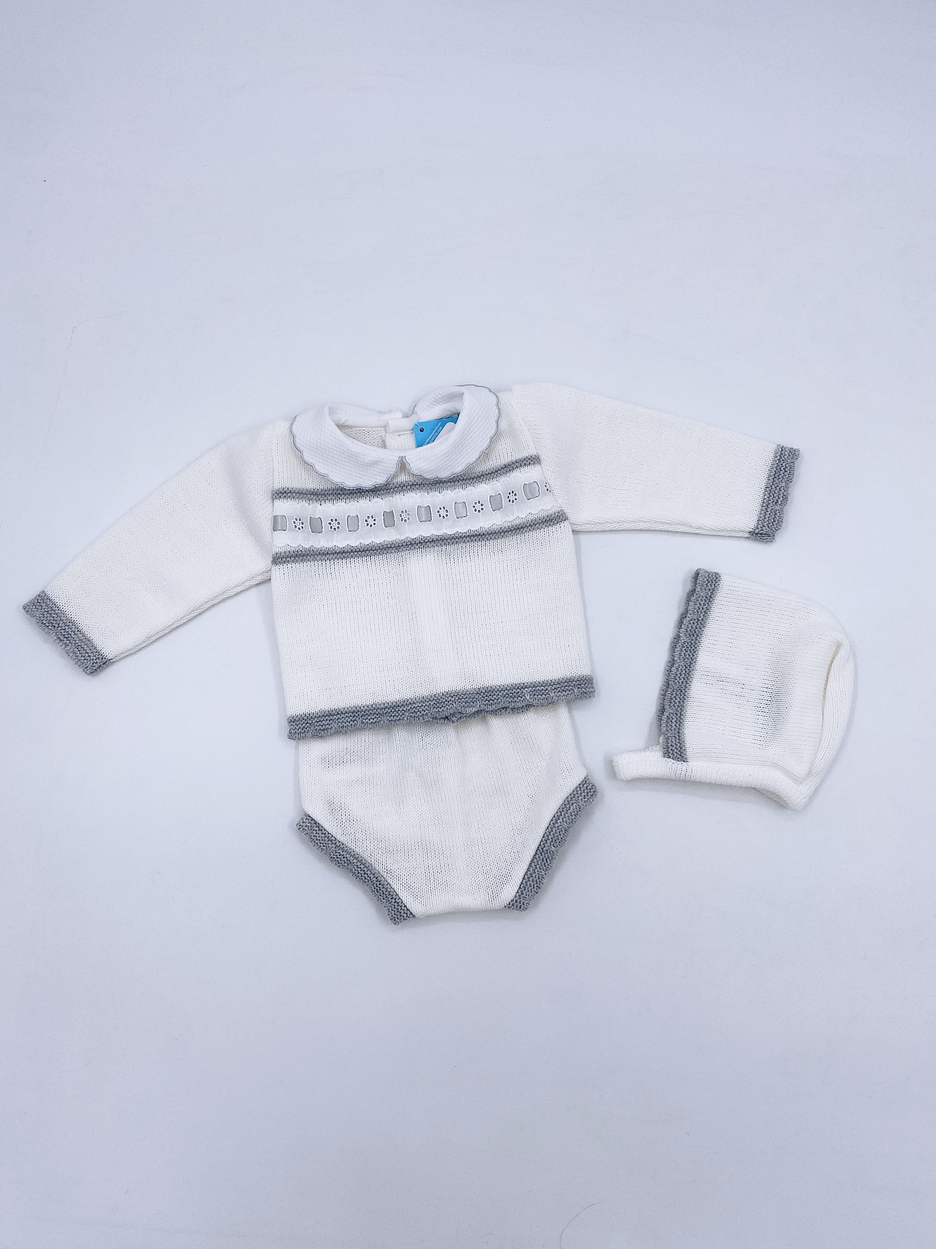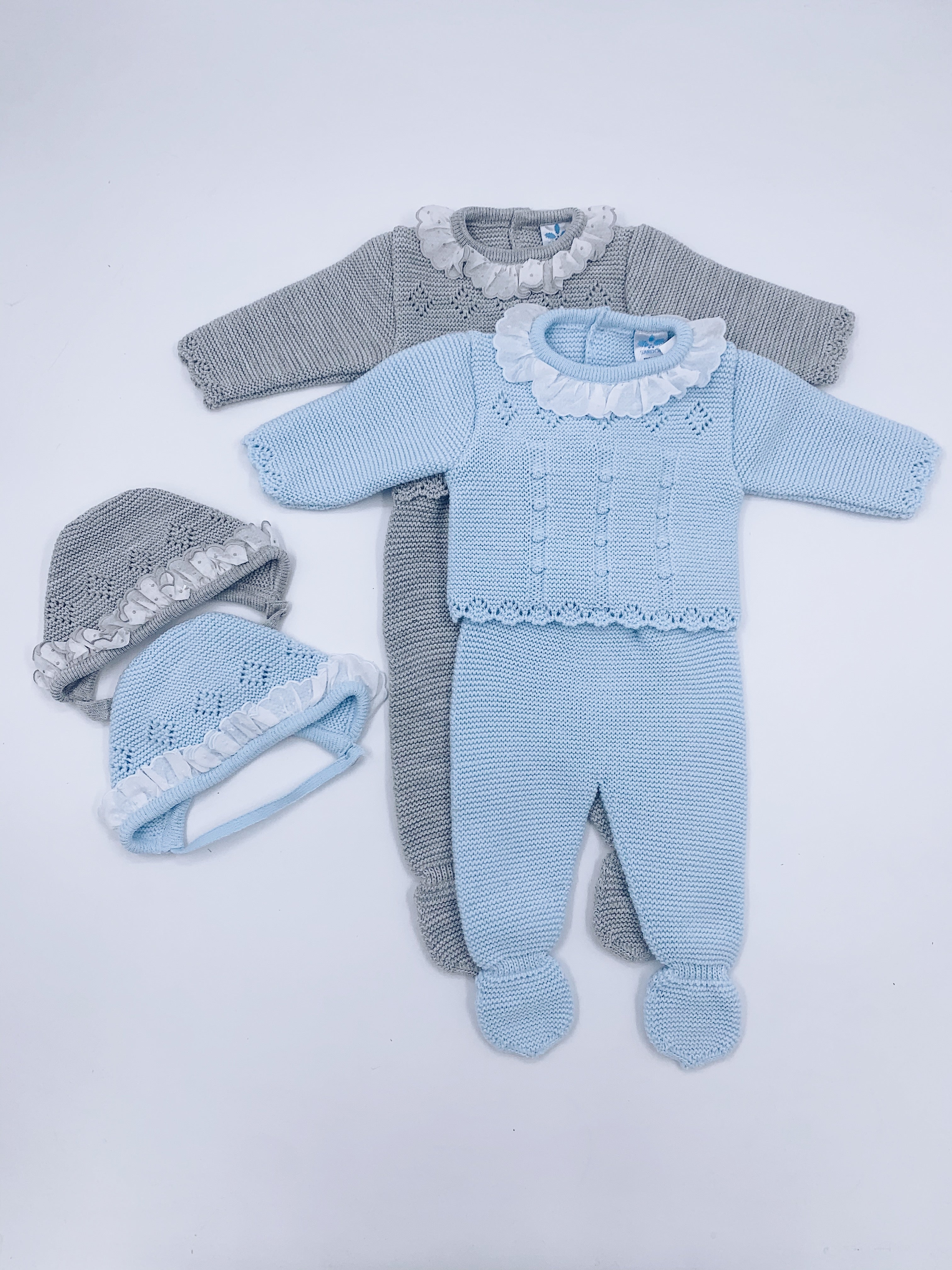 Grey Unisex Knitted baby 2 piece set(N 372)