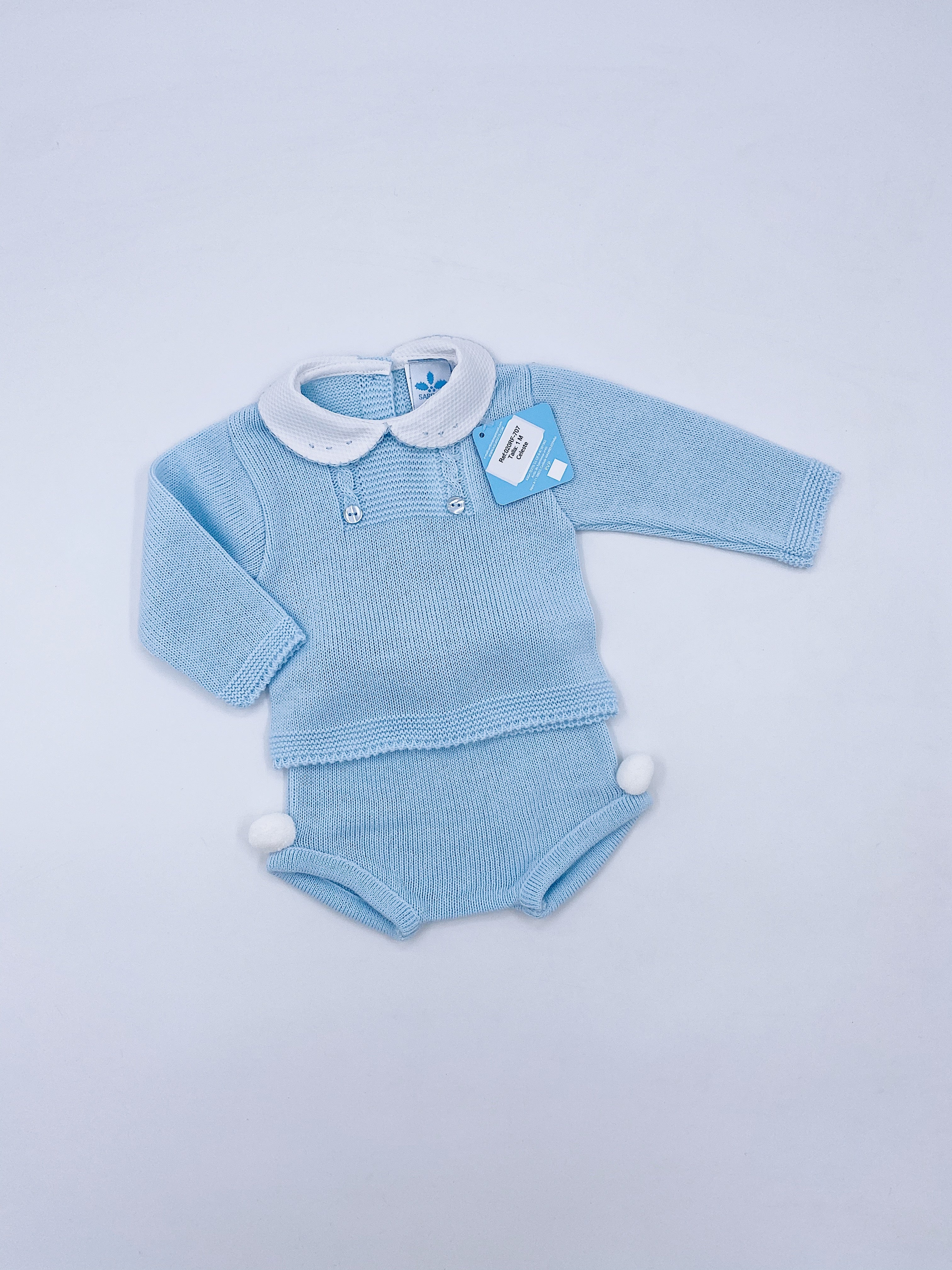 Beautiful knitted shorts set with pompom details in Baby blue(N707)
