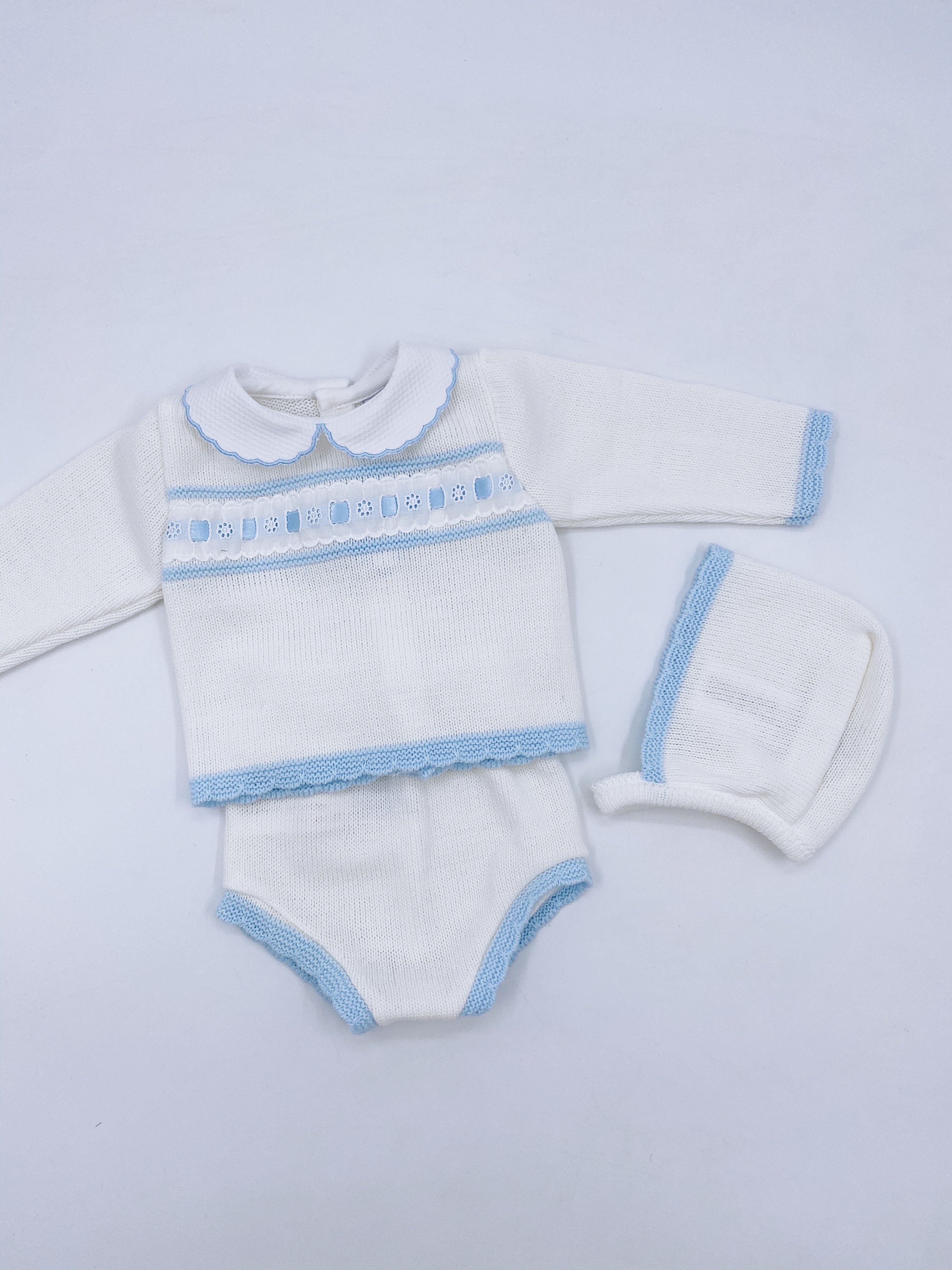 Knitted 3 piece baby set Top/Shorts/Bonnet (N154)